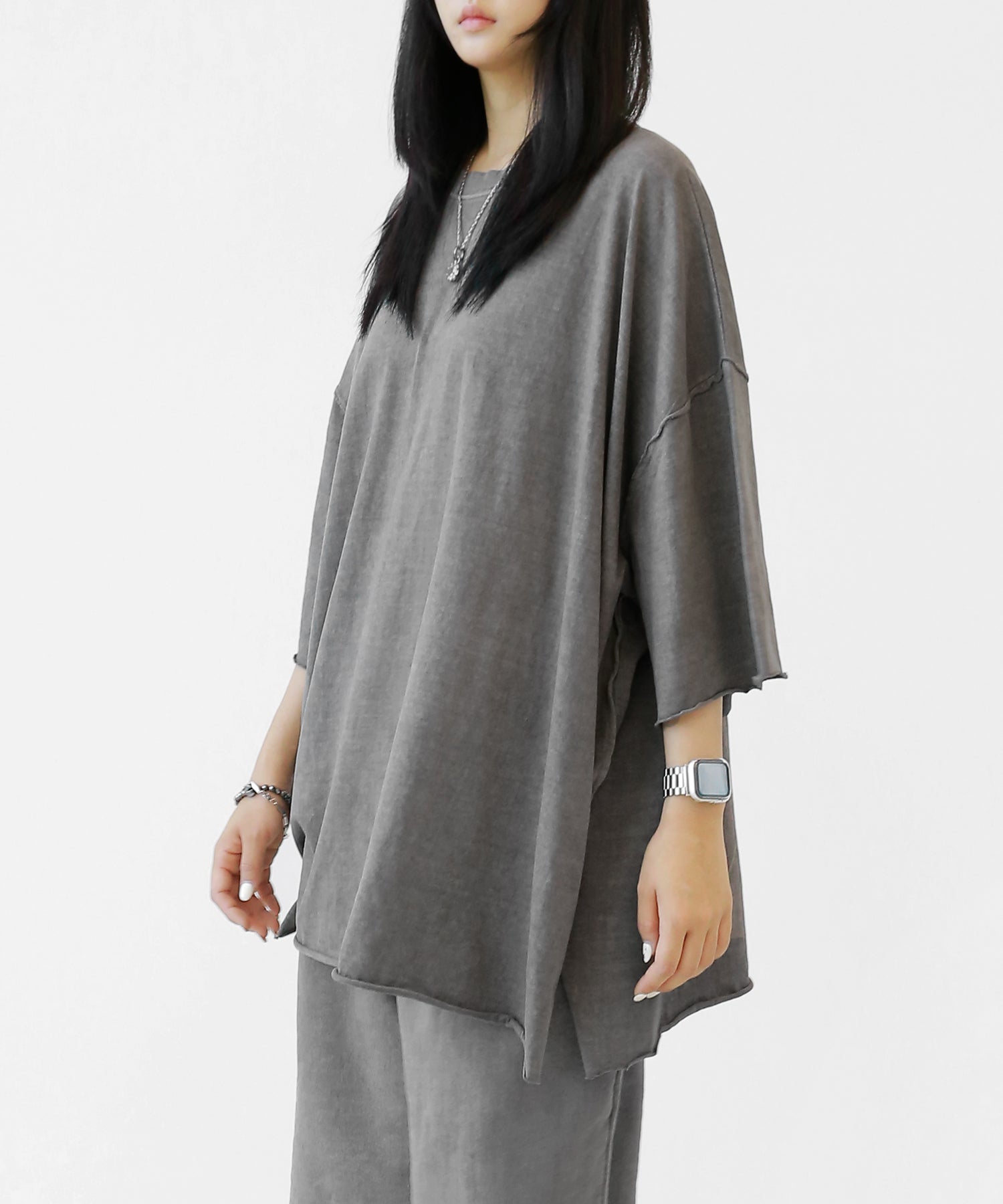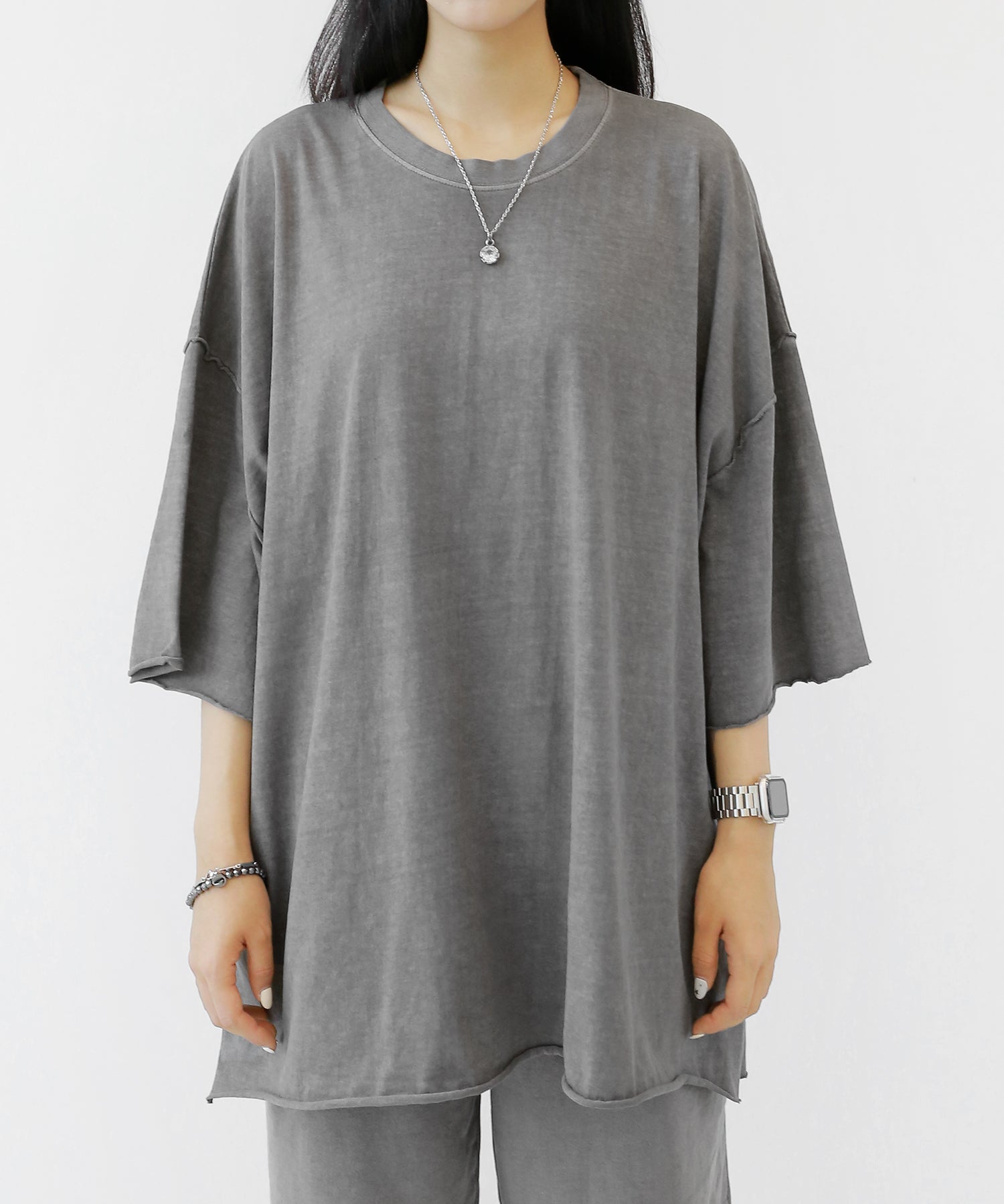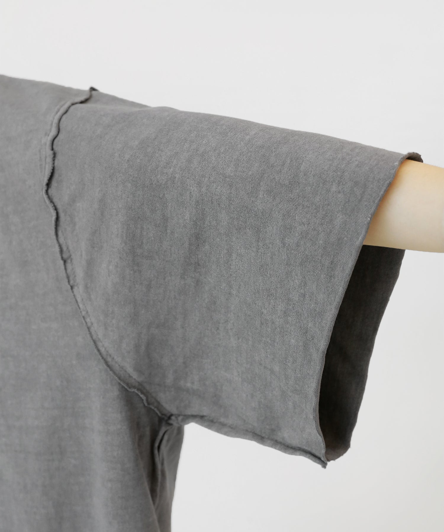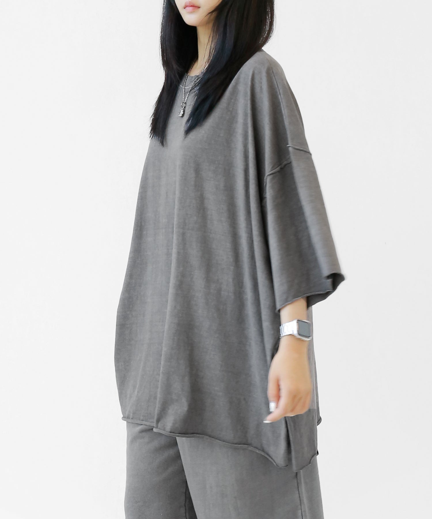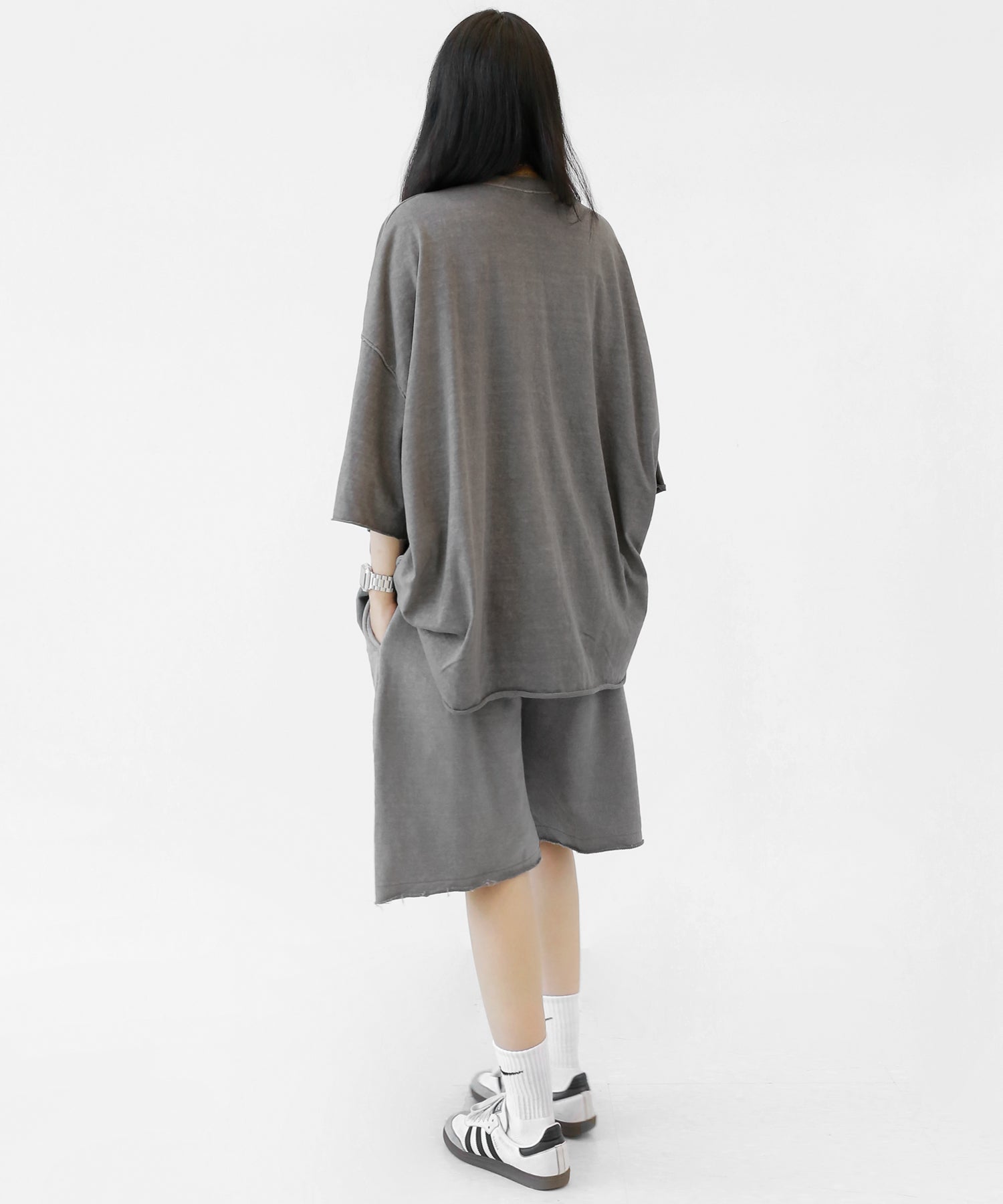 nfused with a soft vintage wash, this cut-off denim-look T-shirt delivers relaxed street vibes with ease. The flared A-line silhouette and oversized fit create a casual, breezy look—perfect for pairing with cargos or jeans.