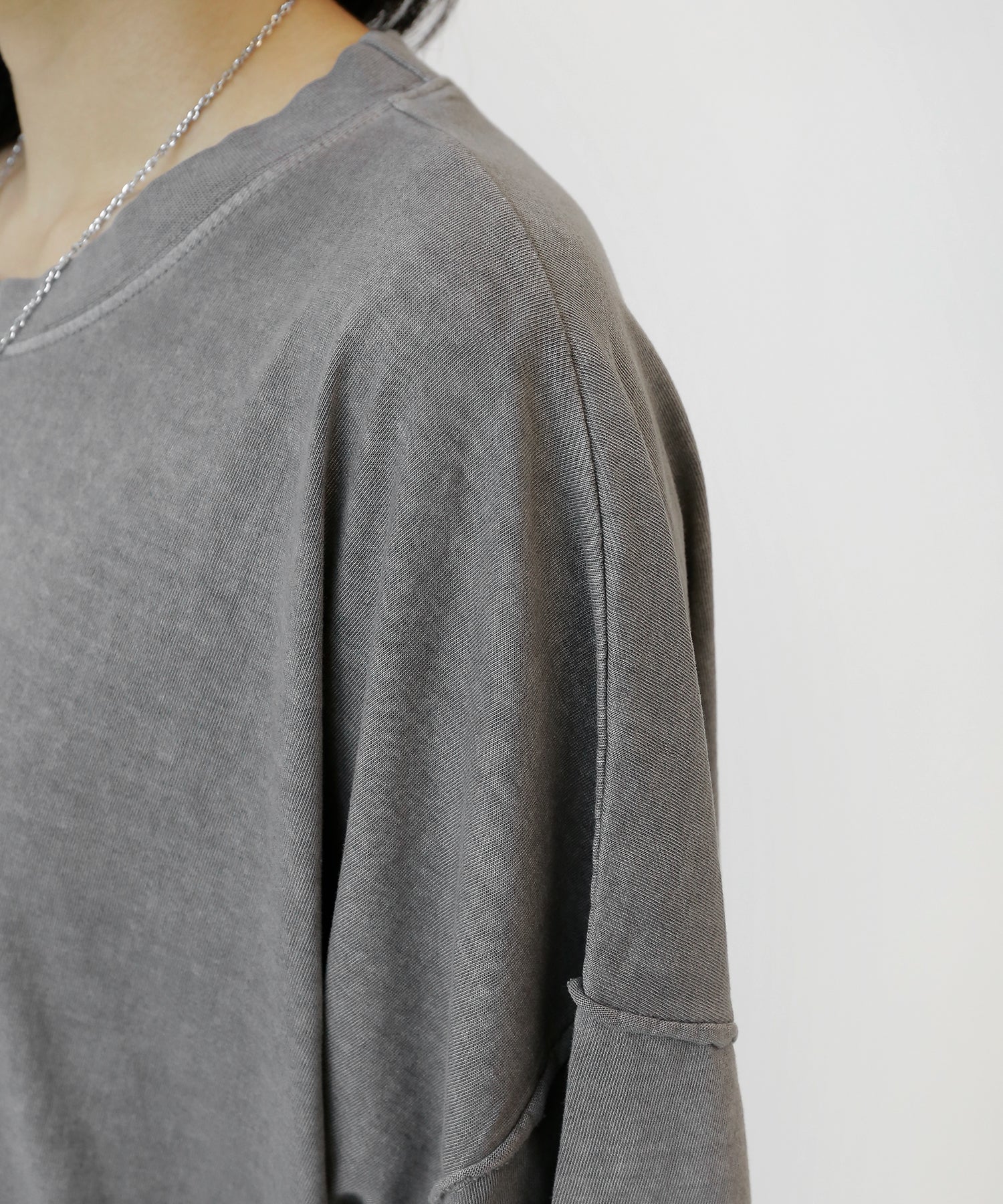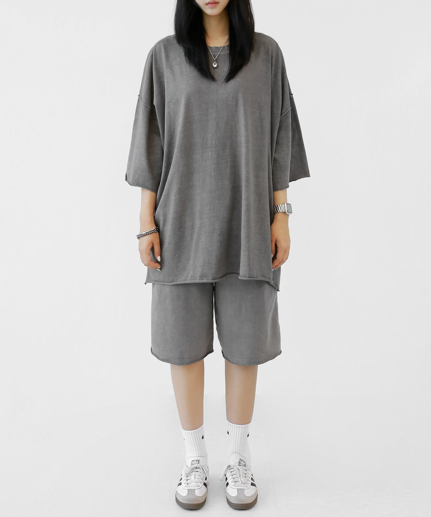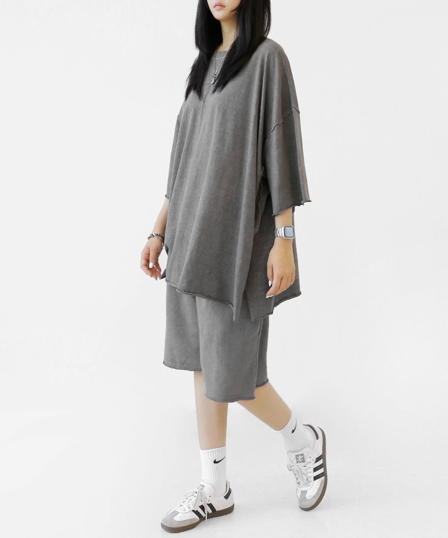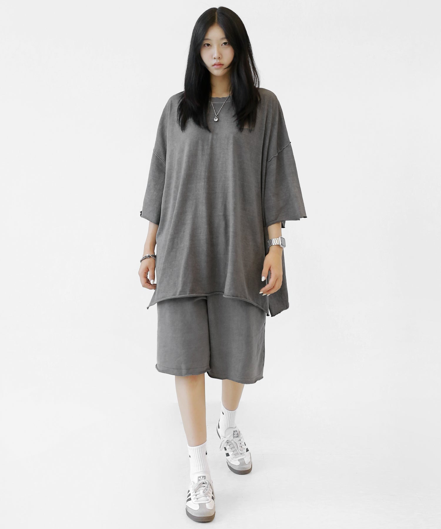 nfused with a soft vintage wash, this cut-off denim-look T-shirt delivers relaxed street vibes with ease. The flared A-line silhouette and oversized fit create a casual, breezy look—perfect for pairing with cargos or jeans.