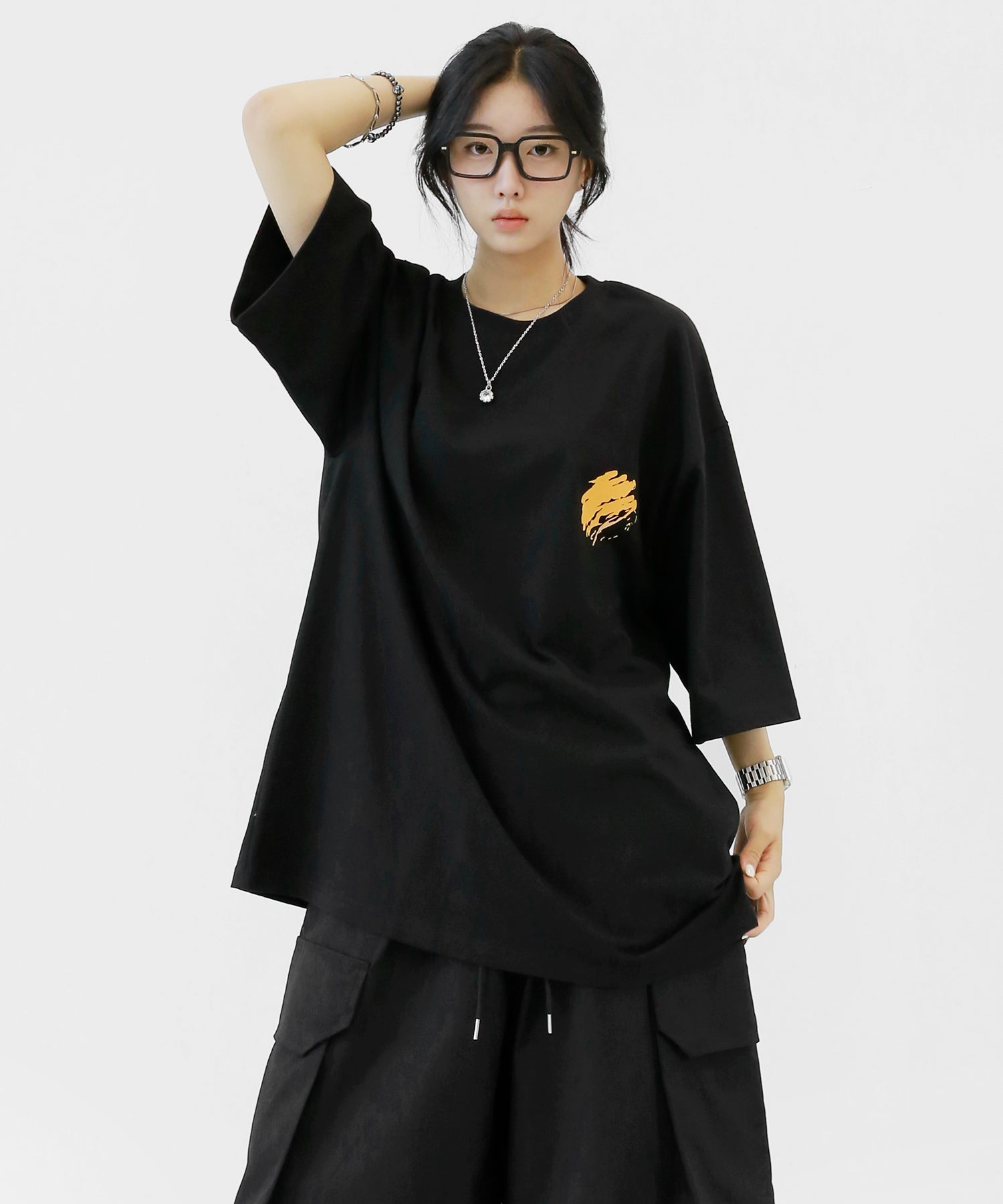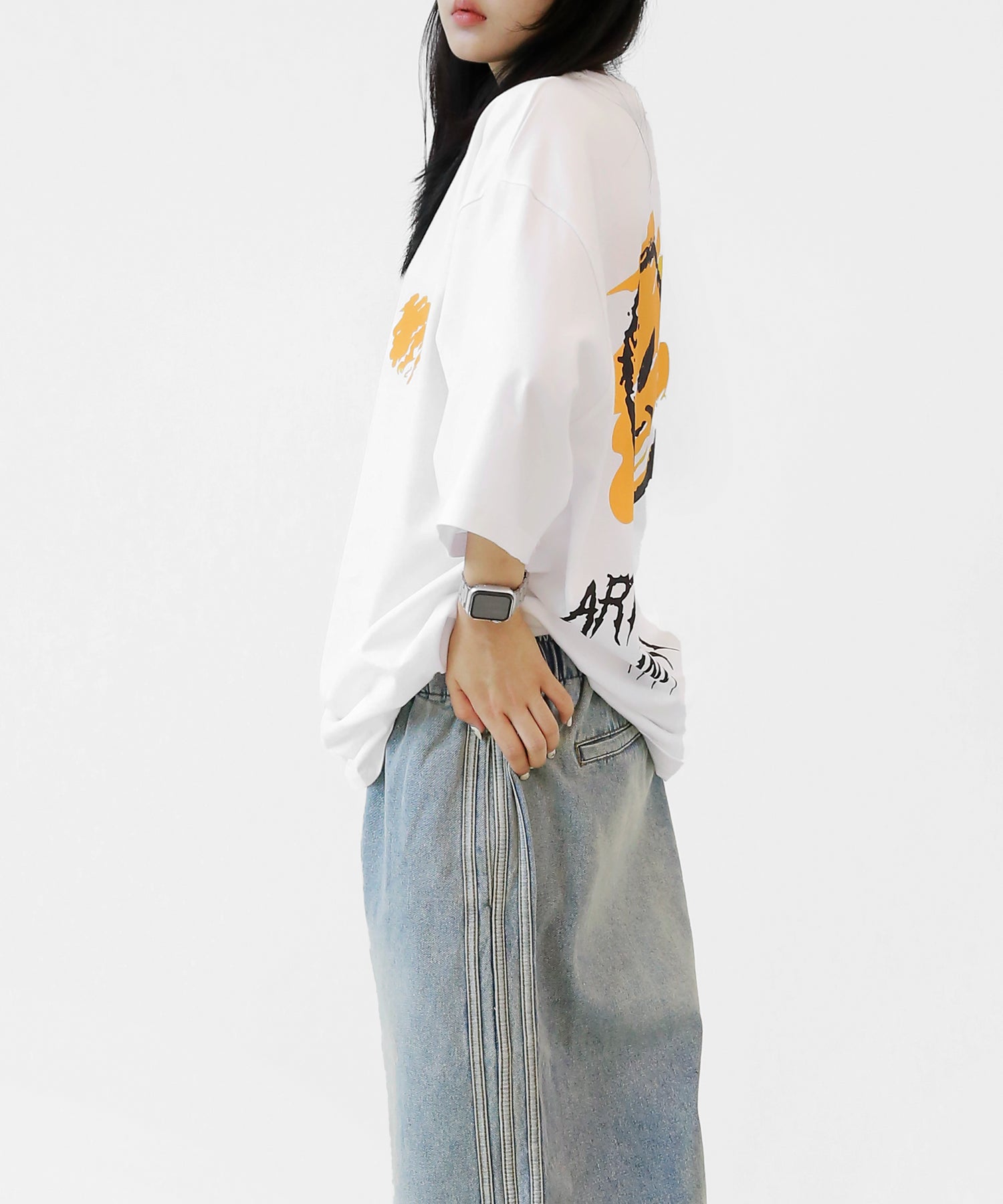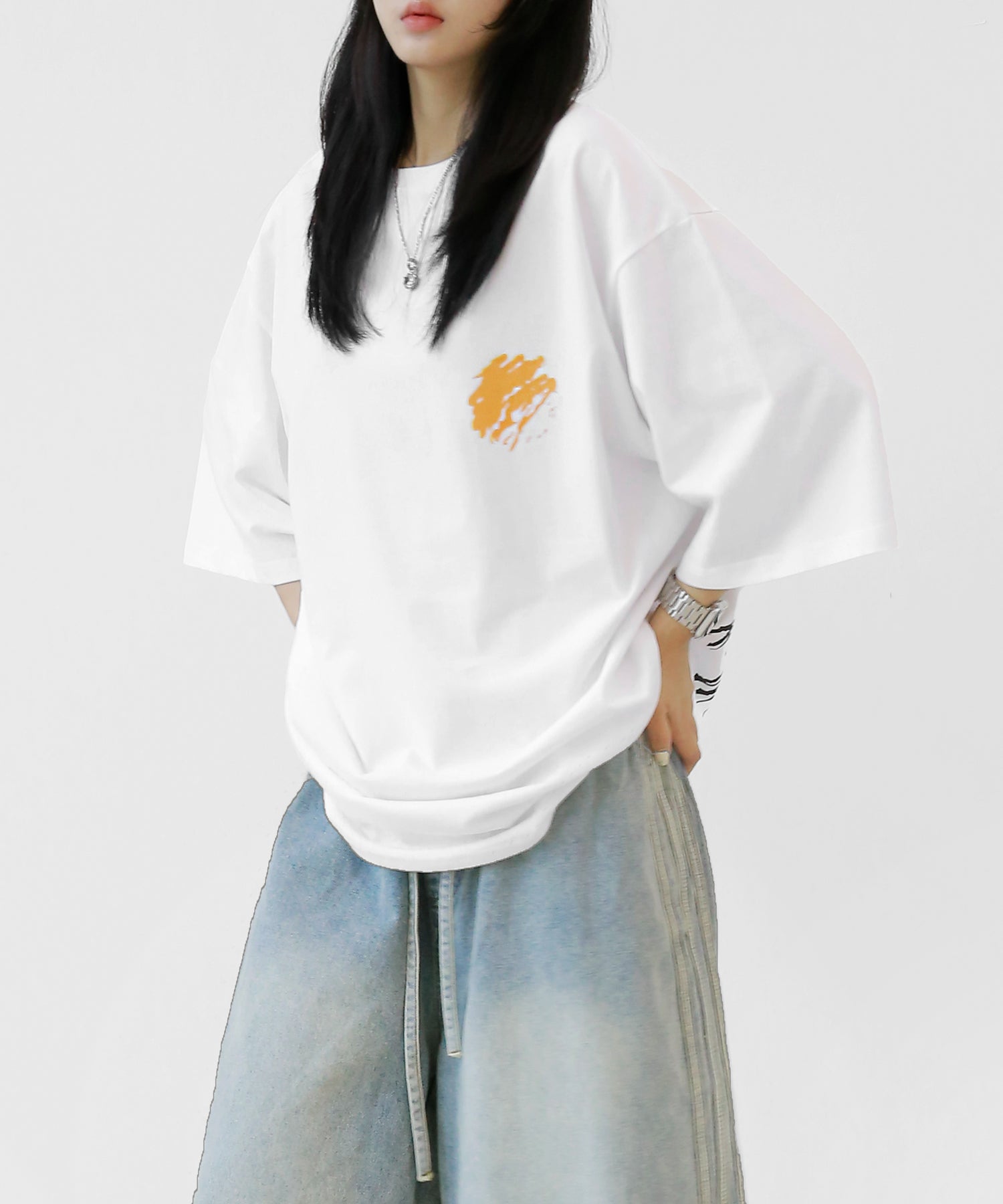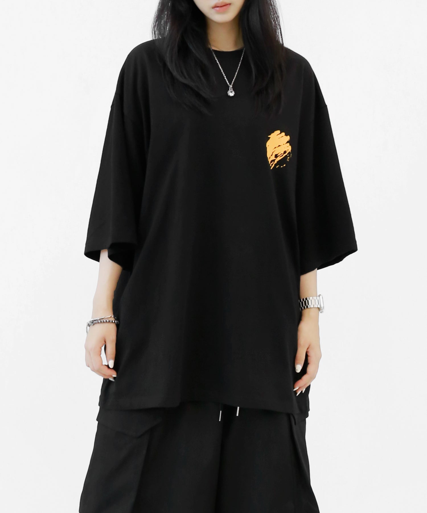 A bold graphic tee featuring a large smiley face print on the back for a playful rock vibe. The subtle front logo adds contrast, making it a standout piece for solo styling.