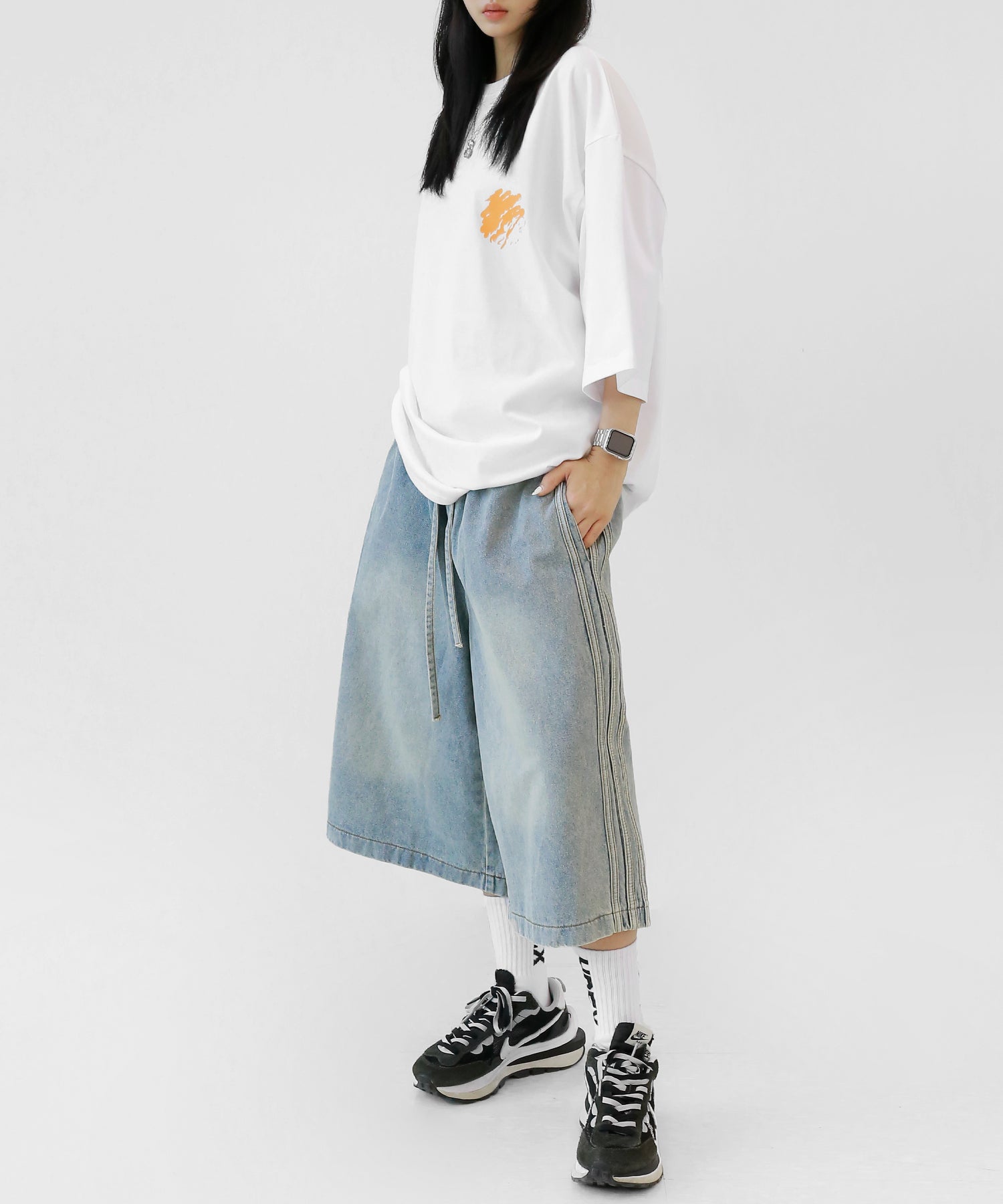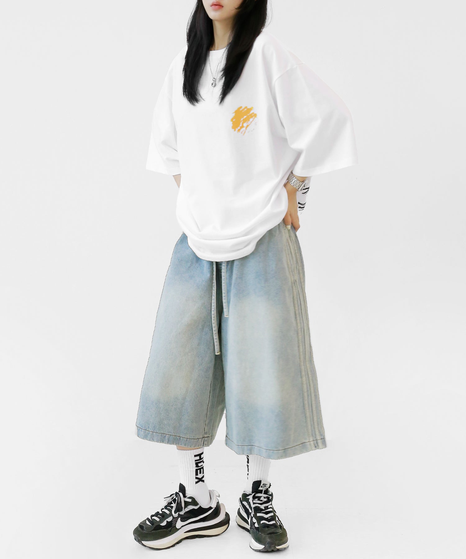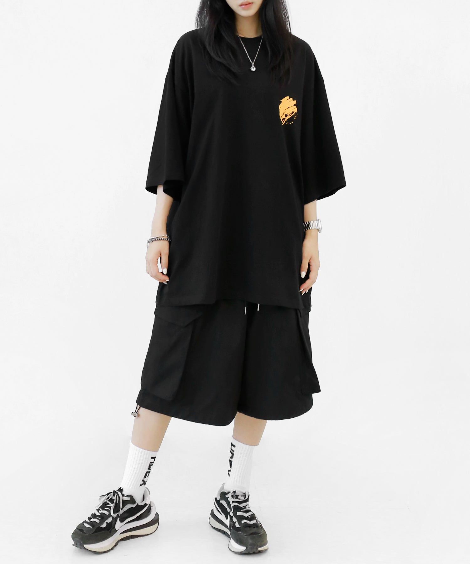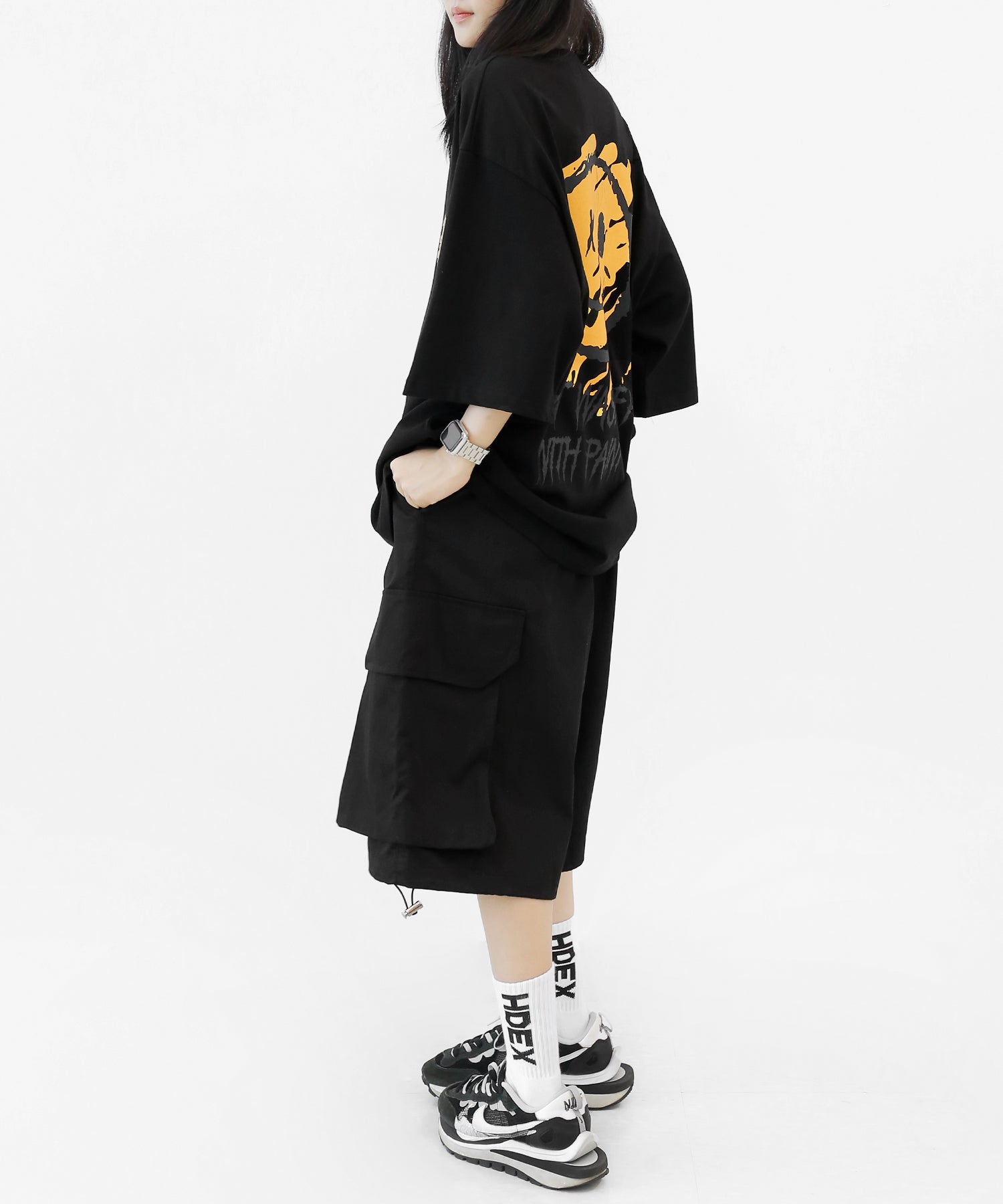 A bold graphic tee featuring a large smiley face print on the back for a playful rock vibe. The subtle front logo adds contrast, making it a standout piece for solo styling.