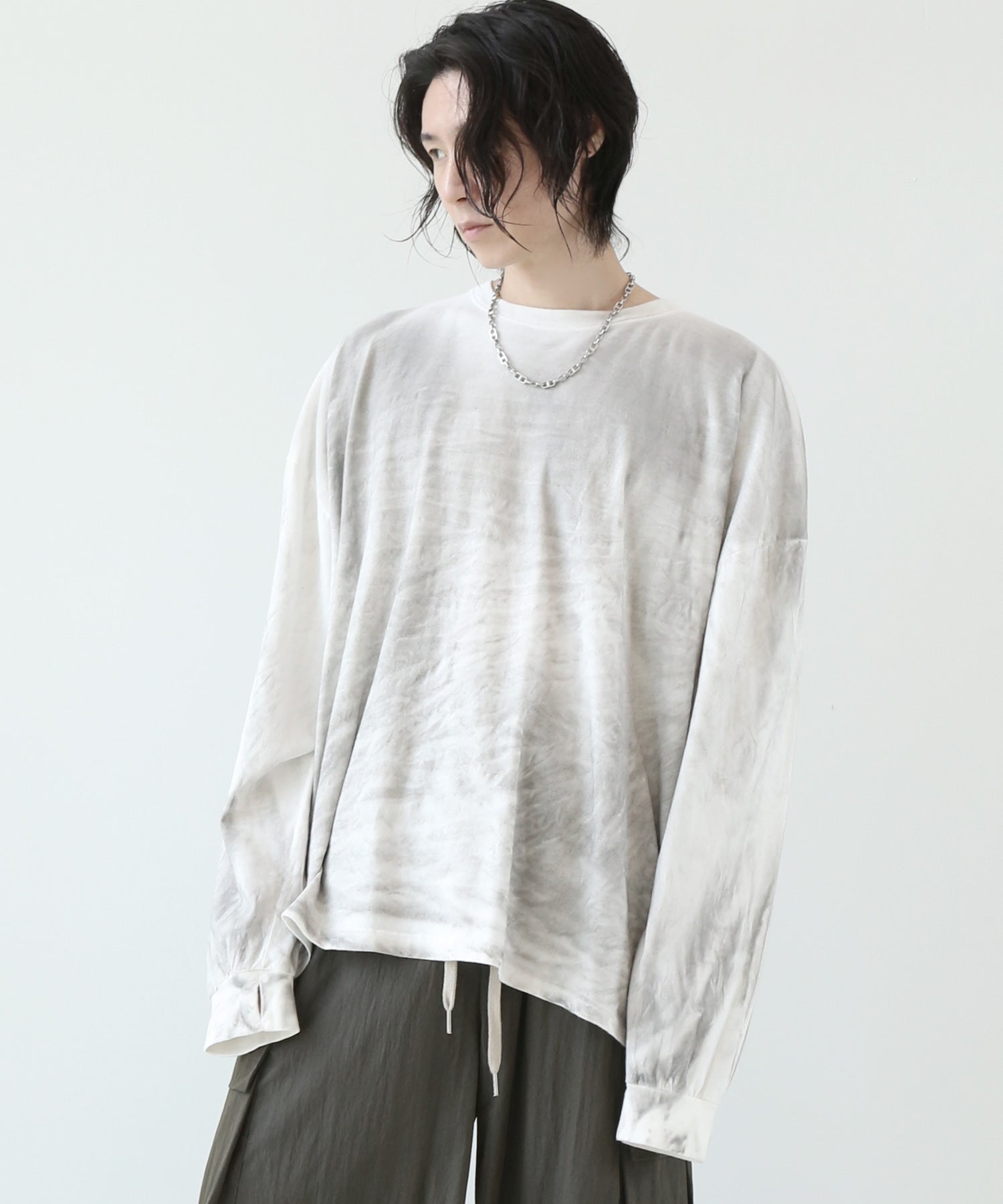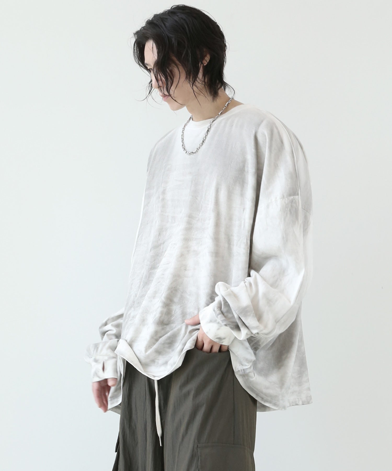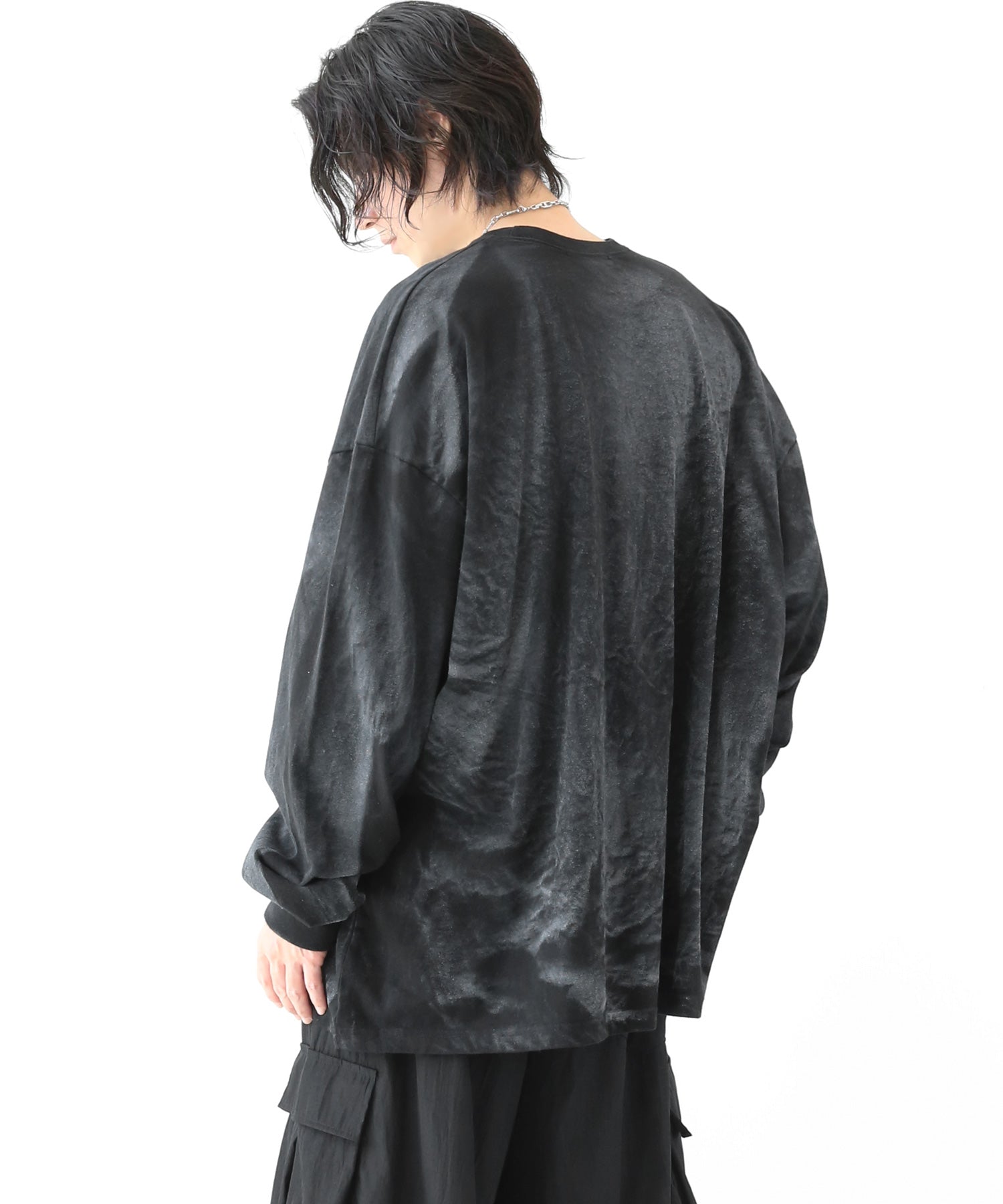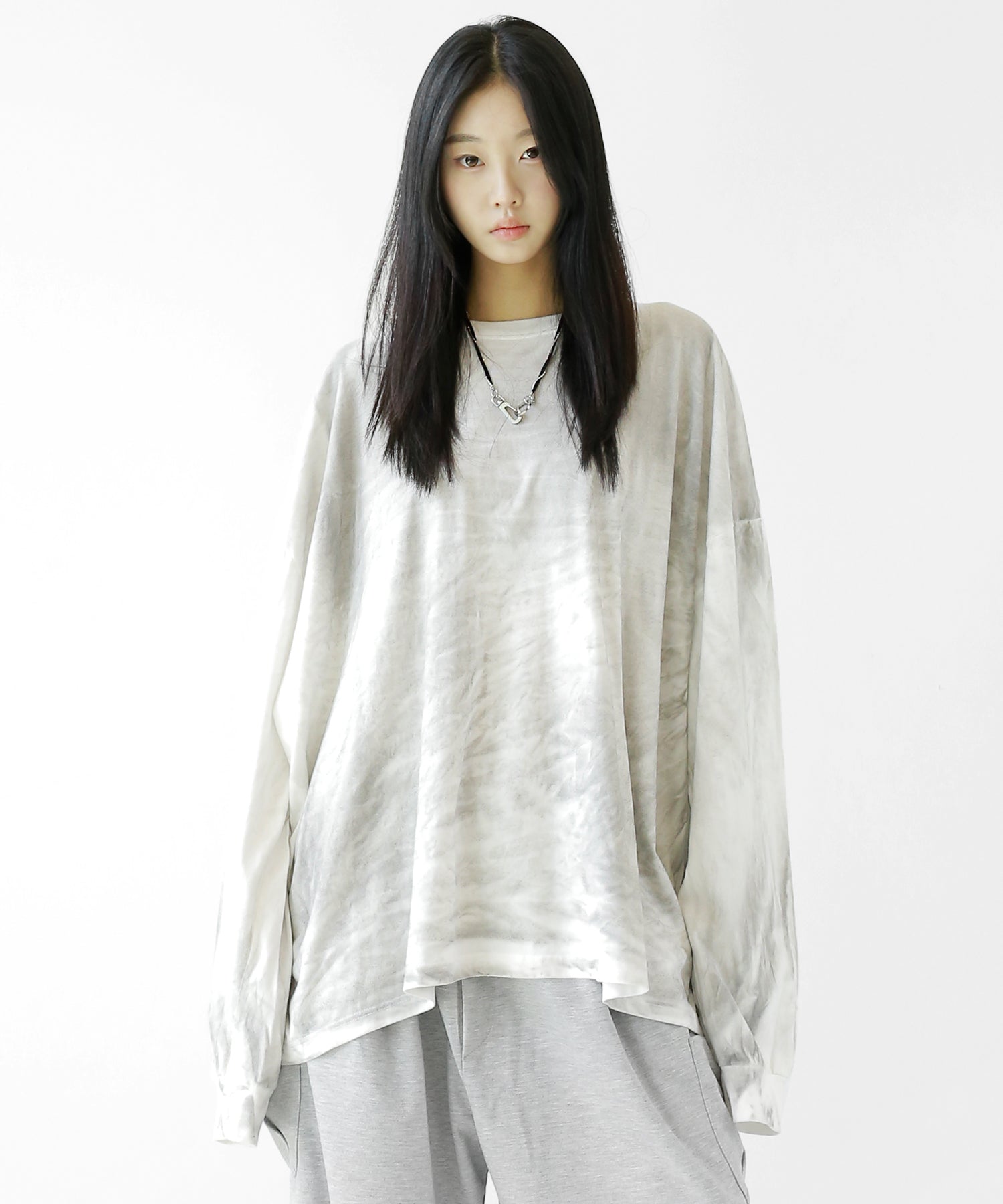 A unique long sleeve tee featuring a smoky gradient graphic that resembles mist and marble art. With finger-hole sleeves and a relaxed silhouette, it adds instant street-ready vibes to any look.