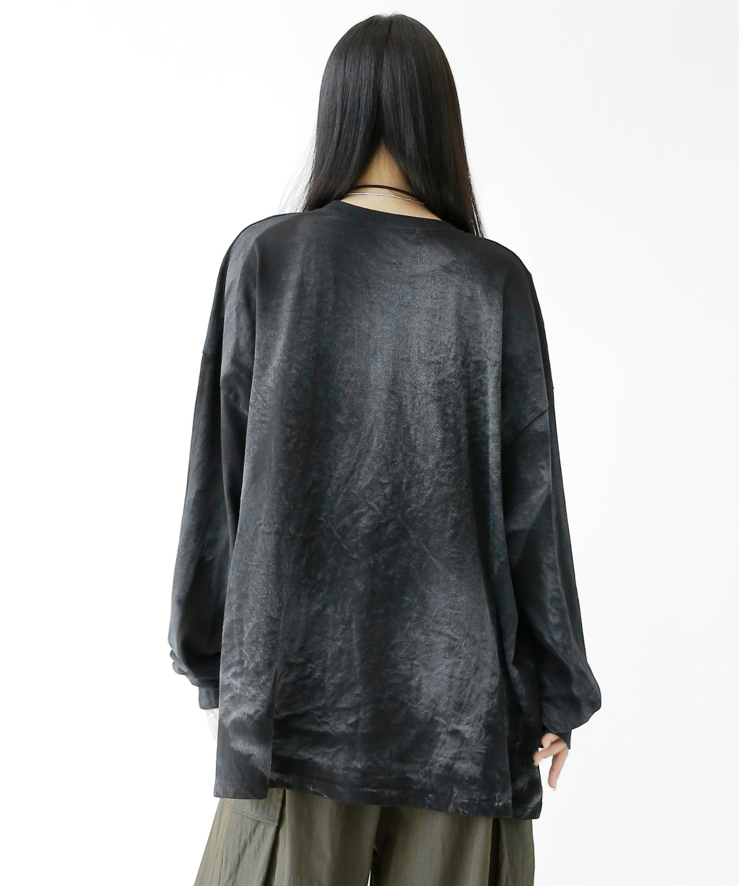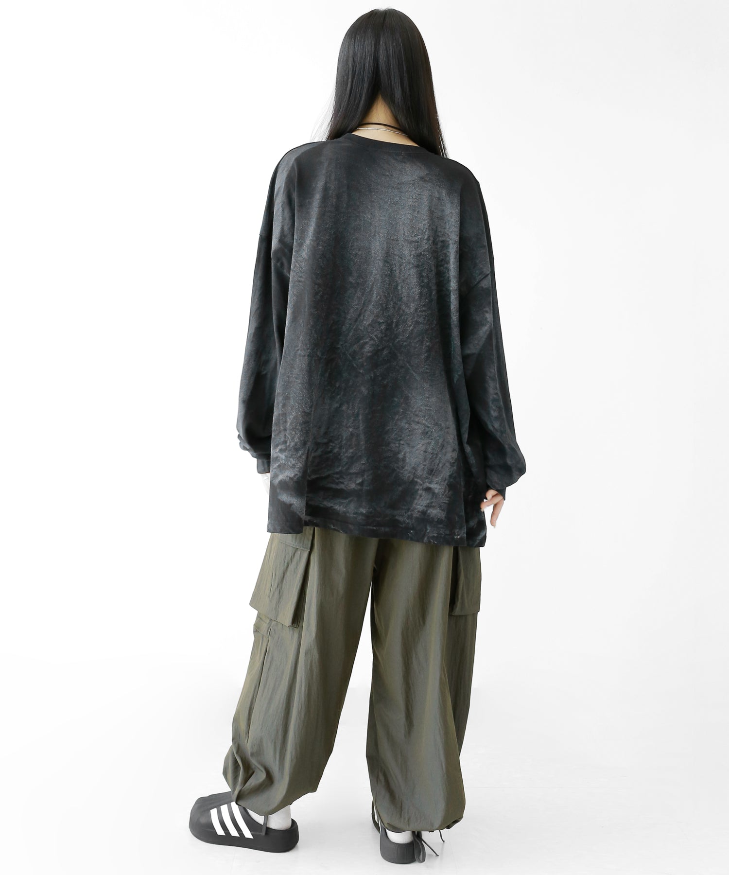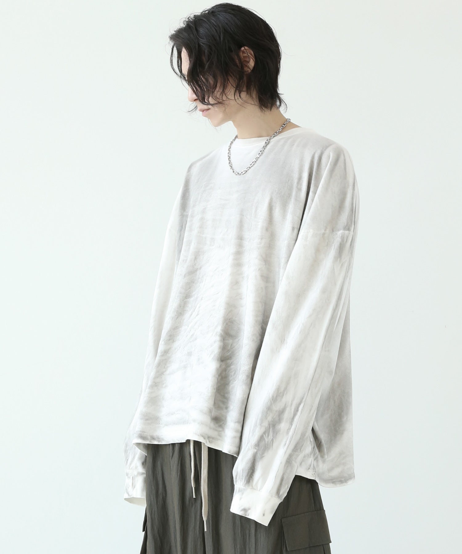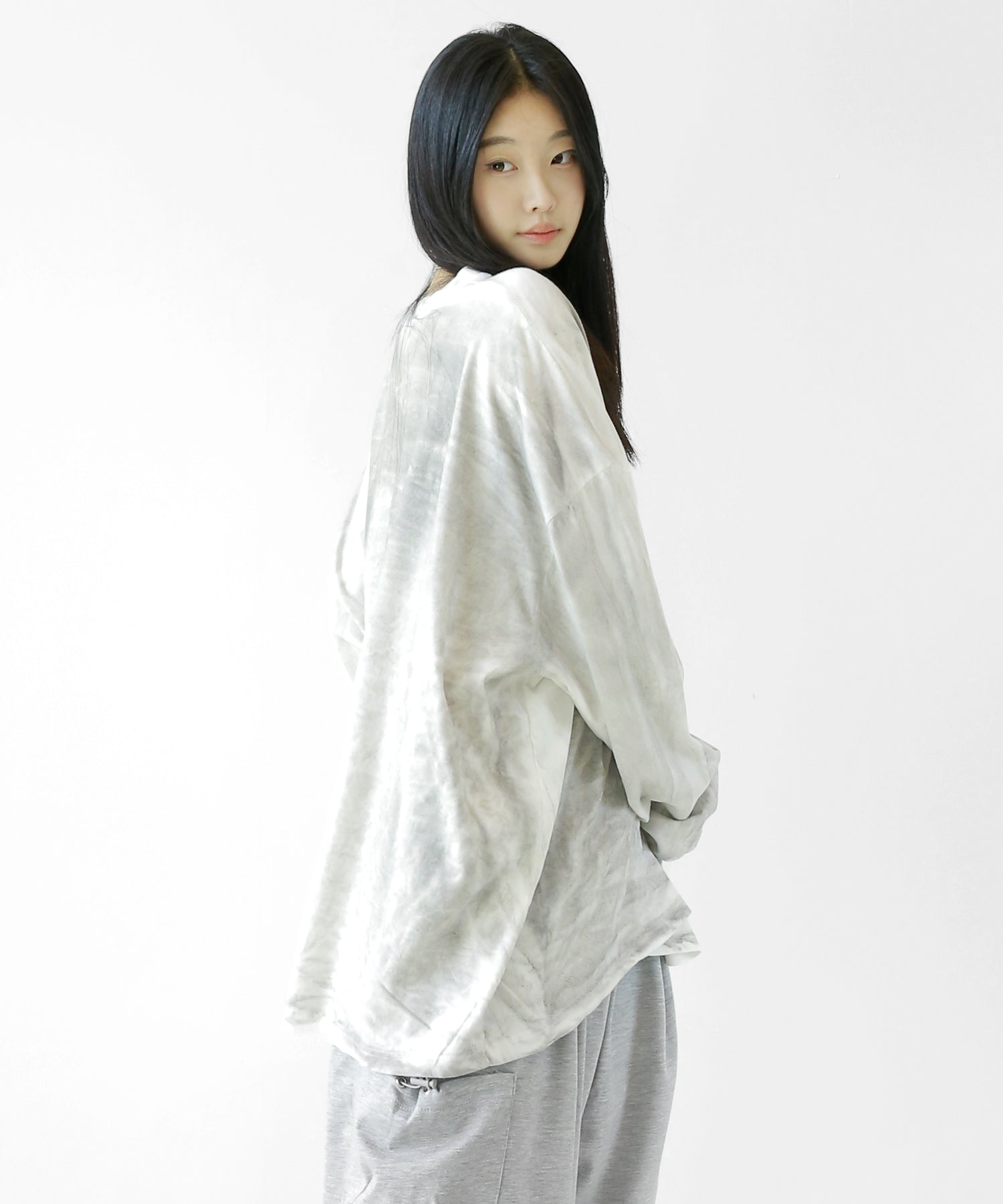 A unique long sleeve tee featuring a smoky gradient graphic that resembles mist and marble art. With finger-hole sleeves and a relaxed silhouette, it adds instant street-ready vibes to any look.