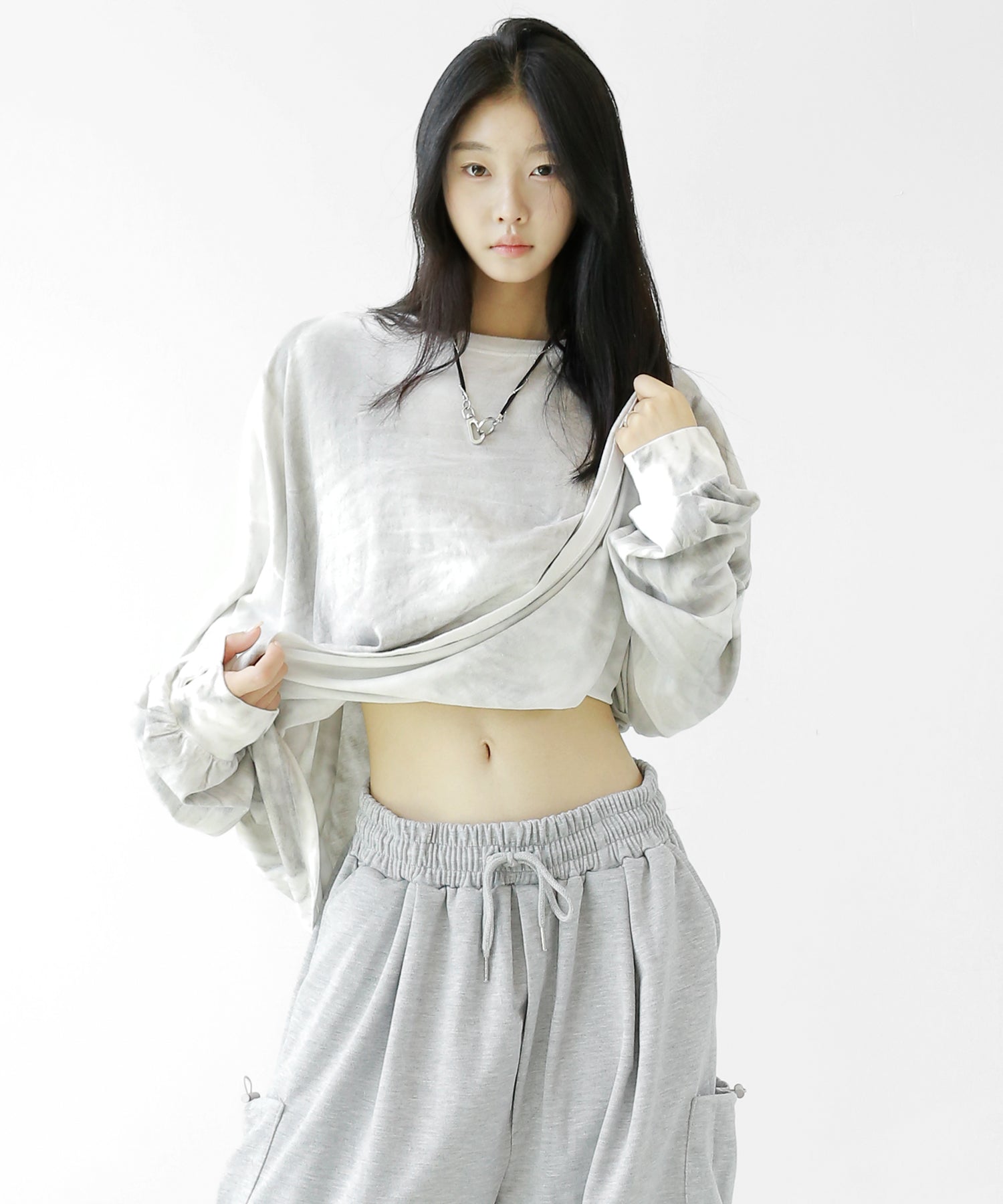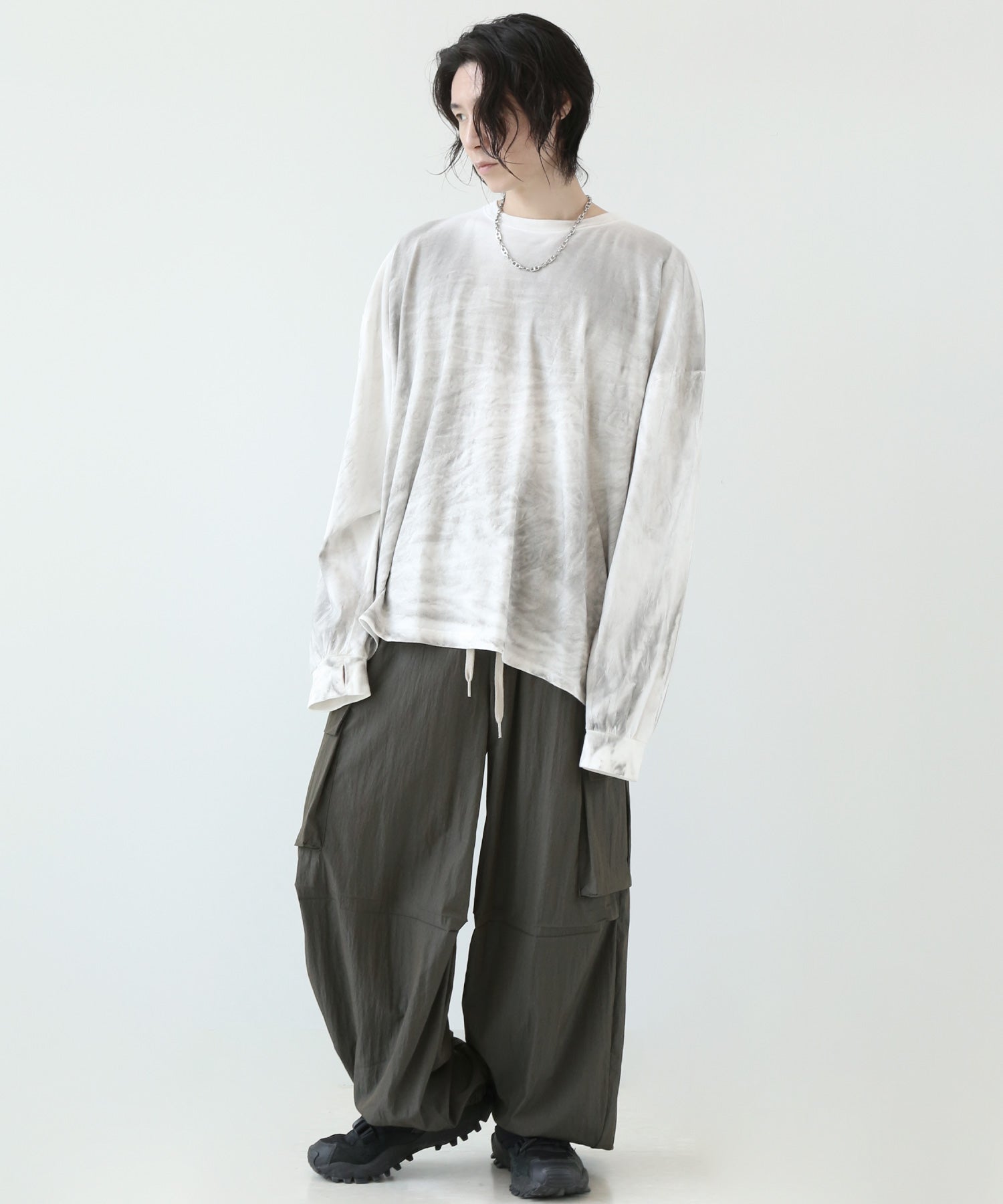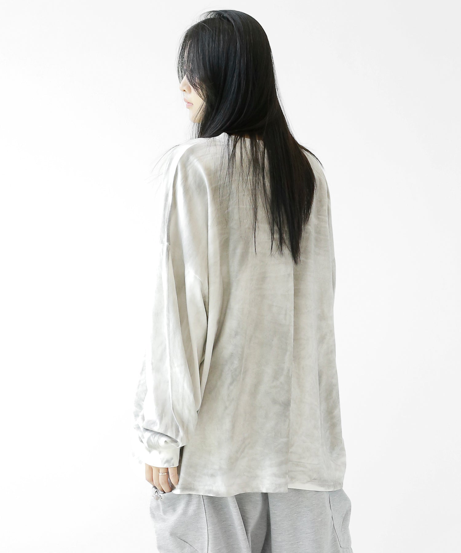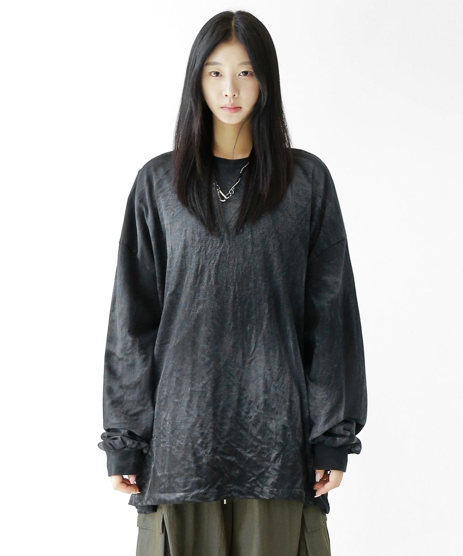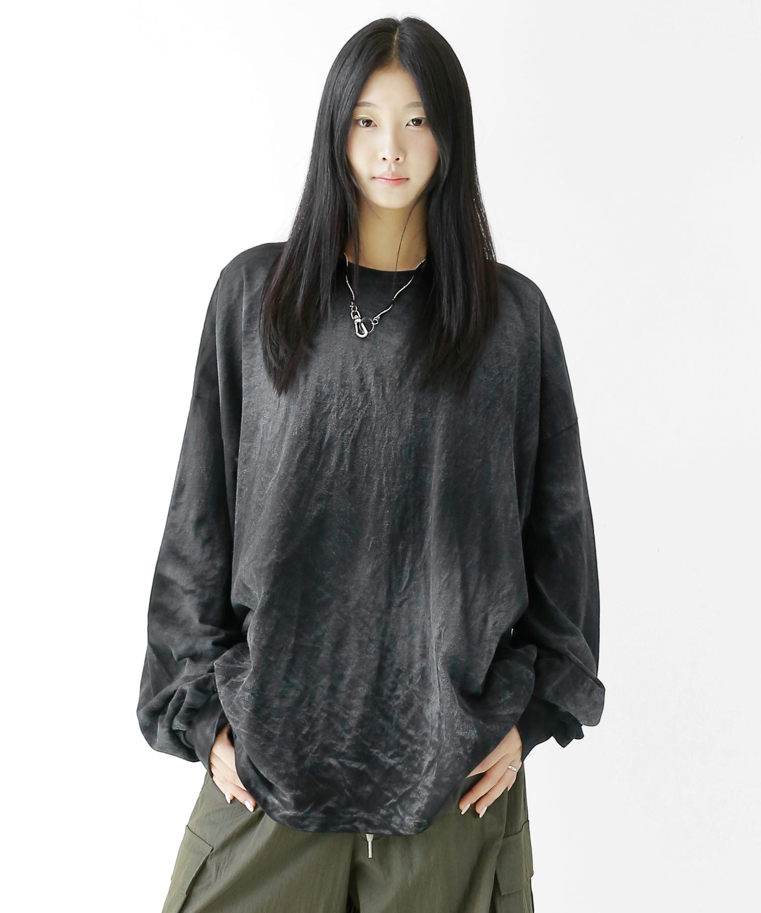 A unique long sleeve tee featuring a smoky gradient graphic that resembles mist and marble art. With finger-hole sleeves and a relaxed silhouette, it adds instant street-ready vibes to any look.