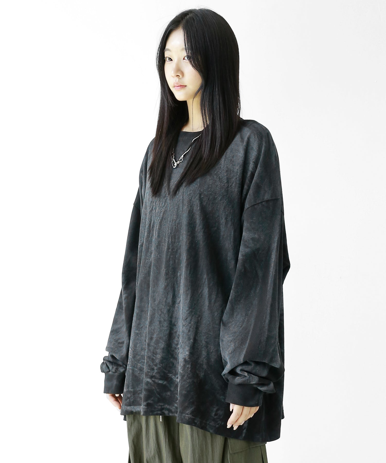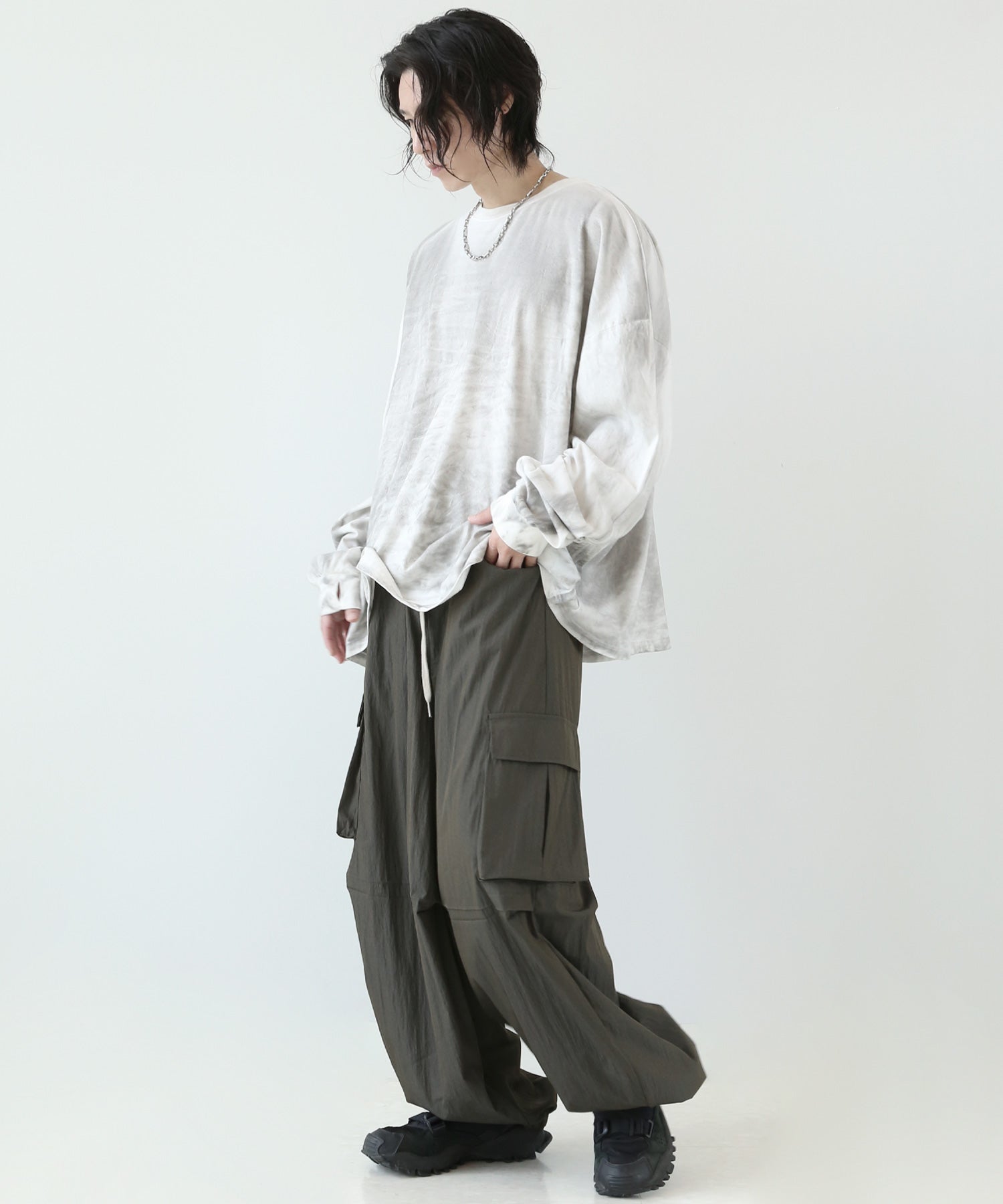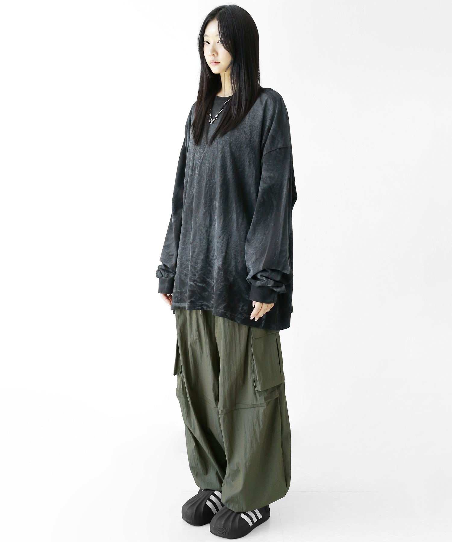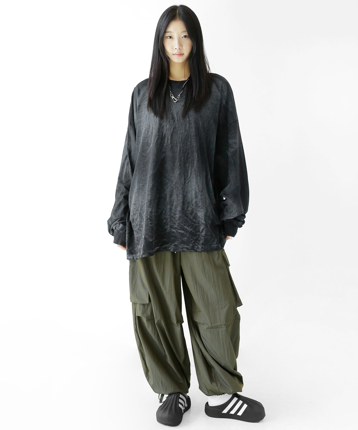 A unique long sleeve tee featuring a smoky gradient graphic that resembles mist and marble art. With finger-hole sleeves and a relaxed silhouette, it adds instant street-ready vibes to any look.
