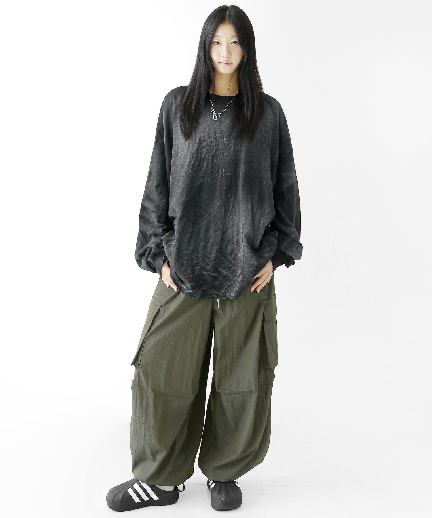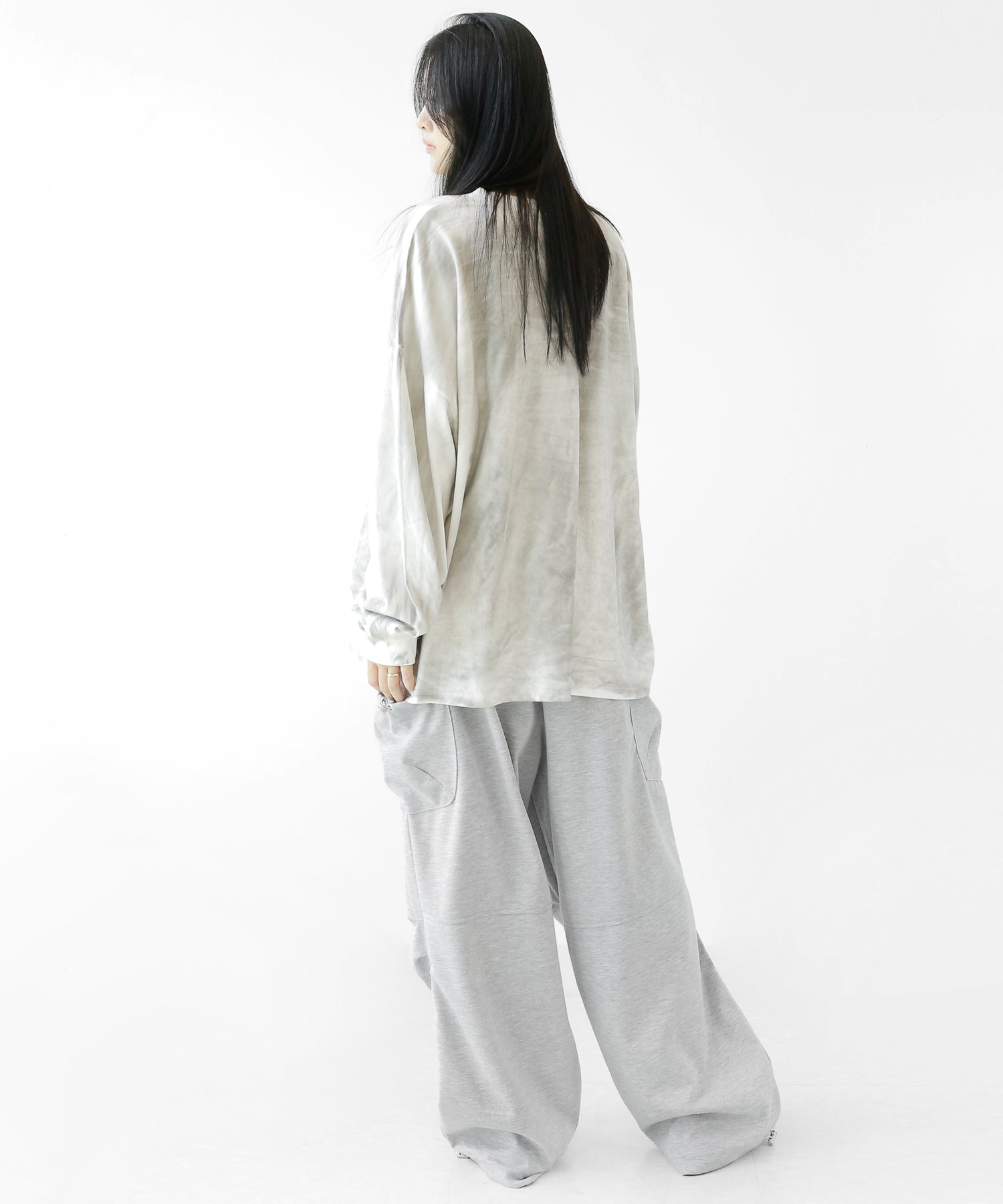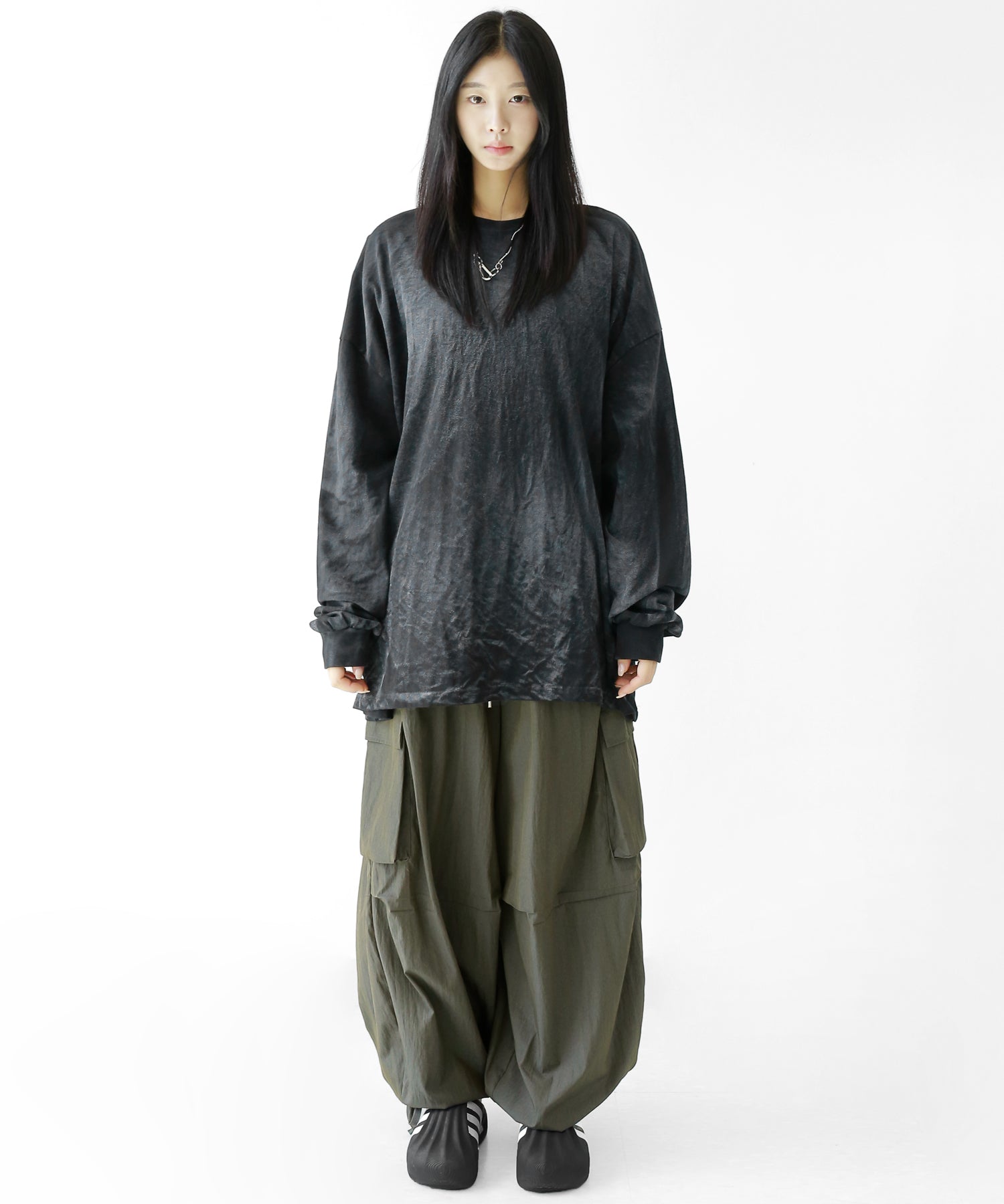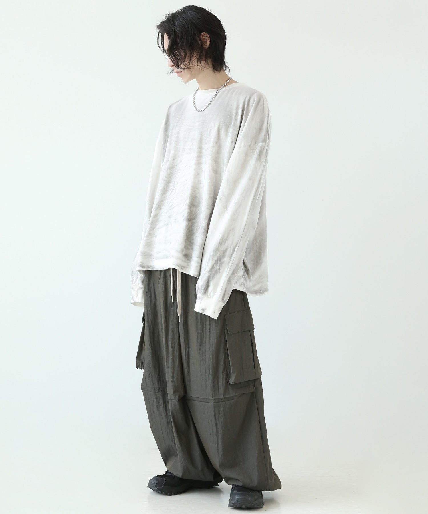 A unique long sleeve tee featuring a smoky gradient graphic that resembles mist and marble art. With finger-hole sleeves and a relaxed silhouette, it adds instant street-ready vibes to any look.