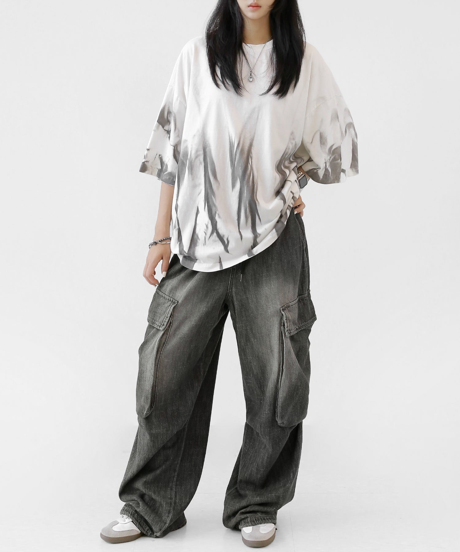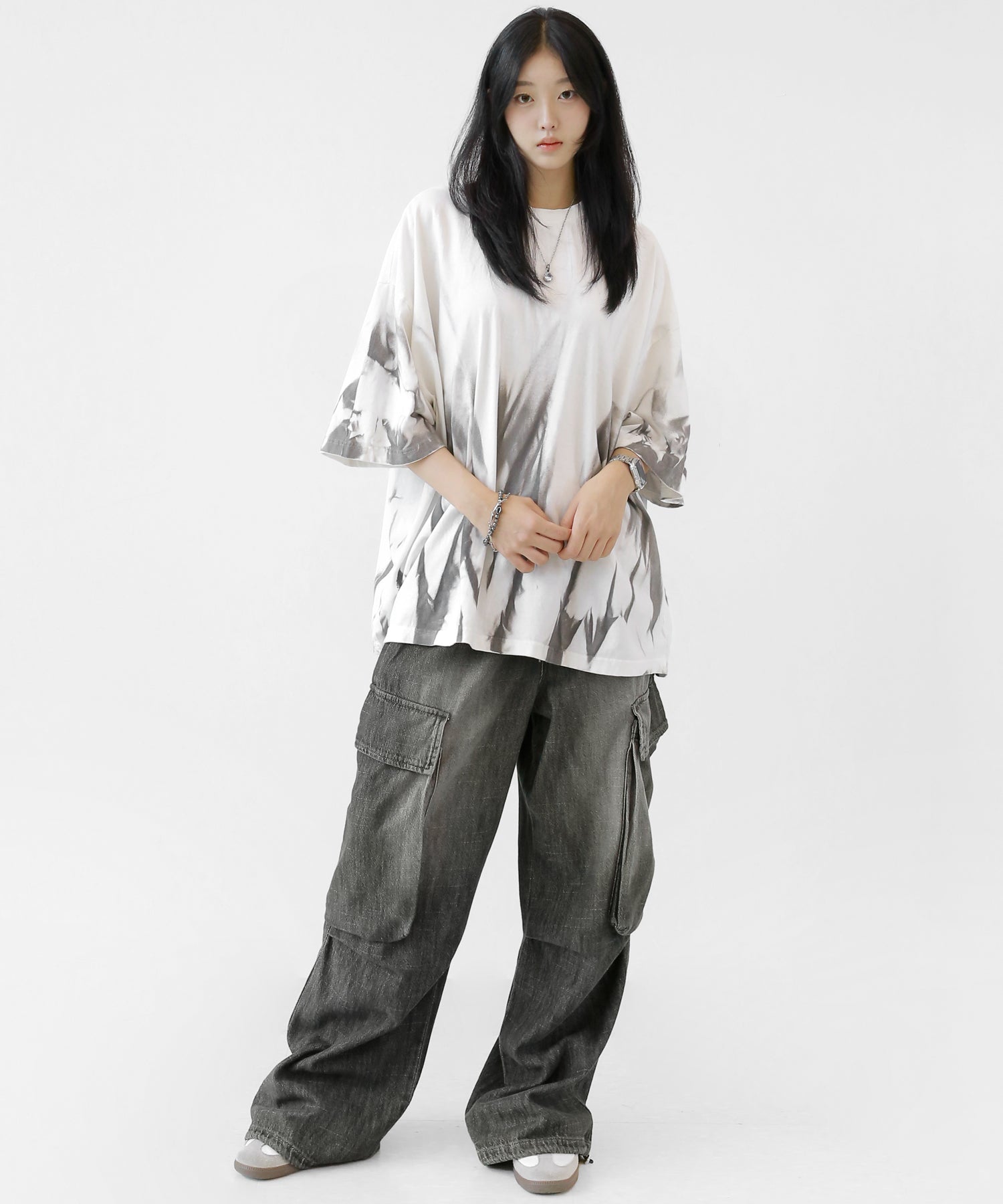This eye-catching tee features a lightning-inspired bleach pattern that delivers serious streetwear impact. With its vintage-style finish and oversized silhouette, it’s an instant statement piece.