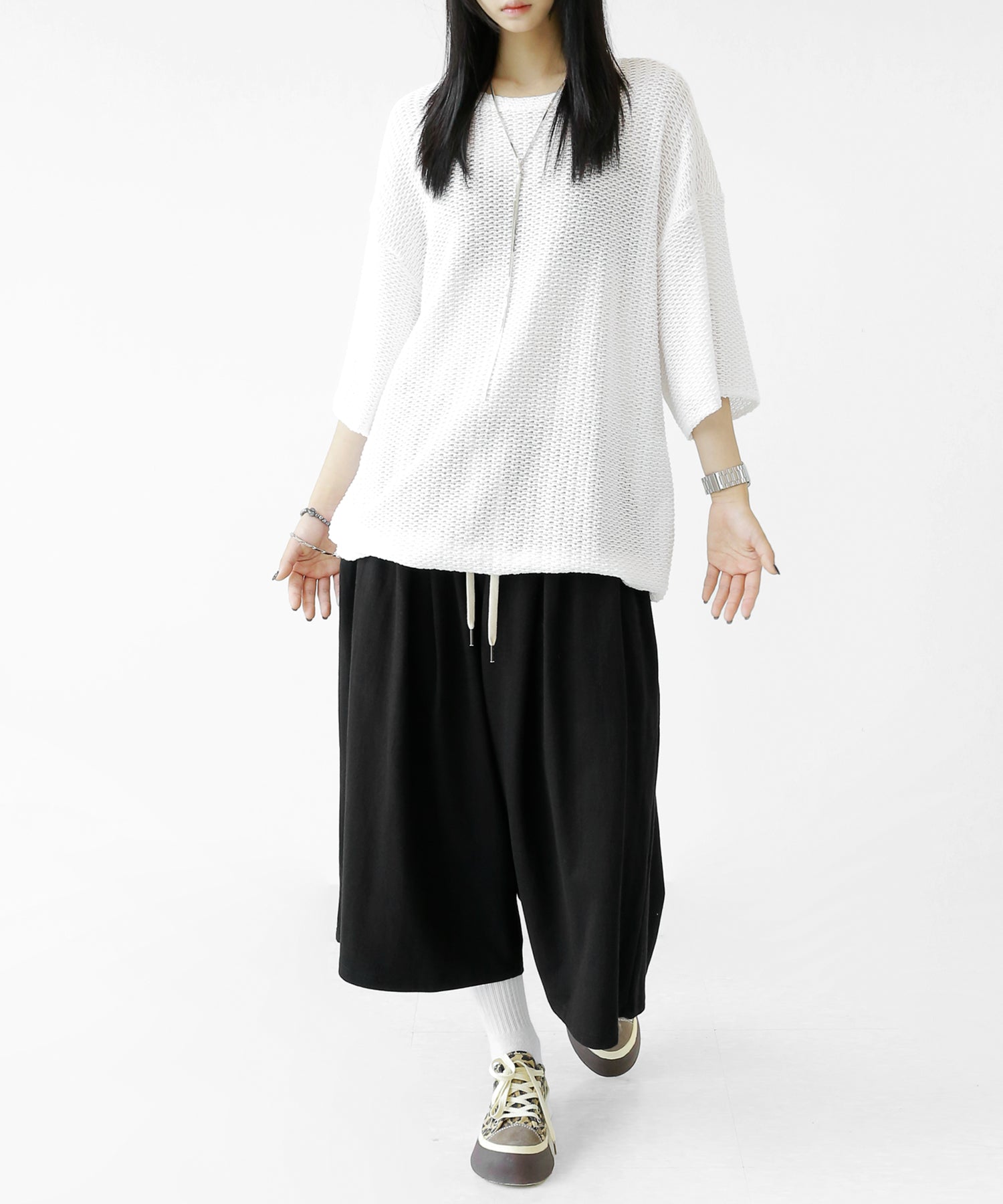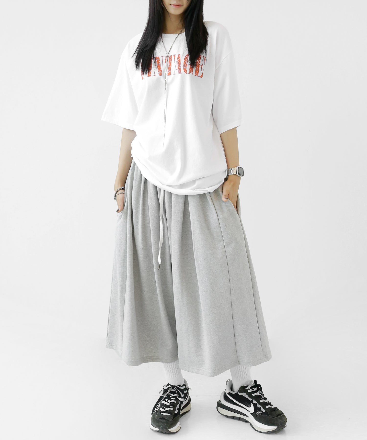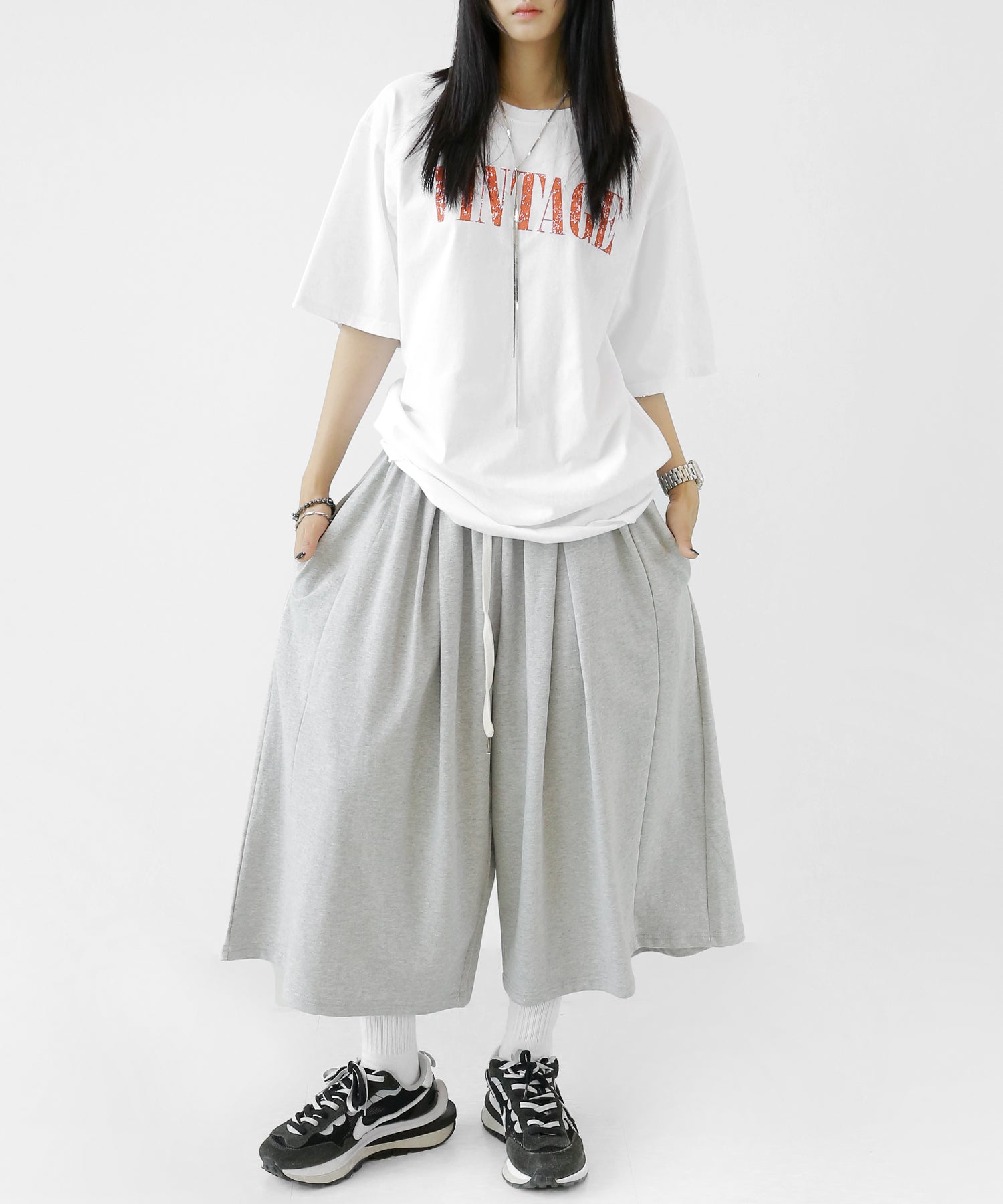 WOMAN: 167 cm | 48 kg | Wearing FREE SIZE (BLACK, GRAY)