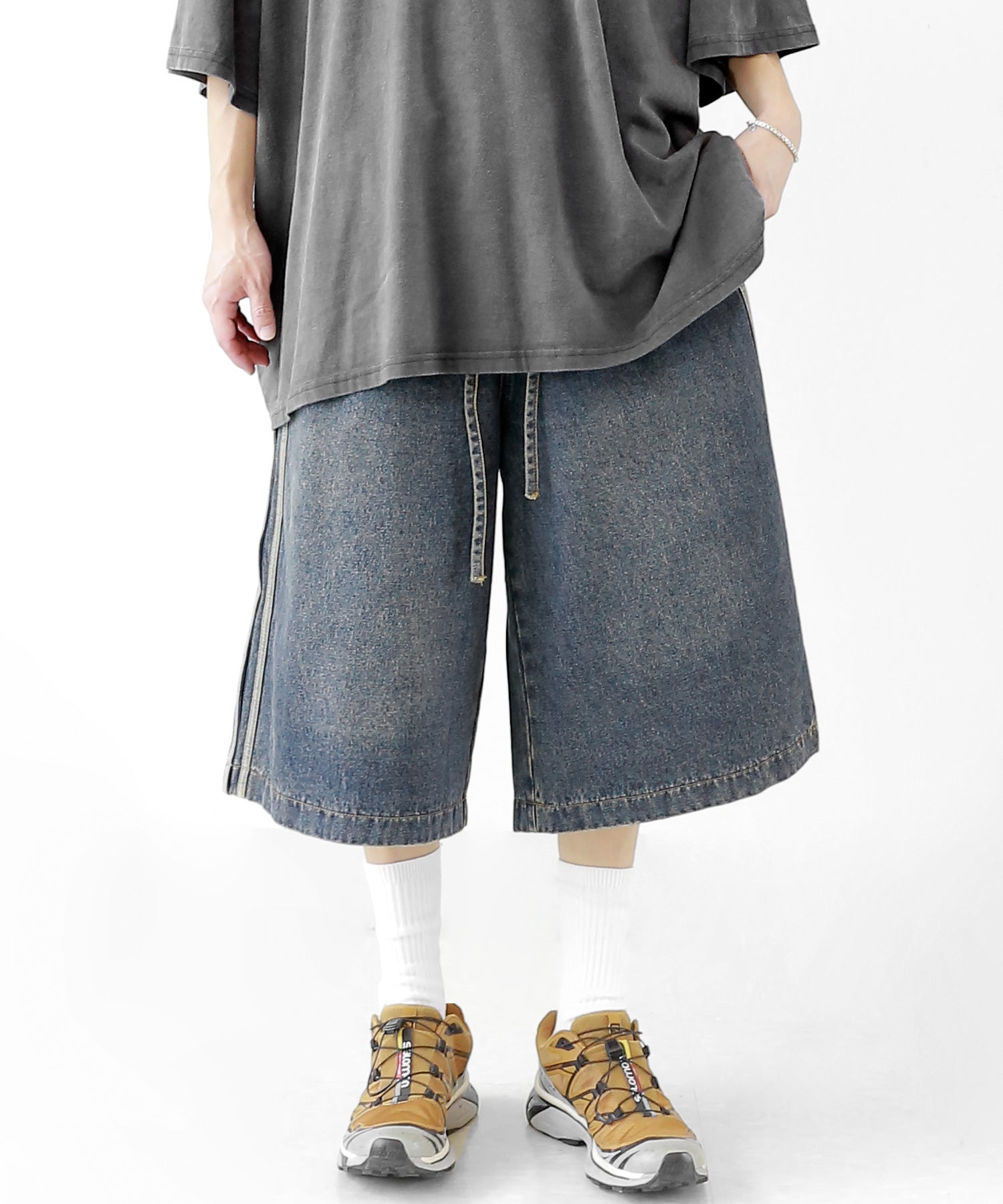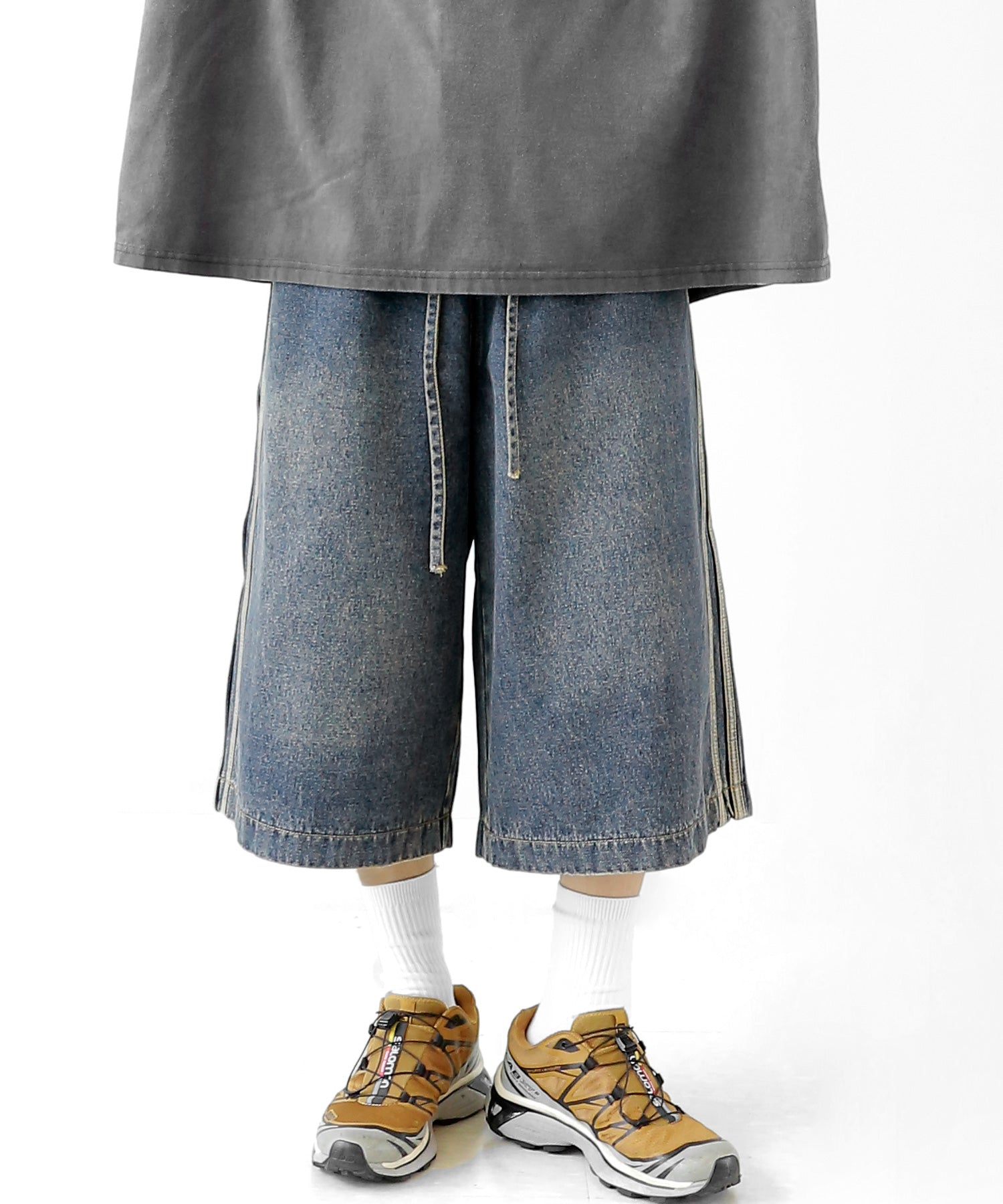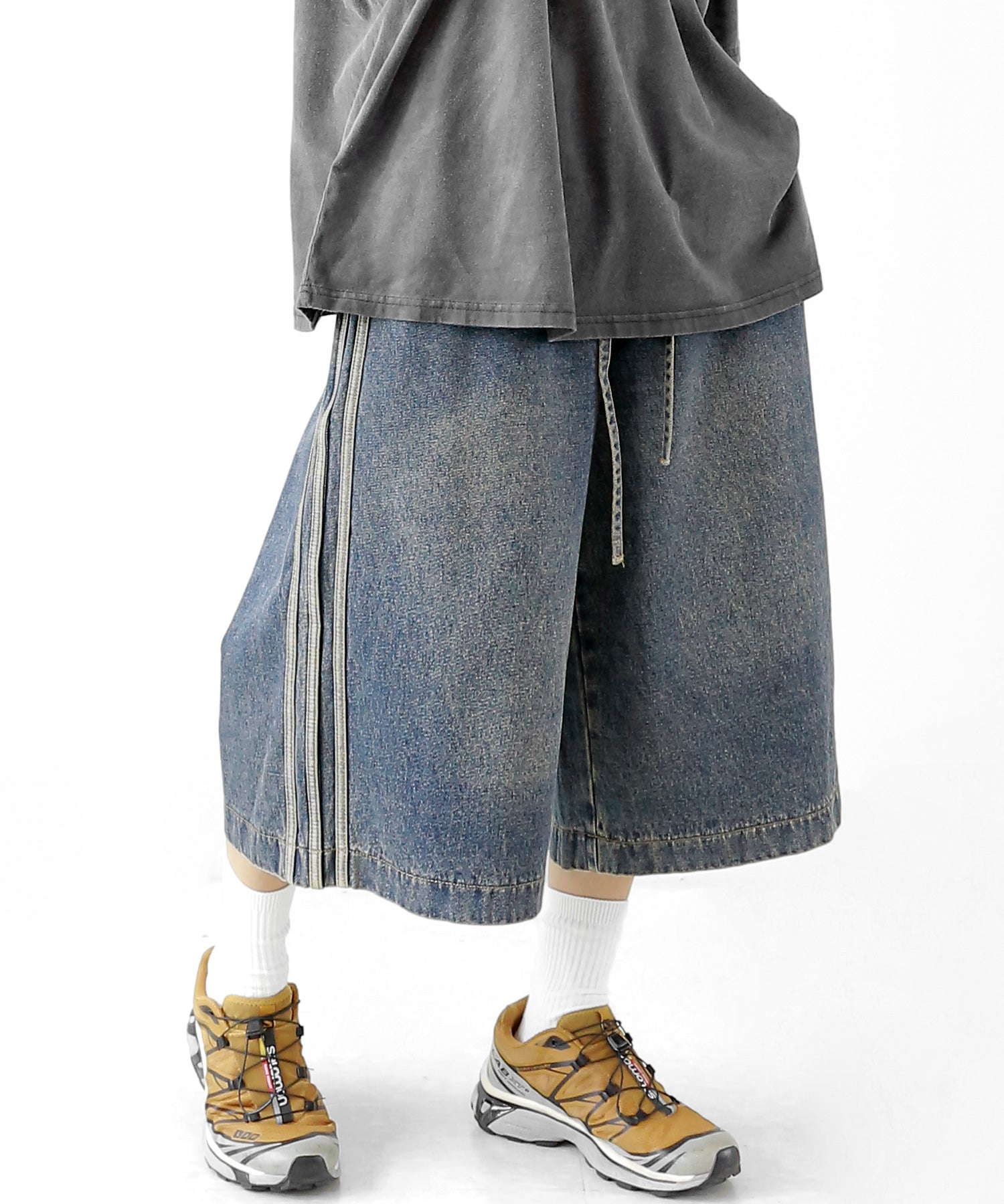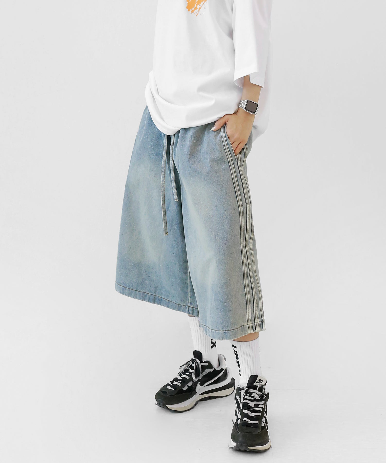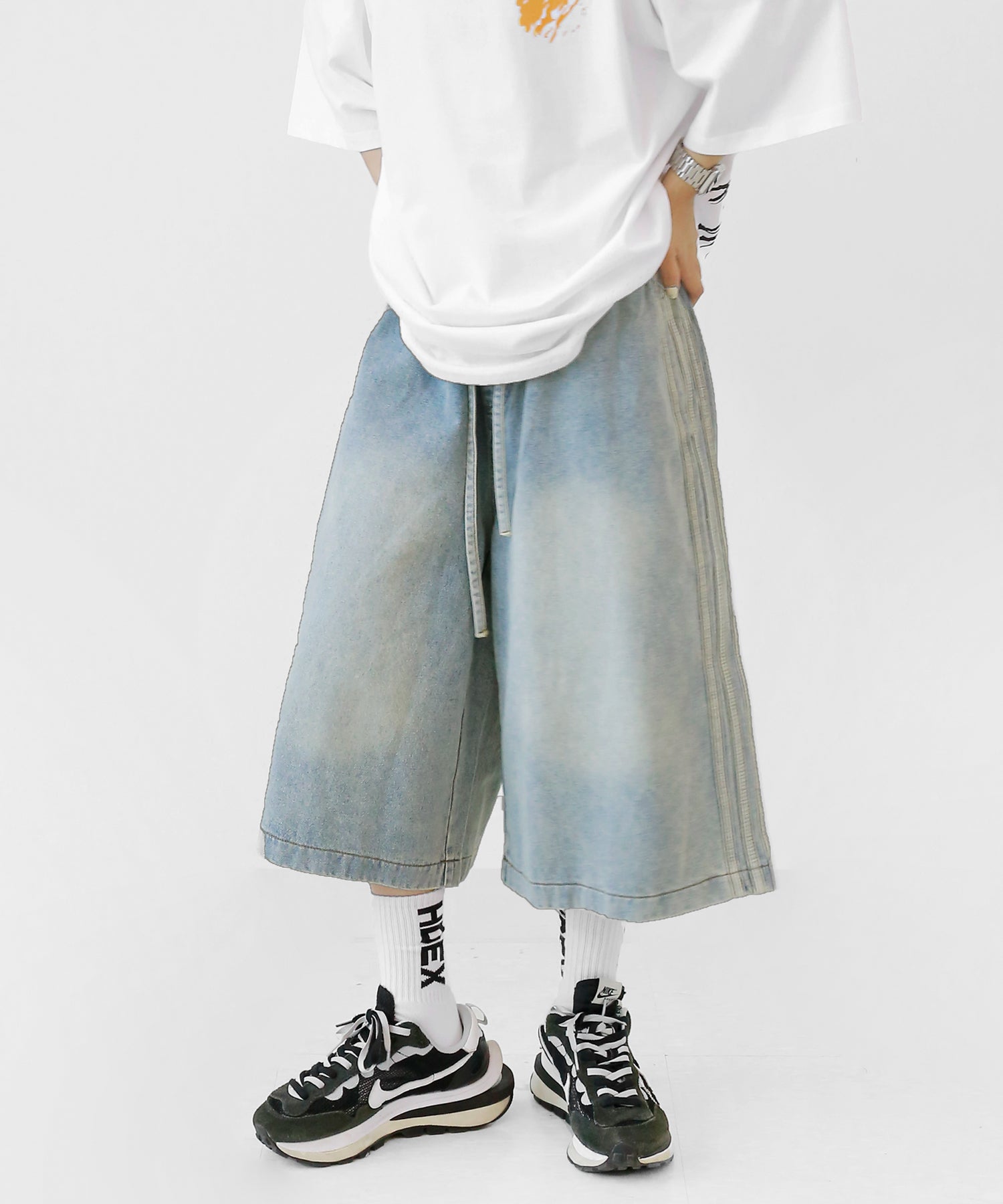 A modern denim Bermuda short featuring side stripe accents and a perfectly washed finish. Designed for both street and casual looks, this standout piece combines bold style with effortless comfort.