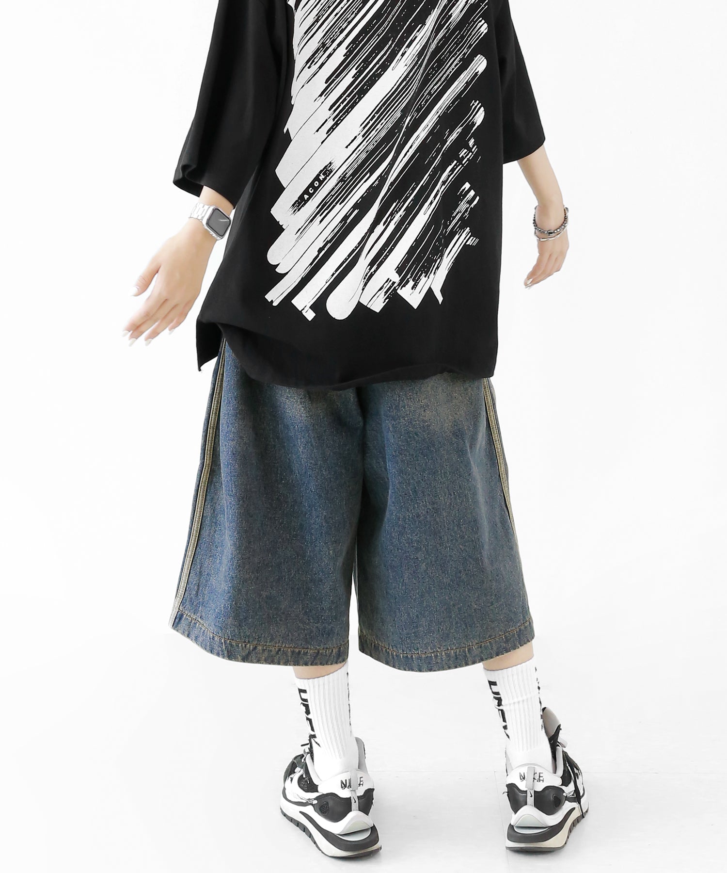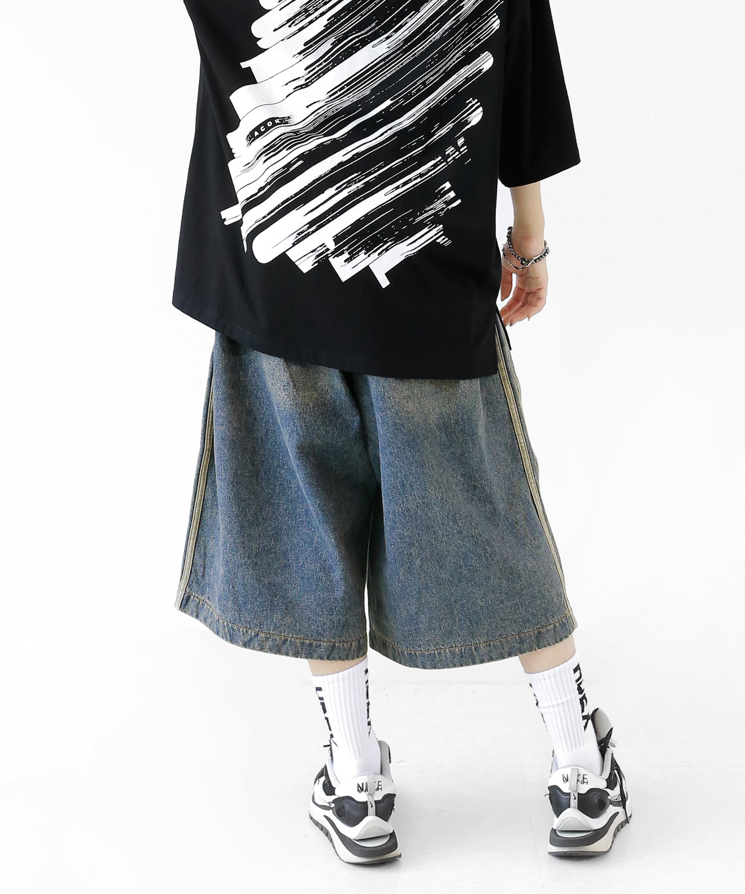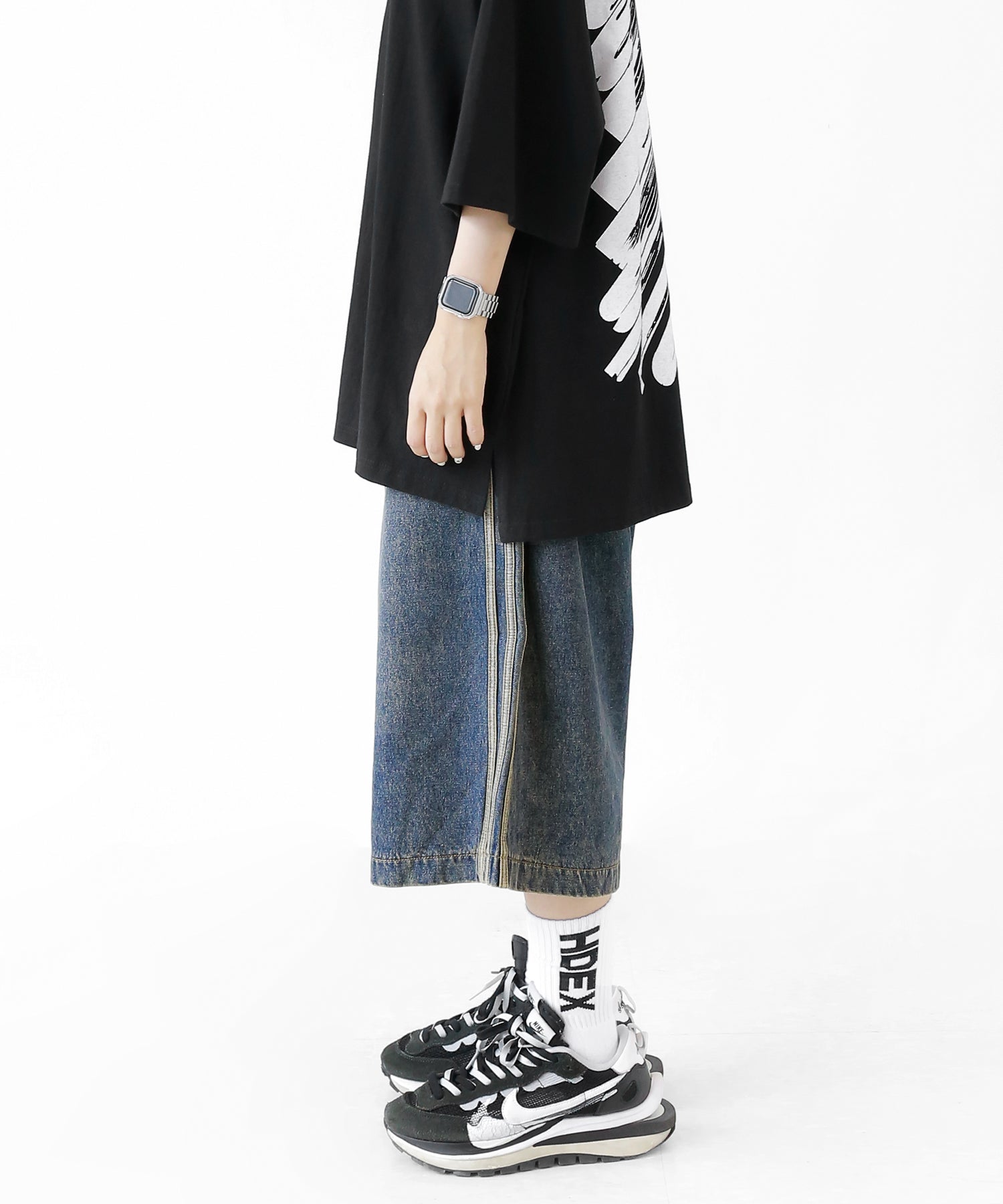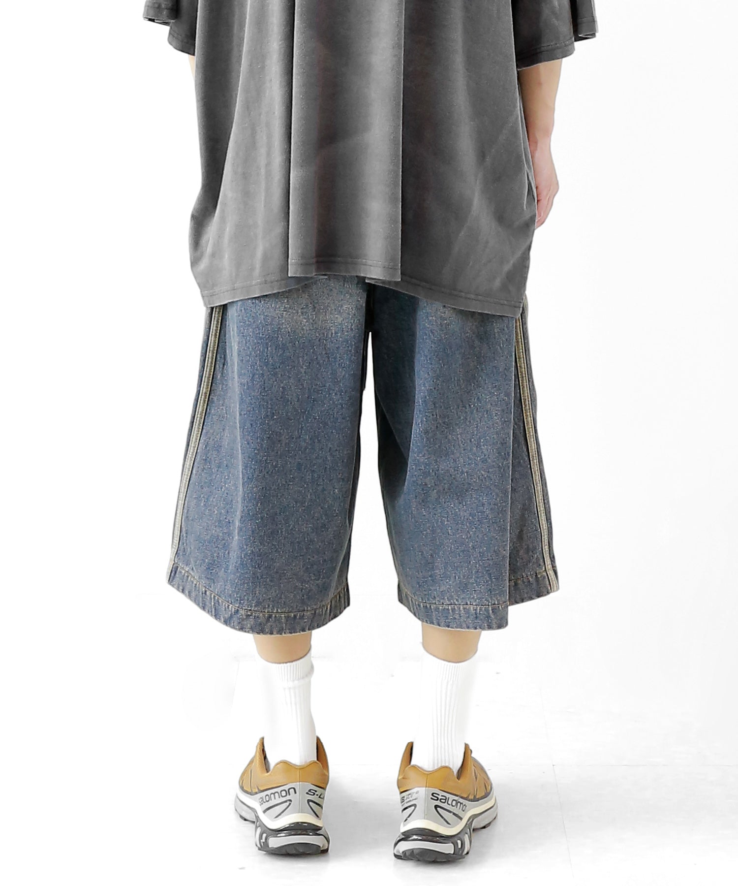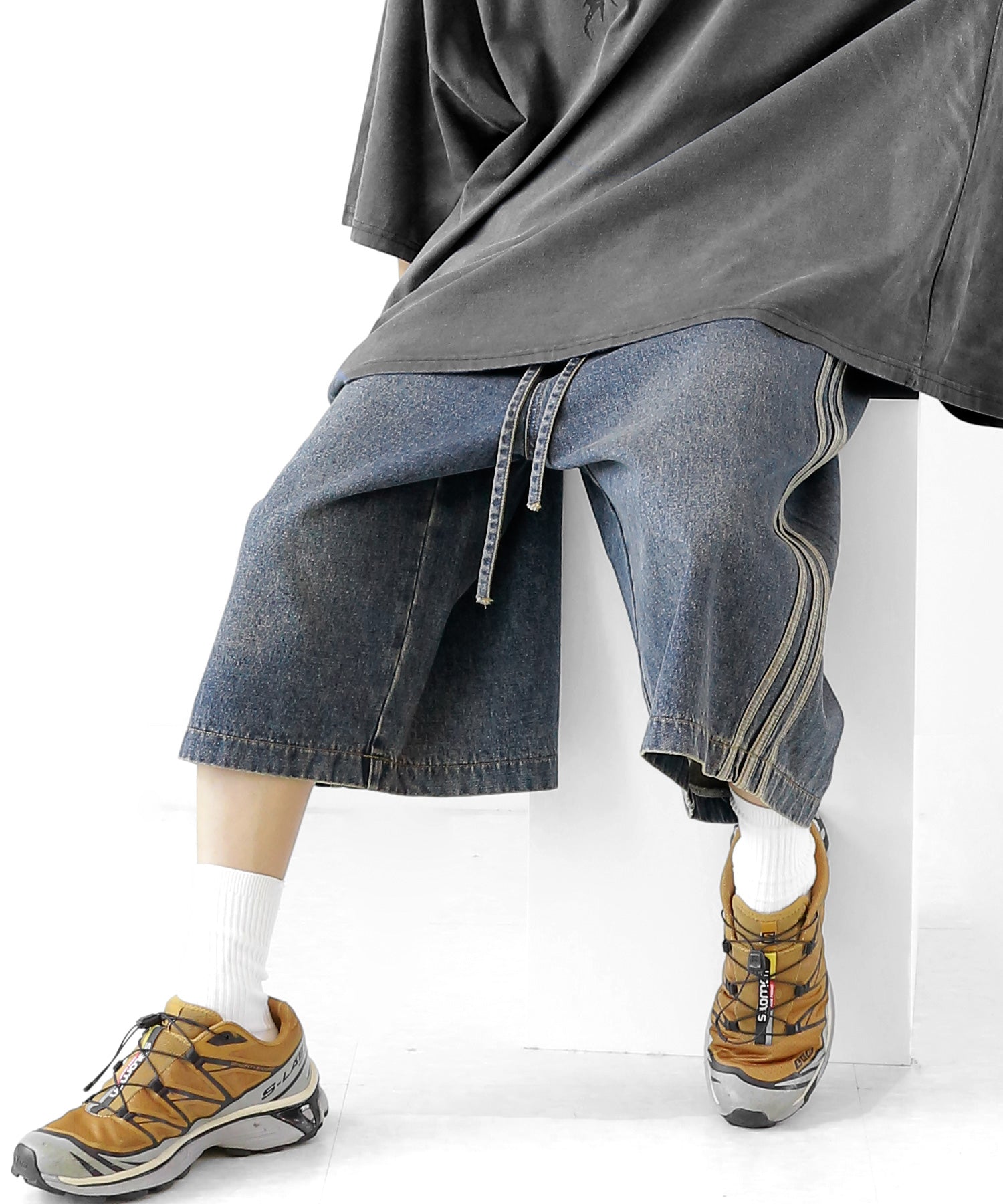 A modern denim Bermuda short featuring side stripe accents and a perfectly washed finish. Designed for both street and casual looks, this standout piece combines bold style with effortless comfort.
