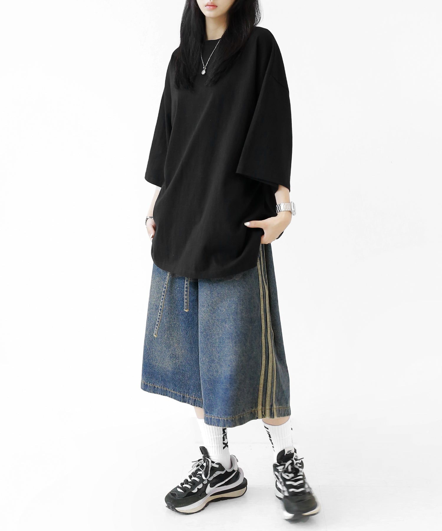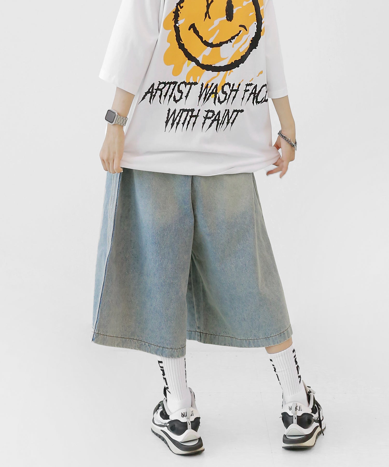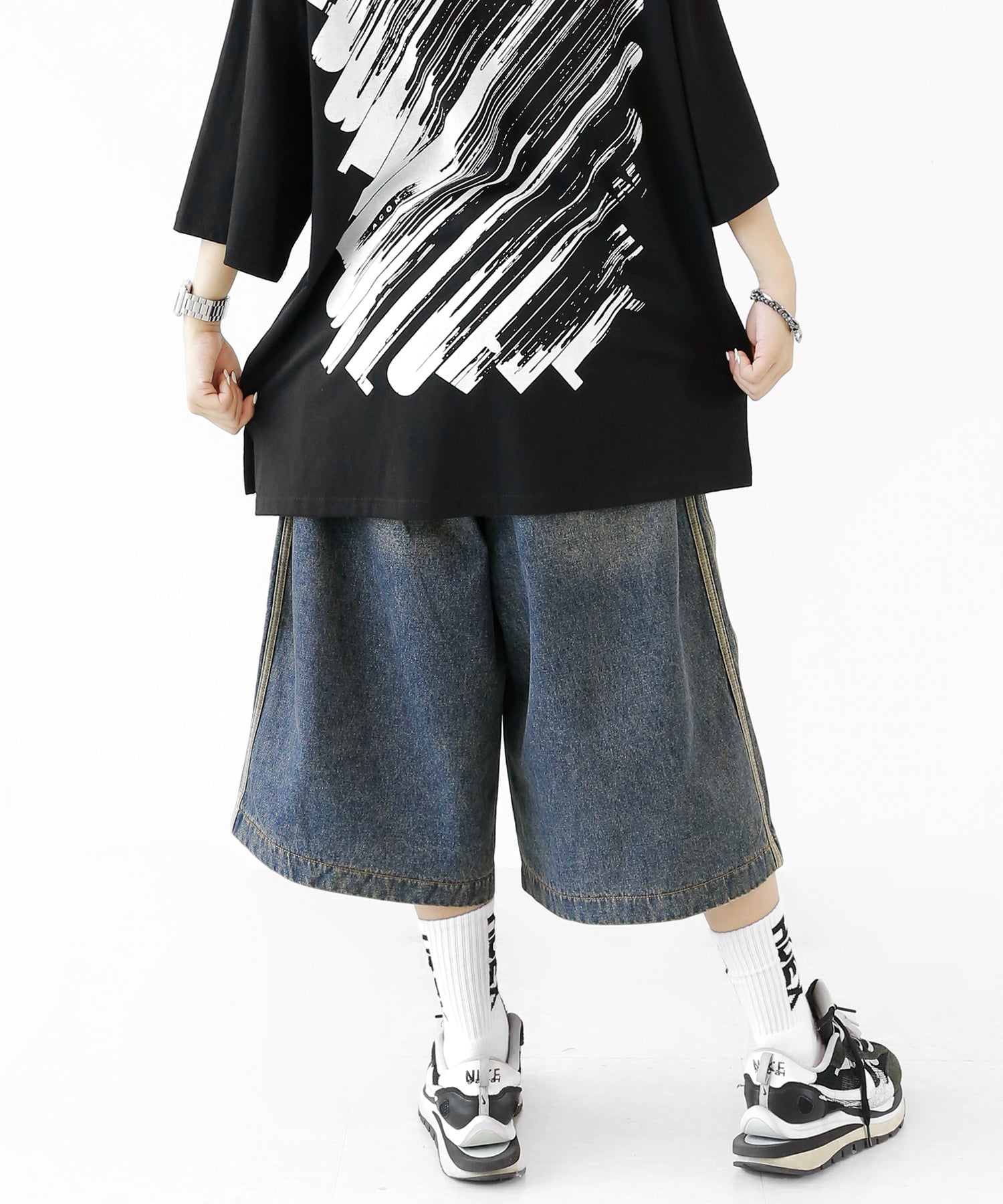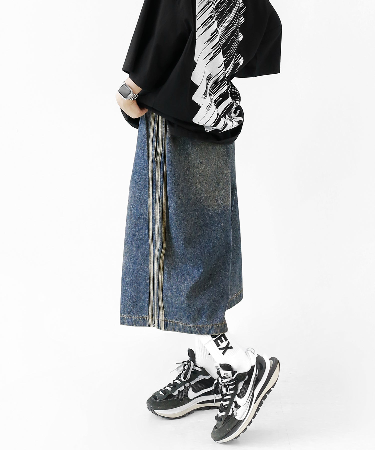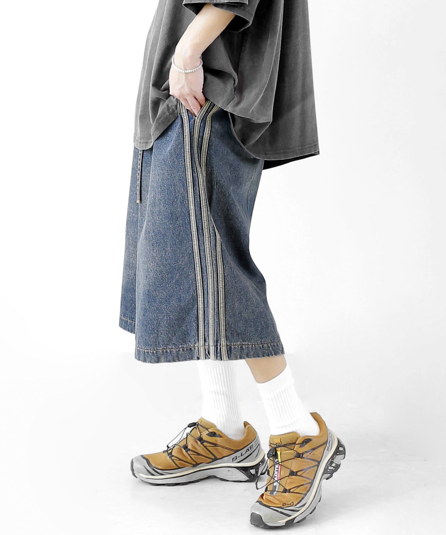 A modern denim Bermuda short featuring side stripe accents and a perfectly washed finish. Designed for both street and casual looks, this standout piece combines bold style with effortless comfort.