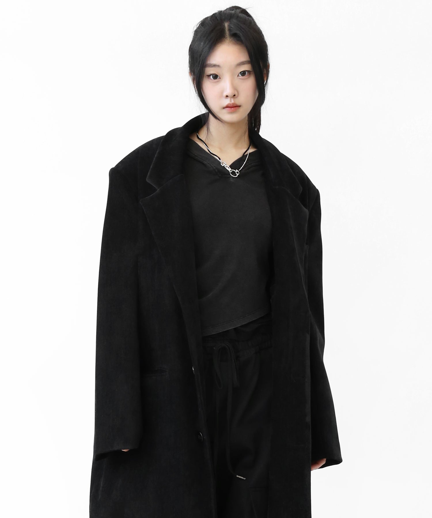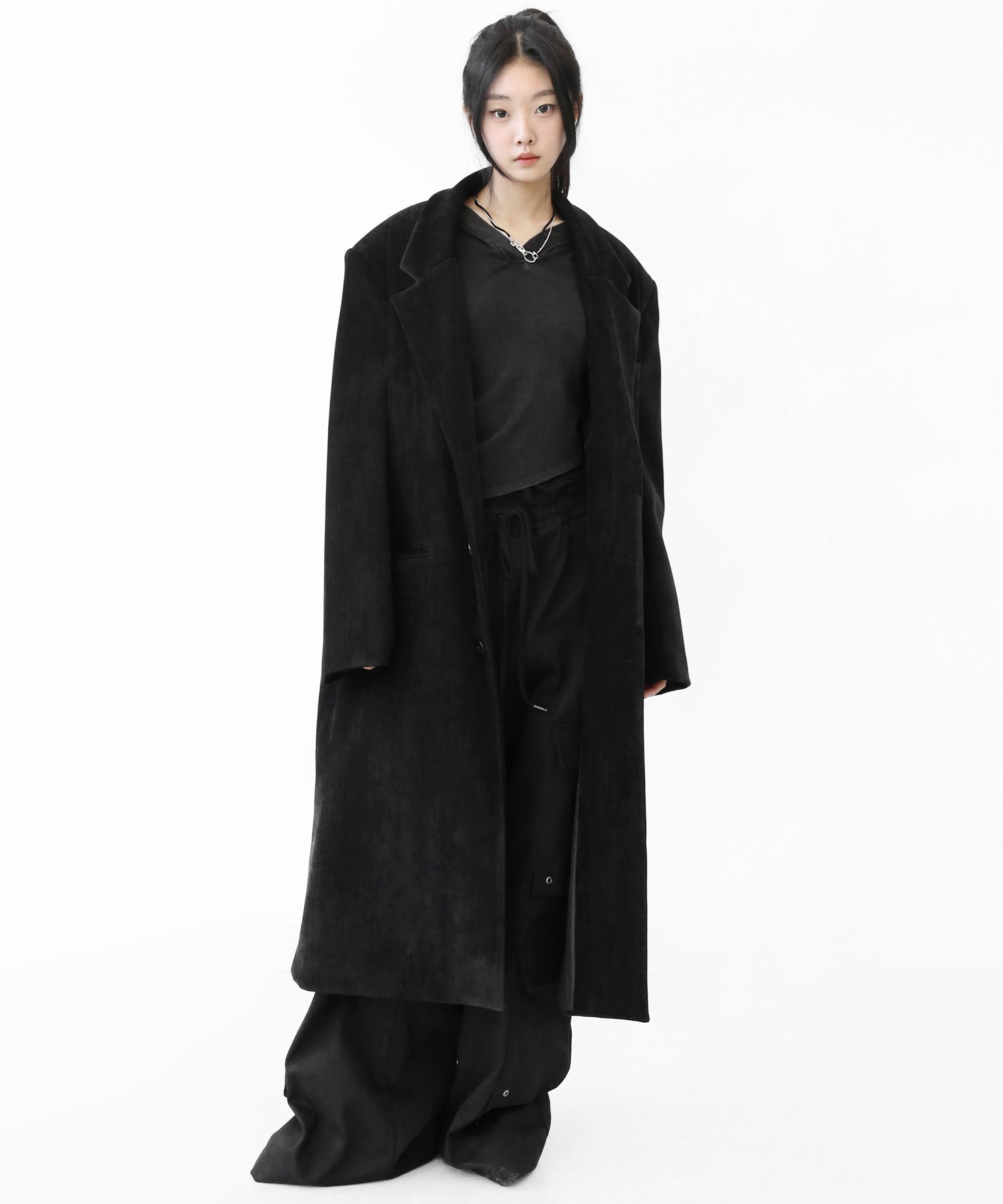 Velvet Collar Long Coat