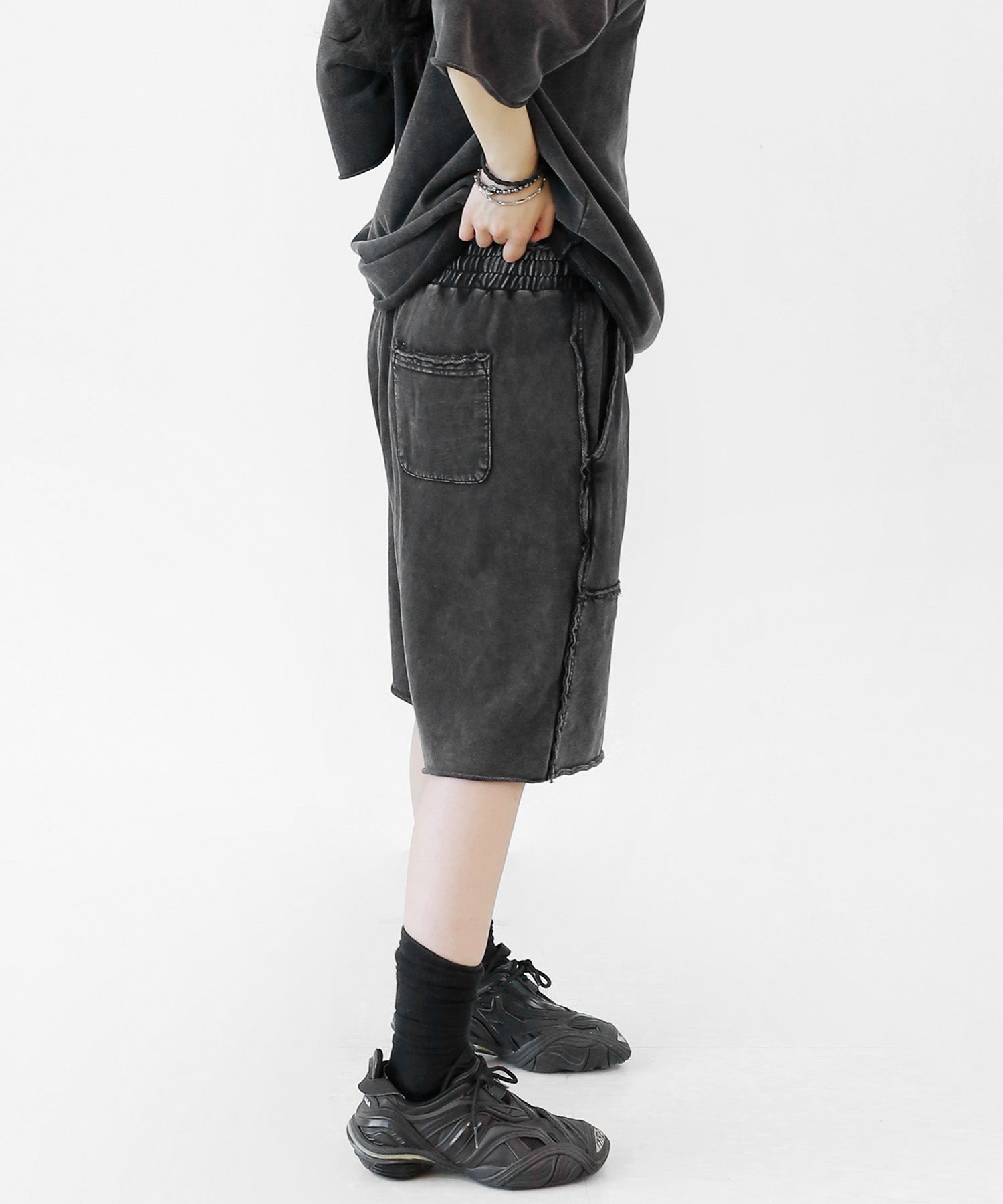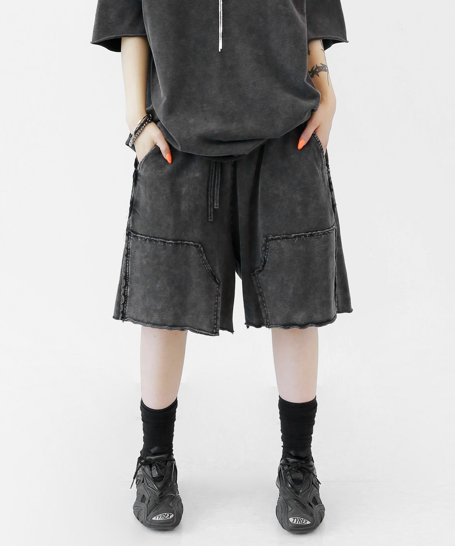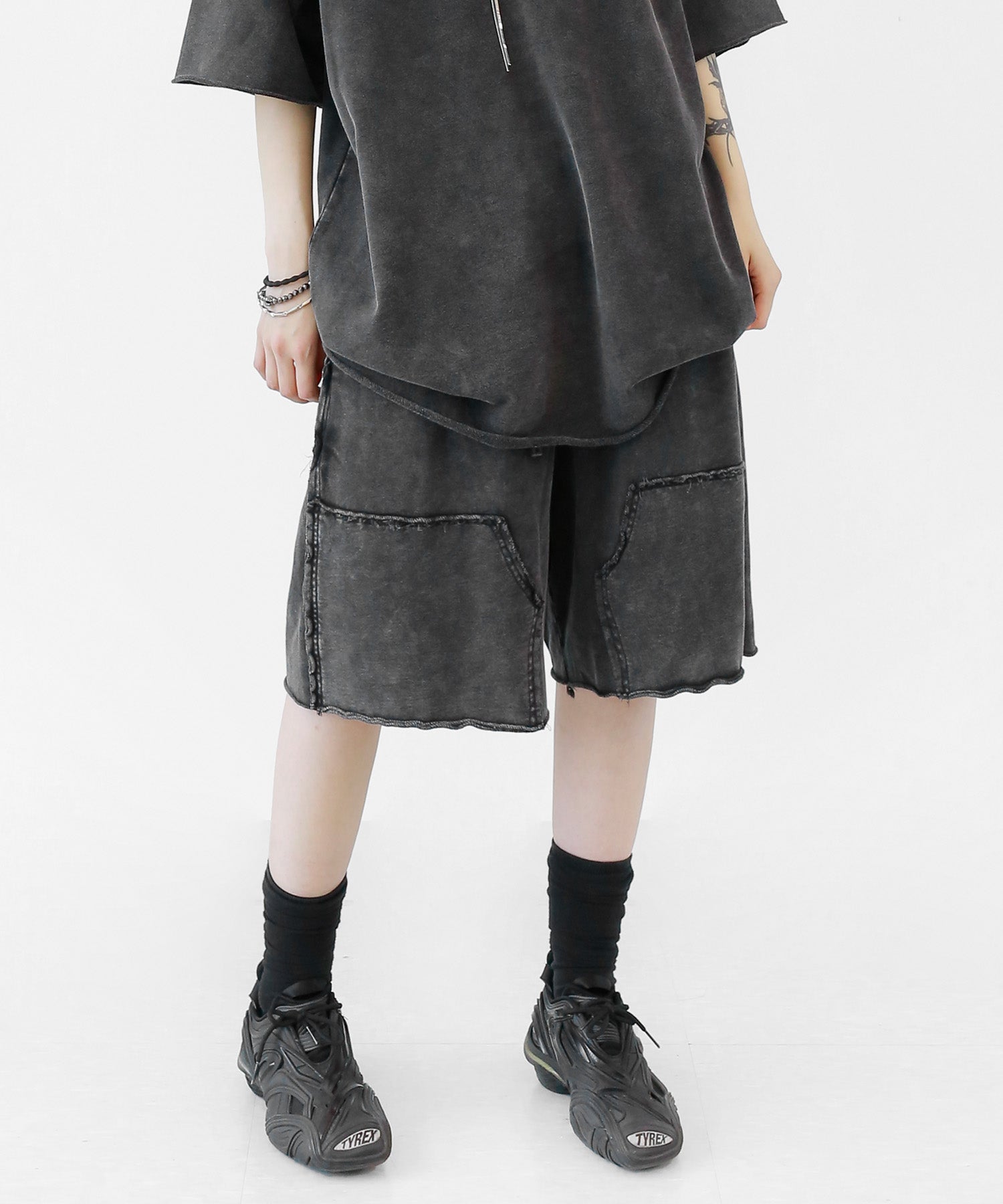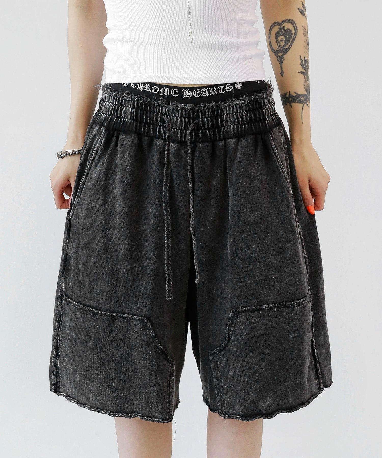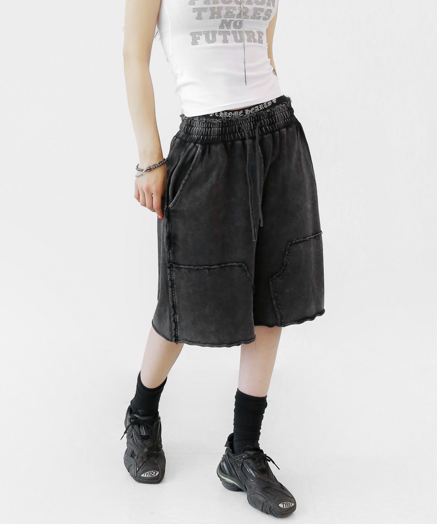 Stay cool and bold in these pigment-washed shorts.Featuring a distressed waistband, vintage fade, and easy elastic waist, they’re perfect for styling solo or as a matching set. Laid-back comfort with street-ready edge.