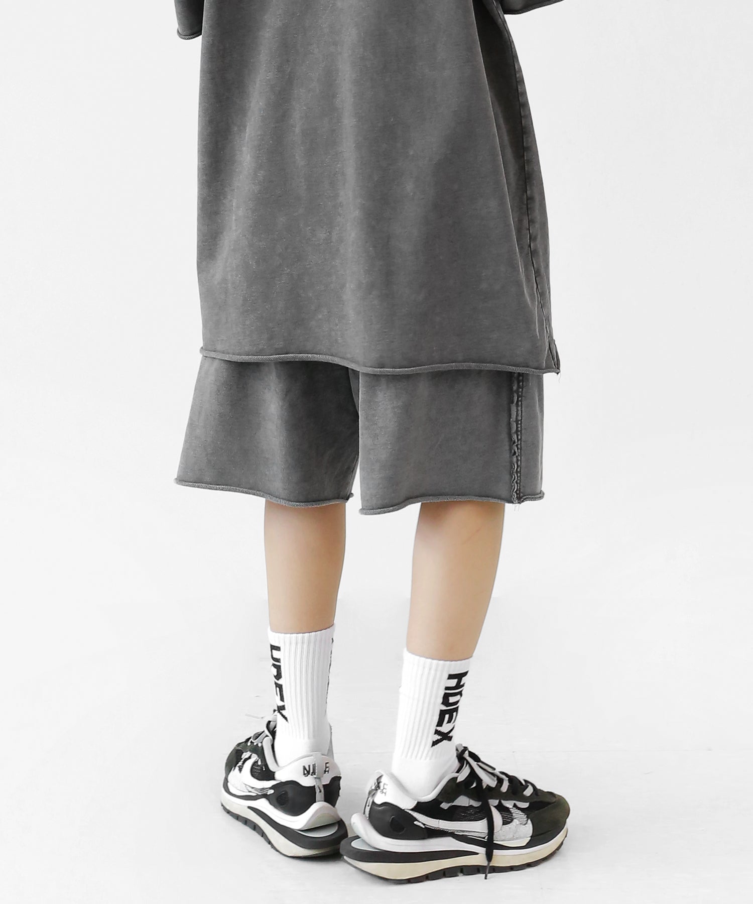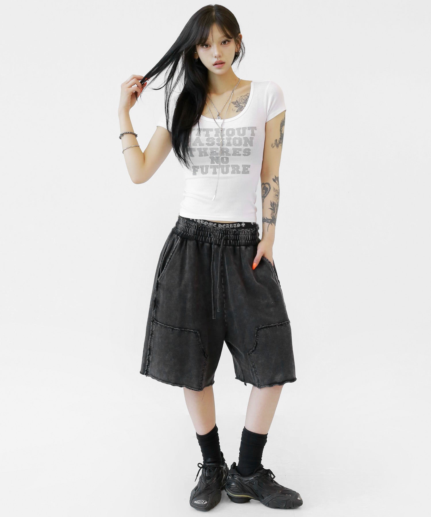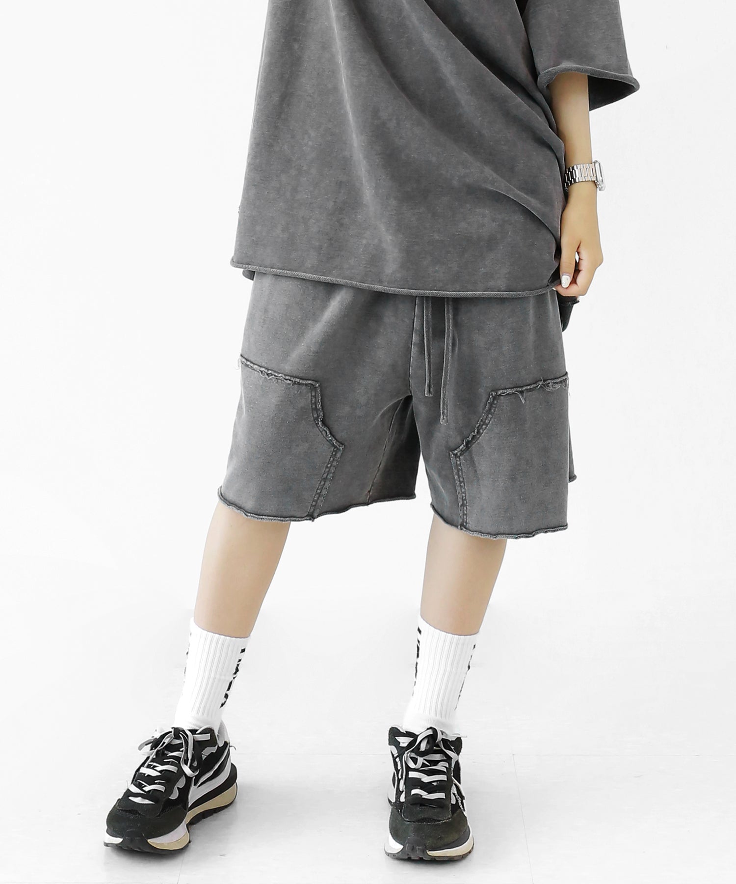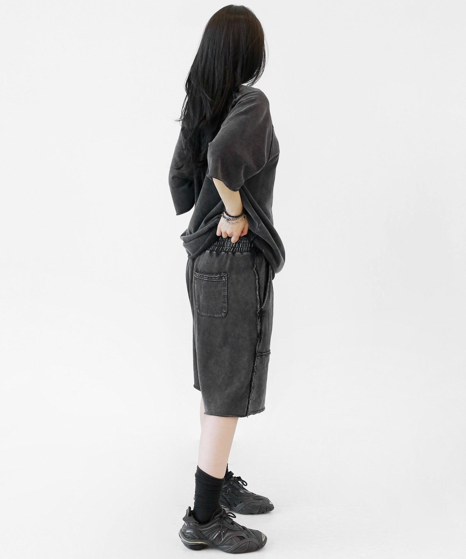 Stay cool and bold in these pigment-washed shorts.Featuring a distressed waistband, vintage fade, and easy elastic waist, they’re perfect for styling solo or as a matching set. Laid-back comfort with street-ready edge.