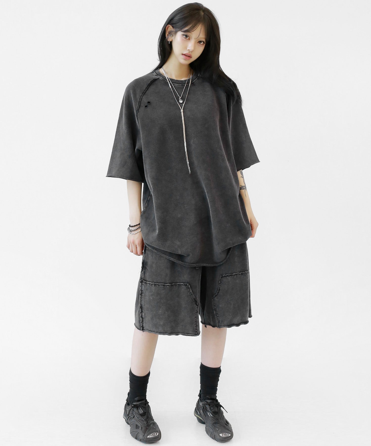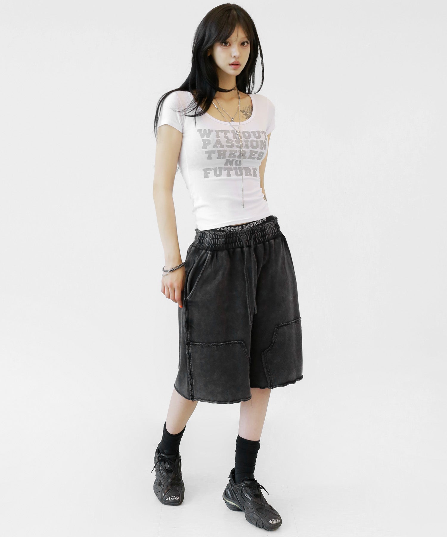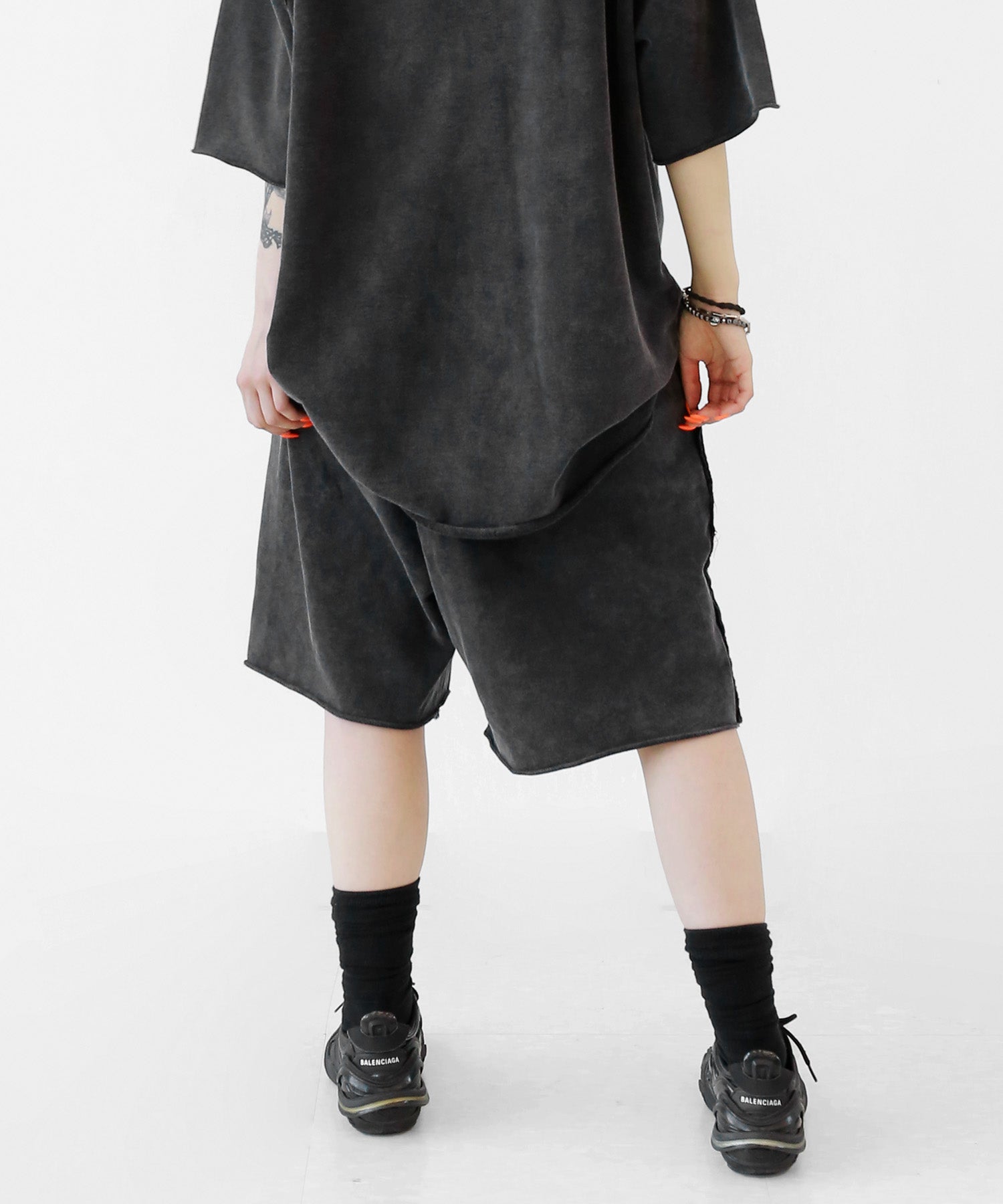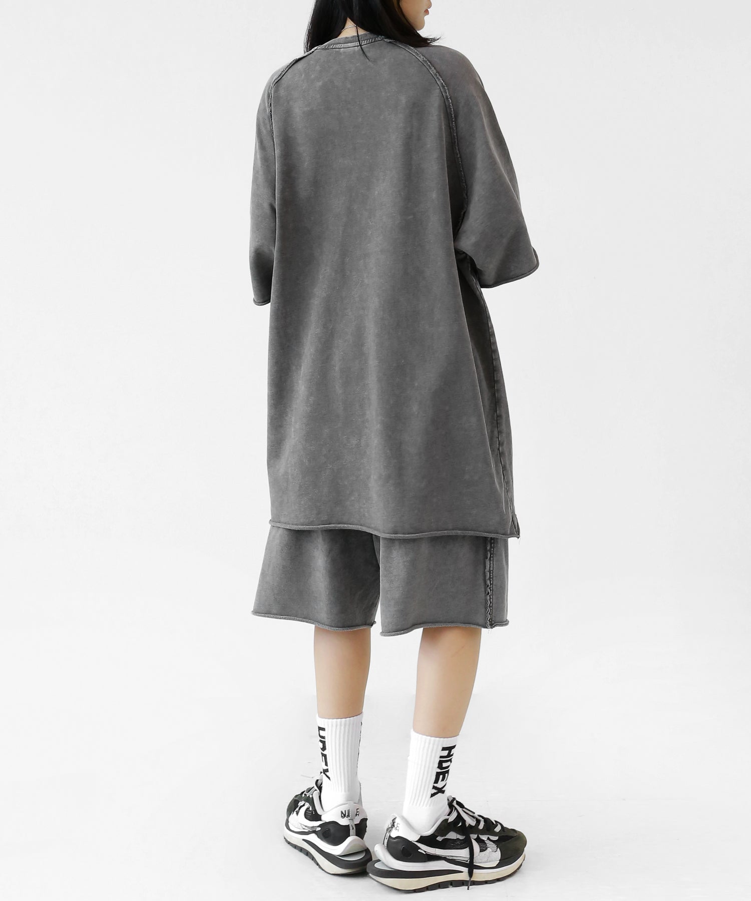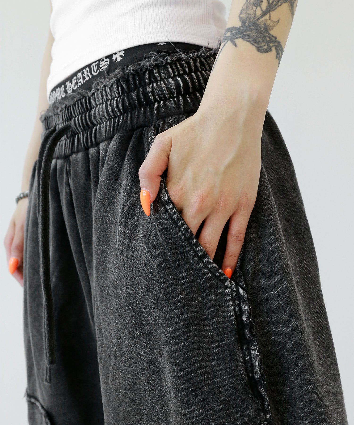 Stay cool and bold in these pigment-washed shorts.Featuring a distressed waistband, vintage fade, and easy elastic waist, they’re perfect for styling solo or as a matching set. Laid-back comfort with street-ready edge.