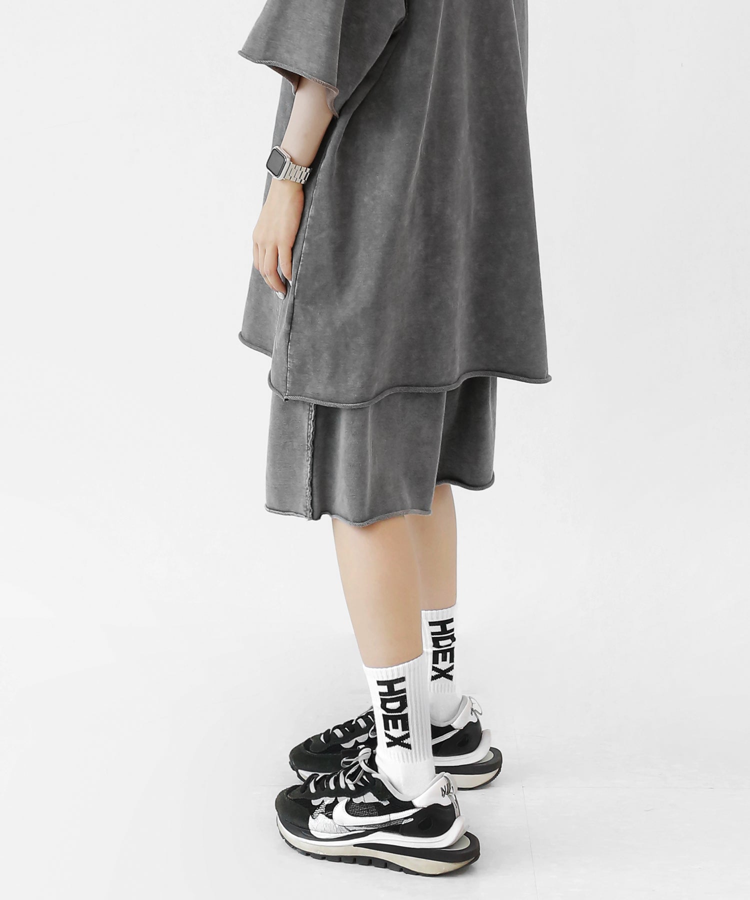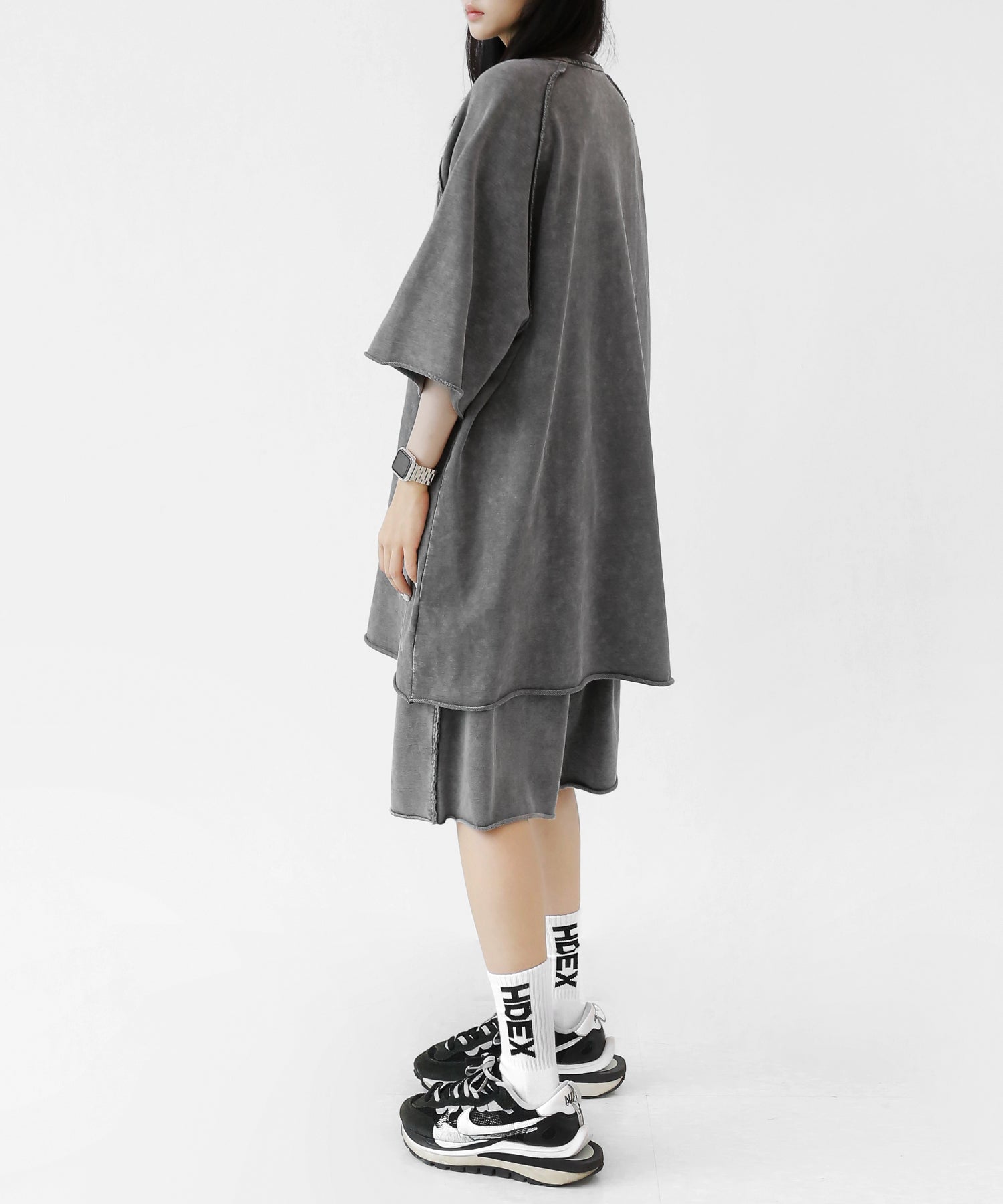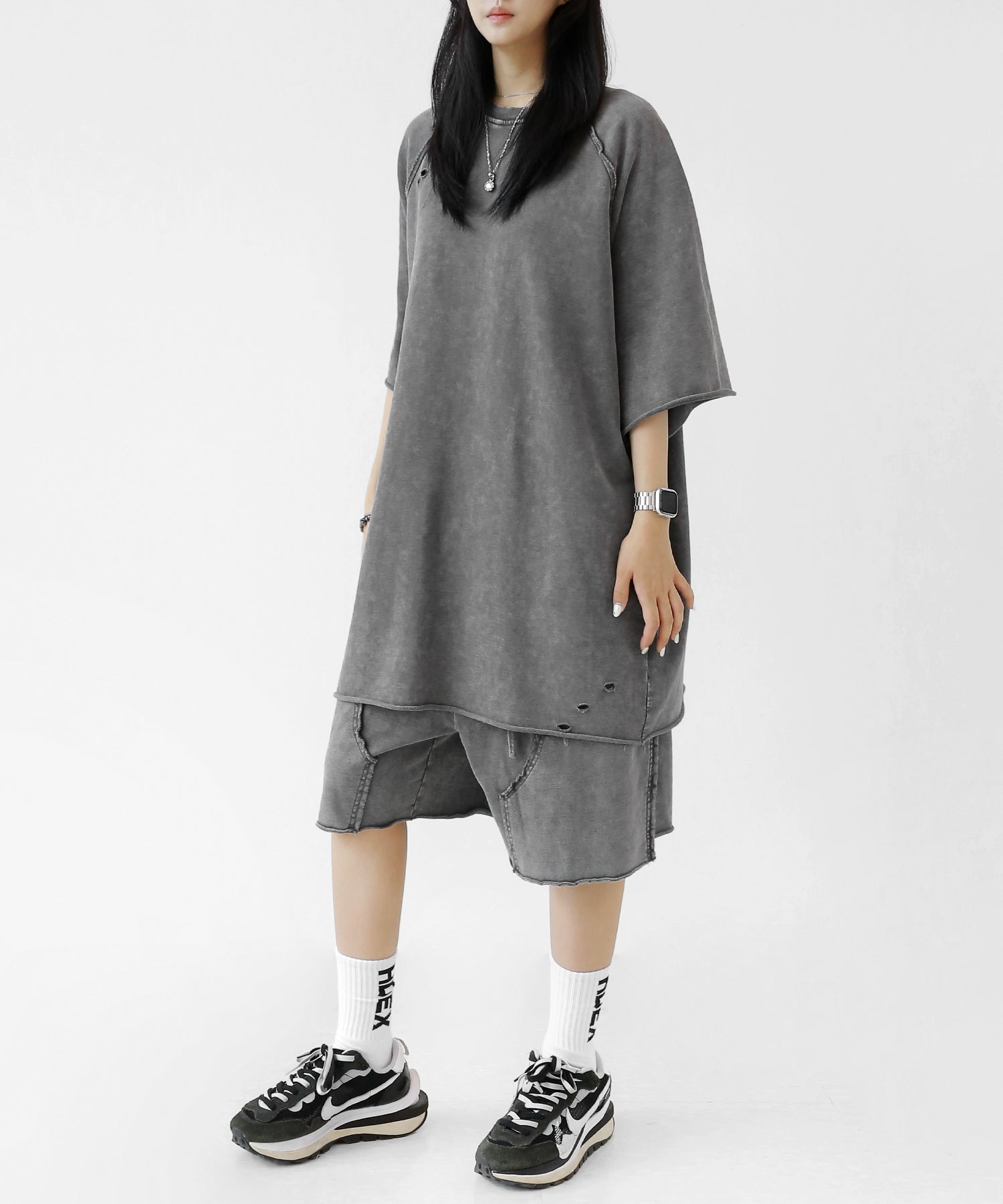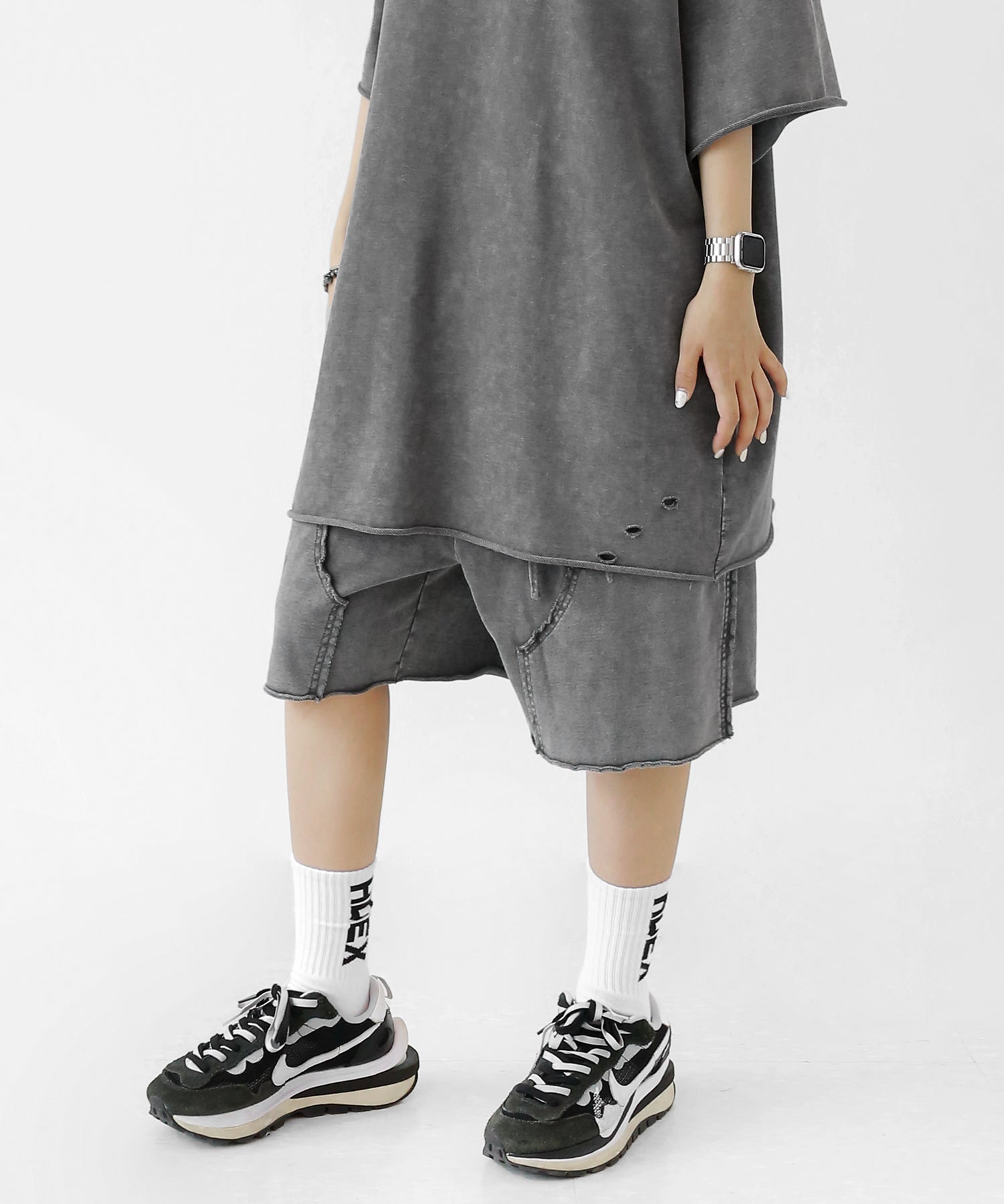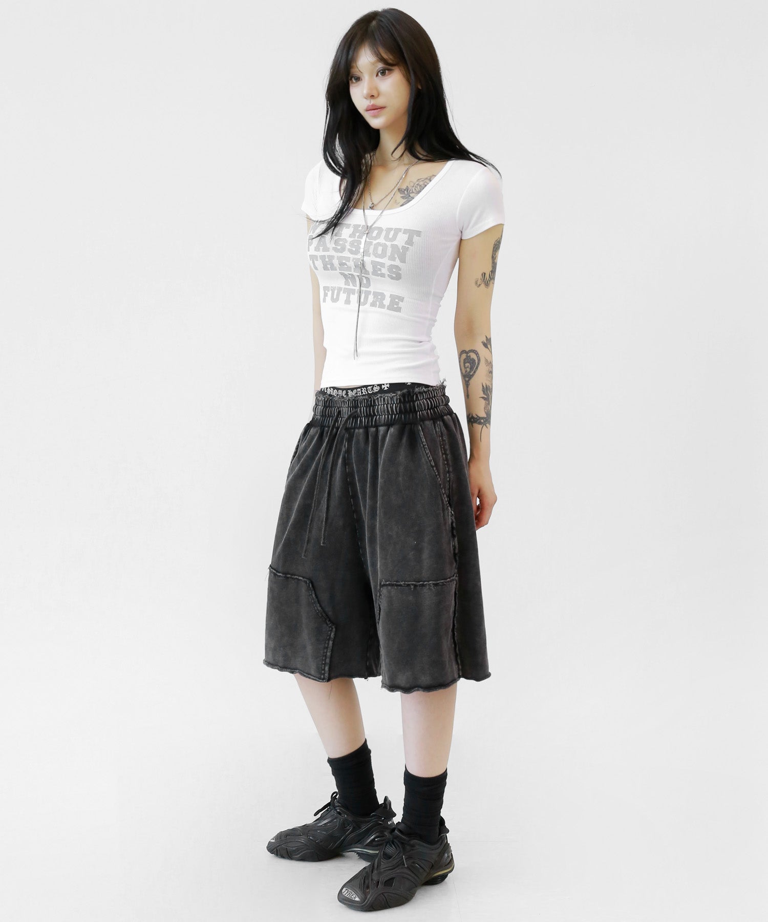 Stay cool and bold in these pigment-washed shorts.Featuring a distressed waistband, vintage fade, and easy elastic waist, they’re perfect for styling solo or as a matching set. Laid-back comfort with street-ready edge.