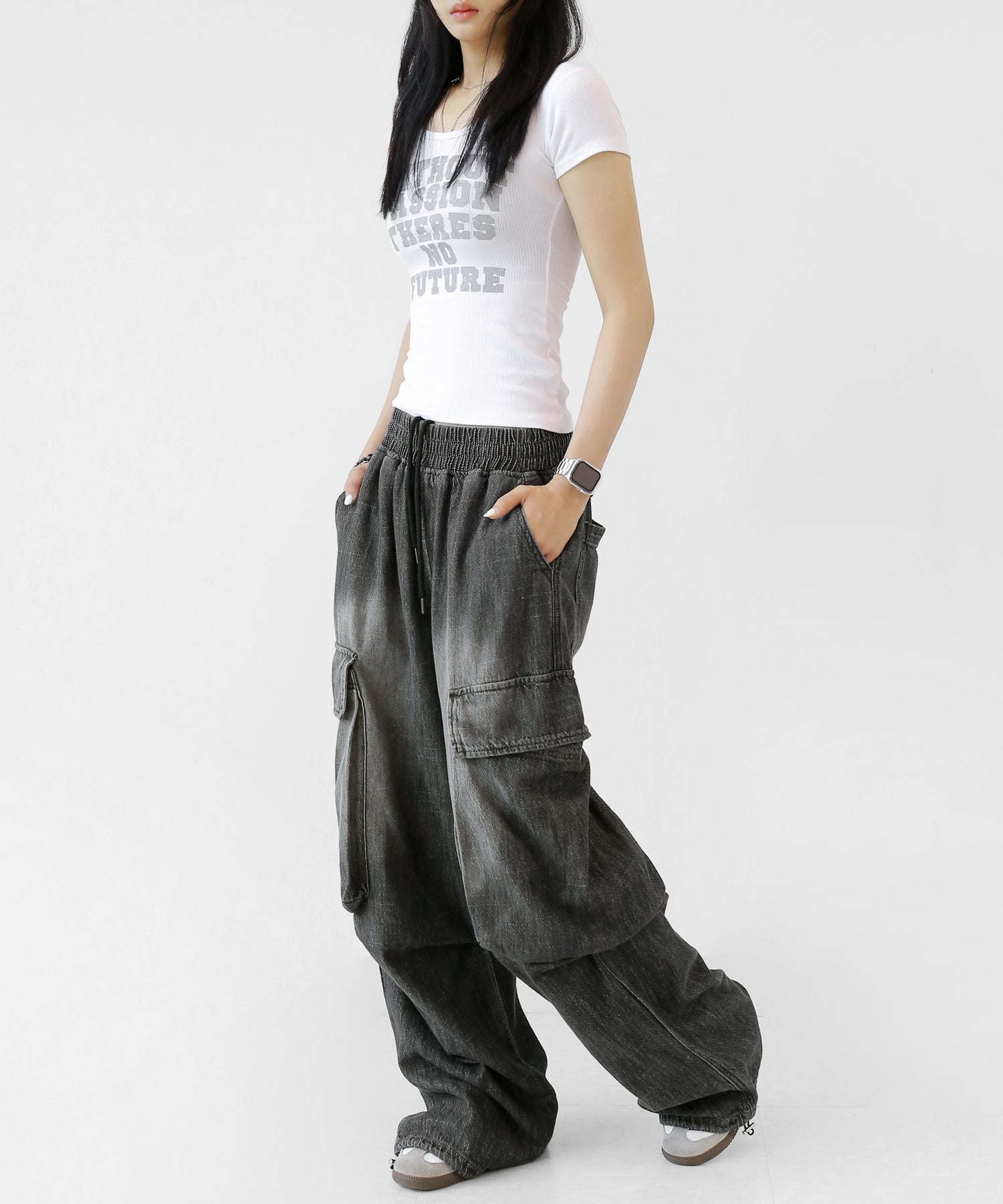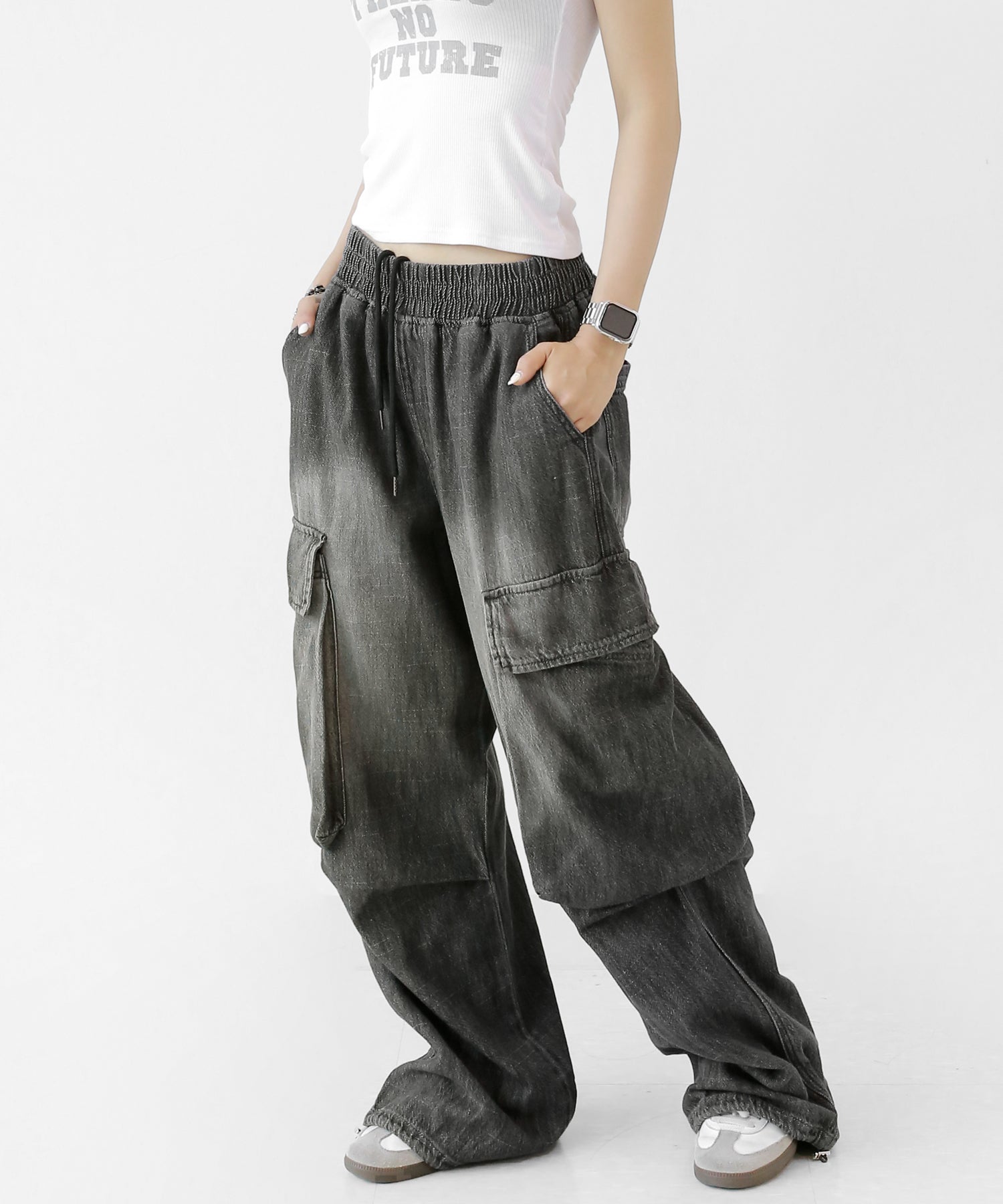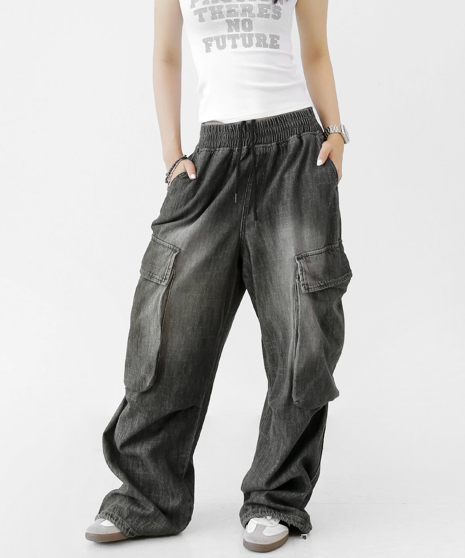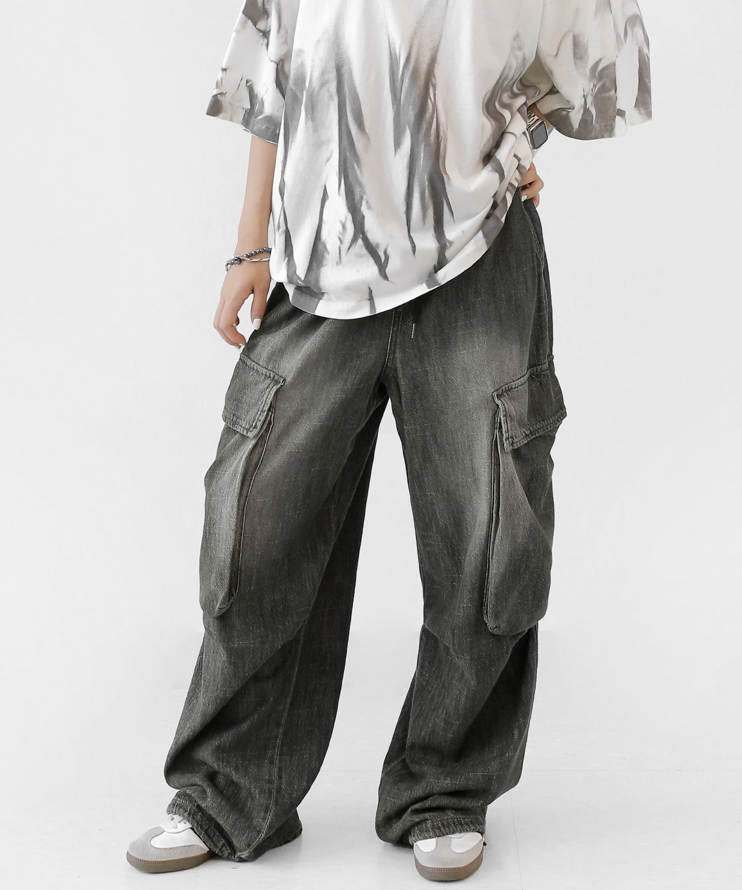 These washed balloon denim pants combine a voluminous silhouette with adjustable drawstring hems, letting you shift your vibe from loose to tapered in seconds. The subtle wash and airy structure make them a seasonal standout for both casual and streetwear looks.