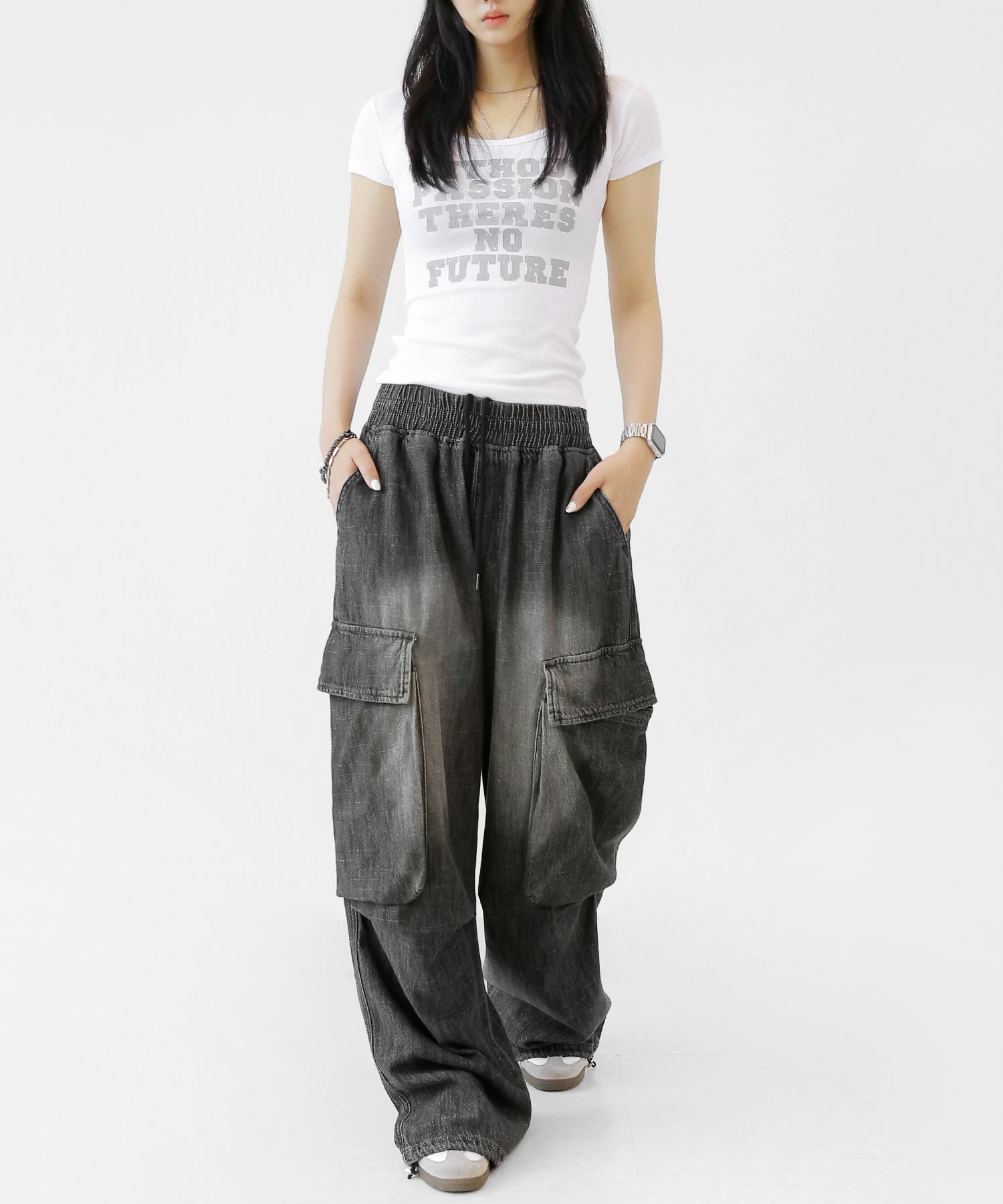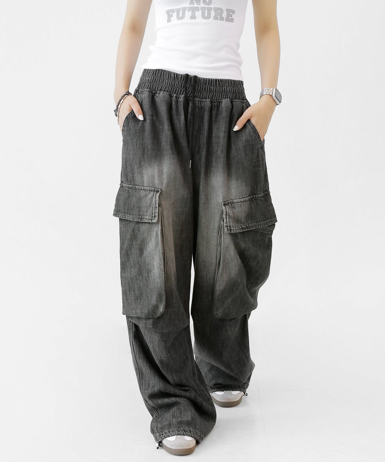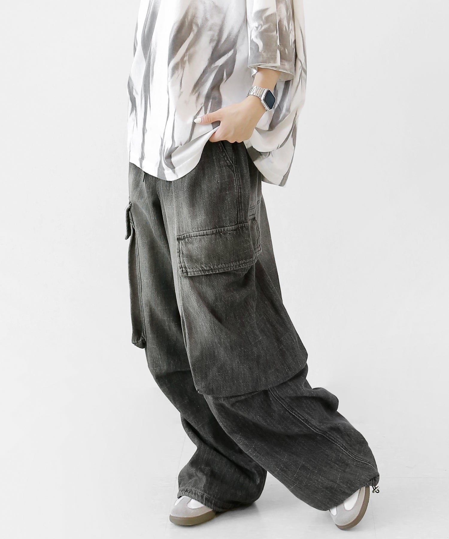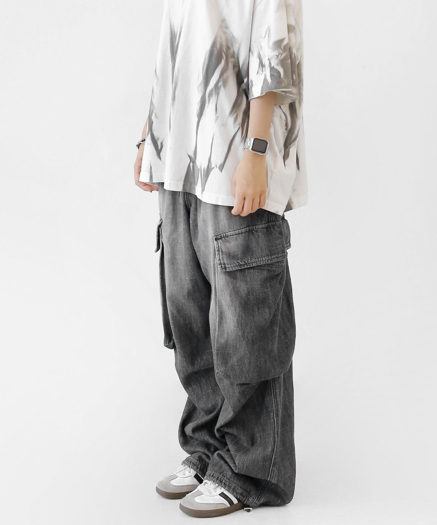 These washed balloon denim pants combine a voluminous silhouette with adjustable drawstring hems, letting you shift your vibe from loose to tapered in seconds. The subtle wash and airy structure make them a seasonal standout for both casual and streetwear looks.
