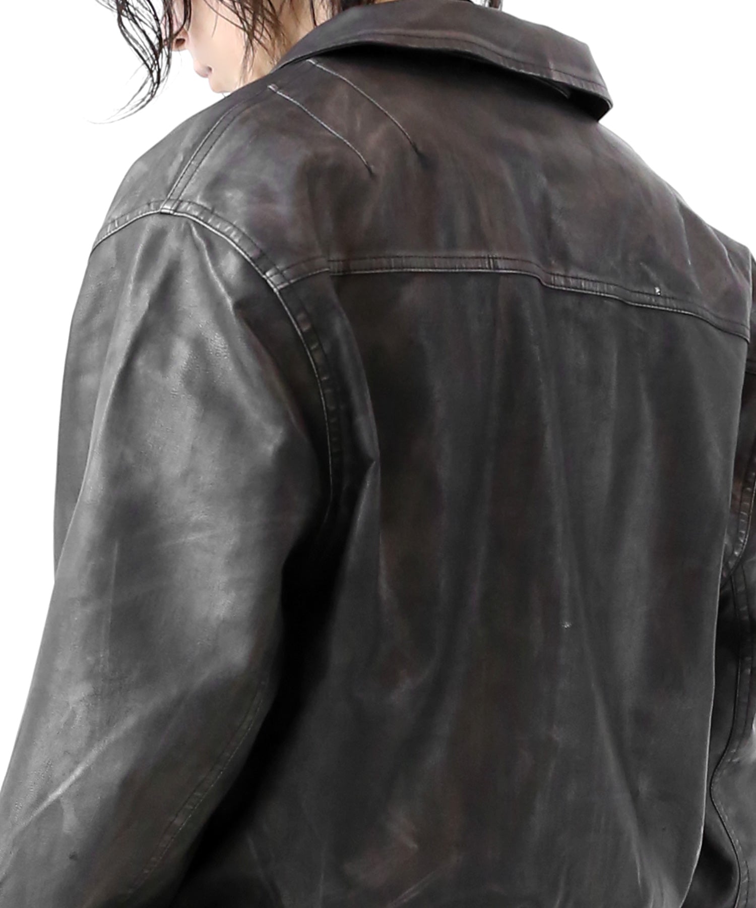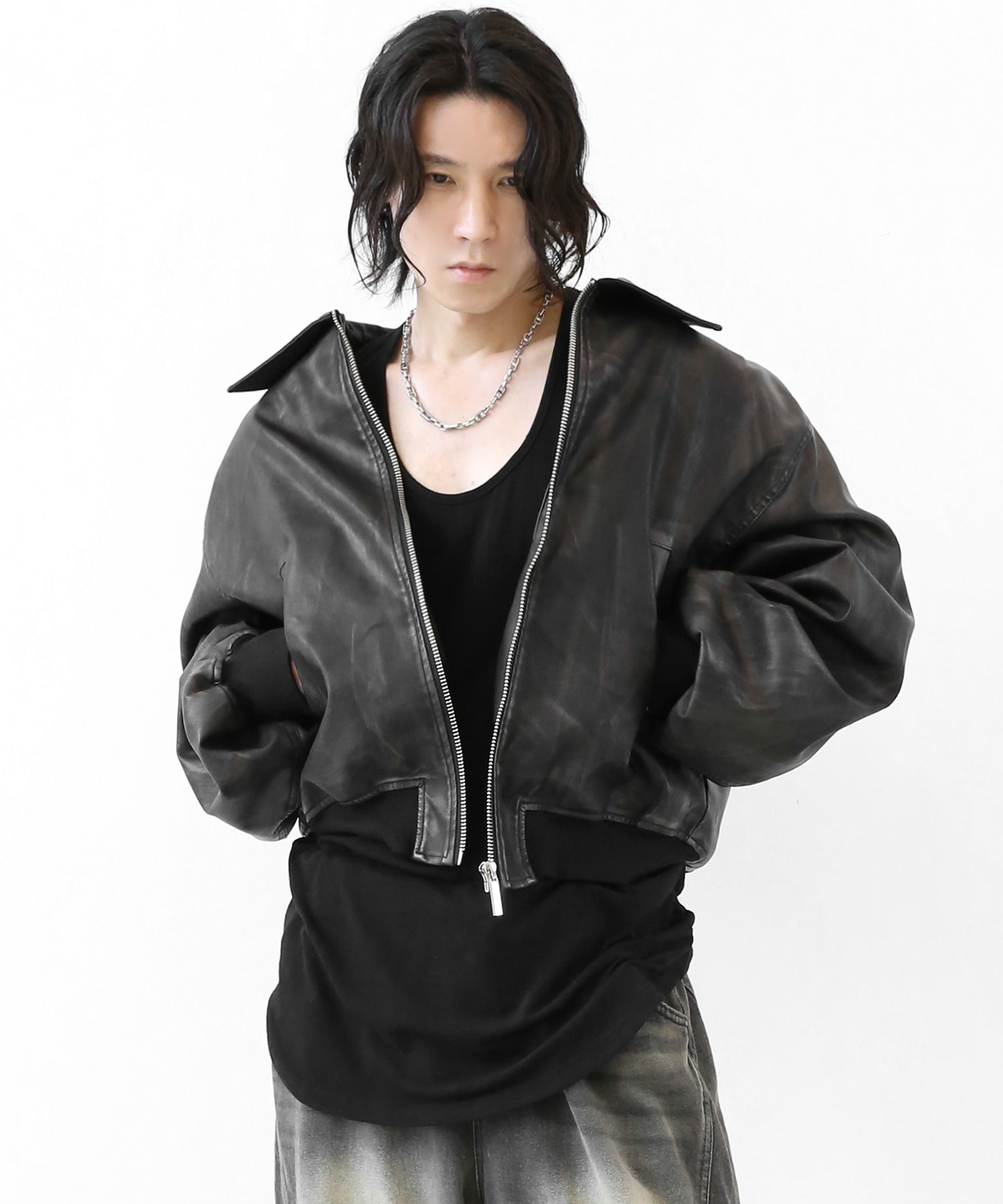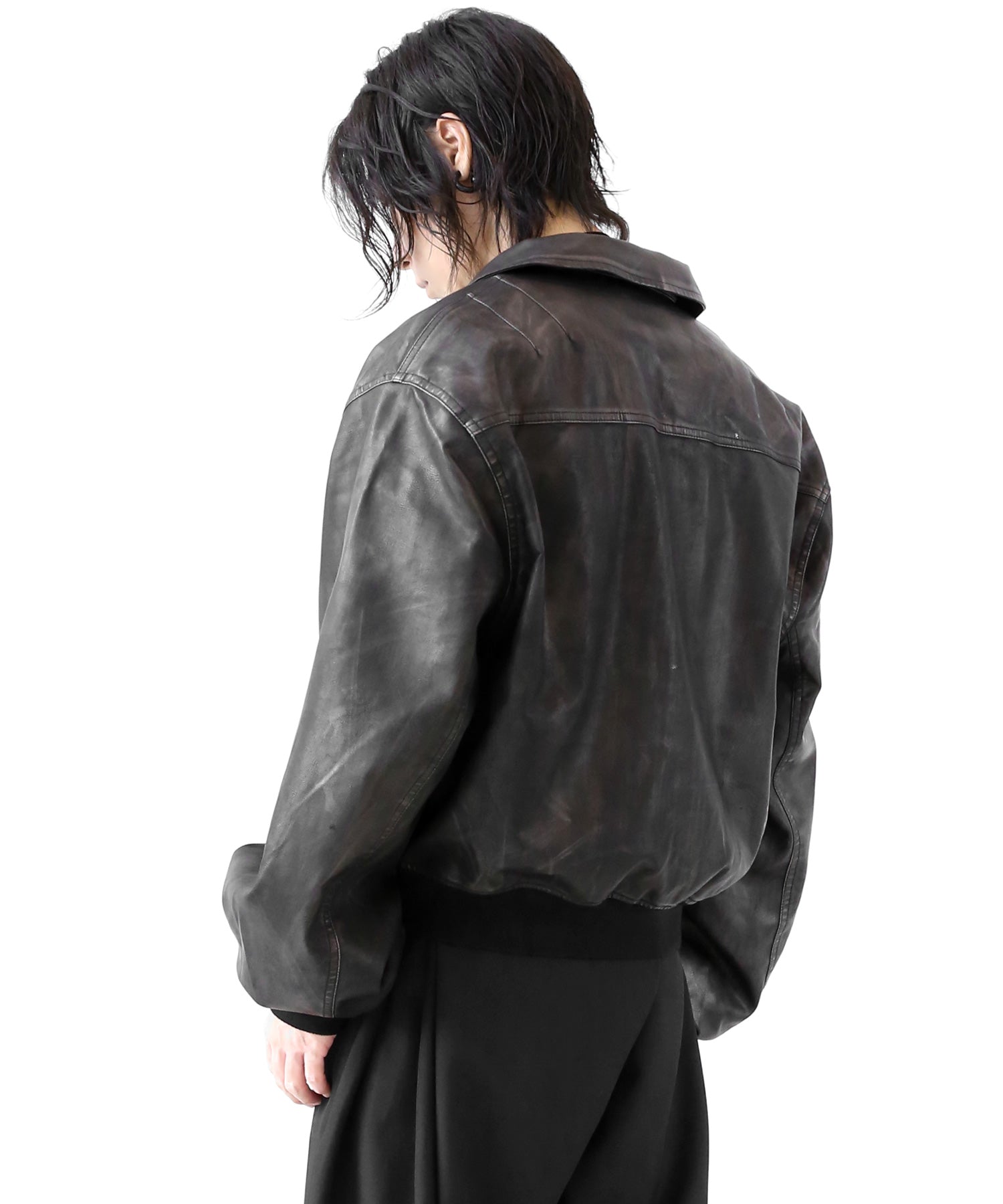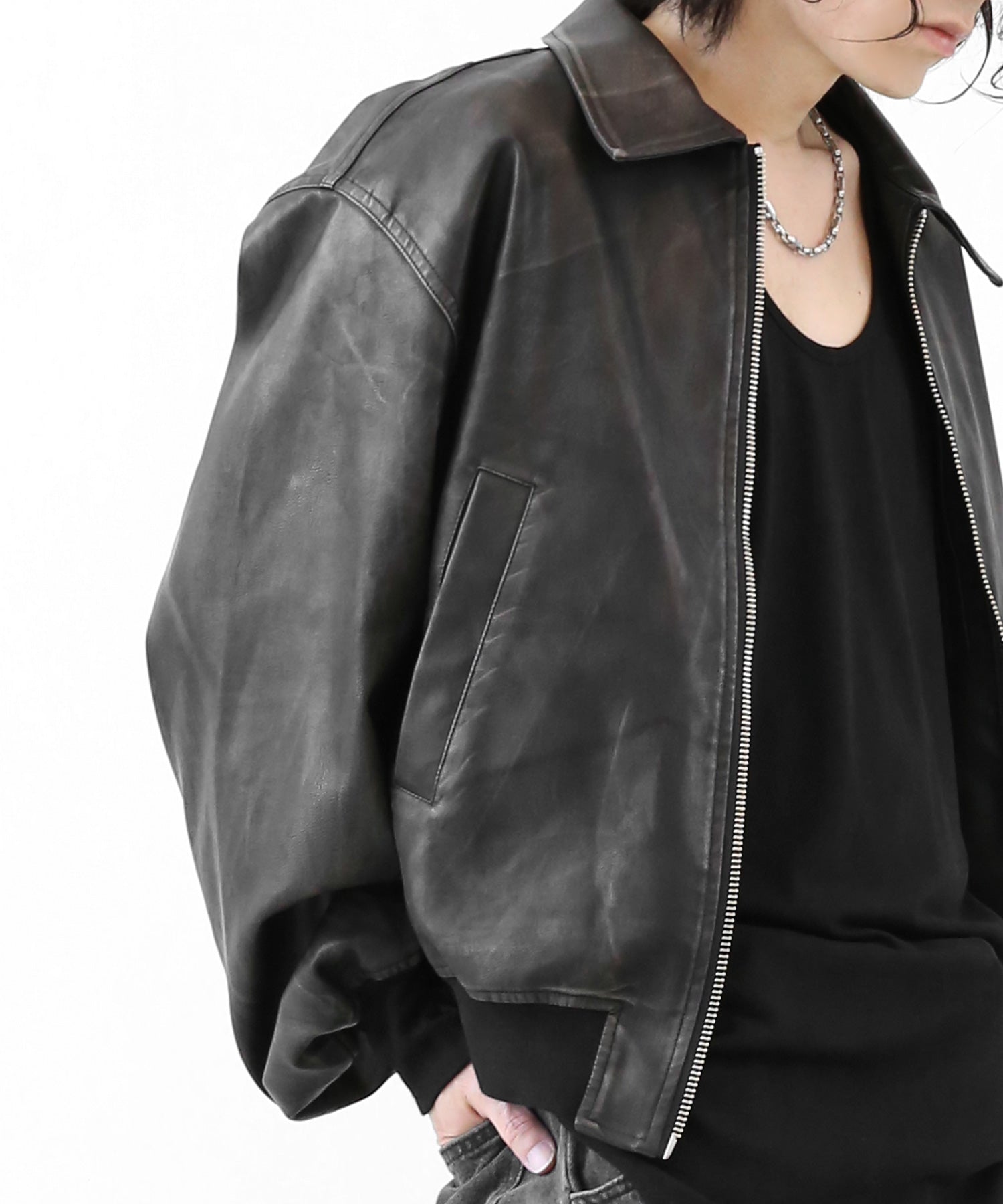 A washed faux leather blouson featuring subtle vintage texture and a compact short length.