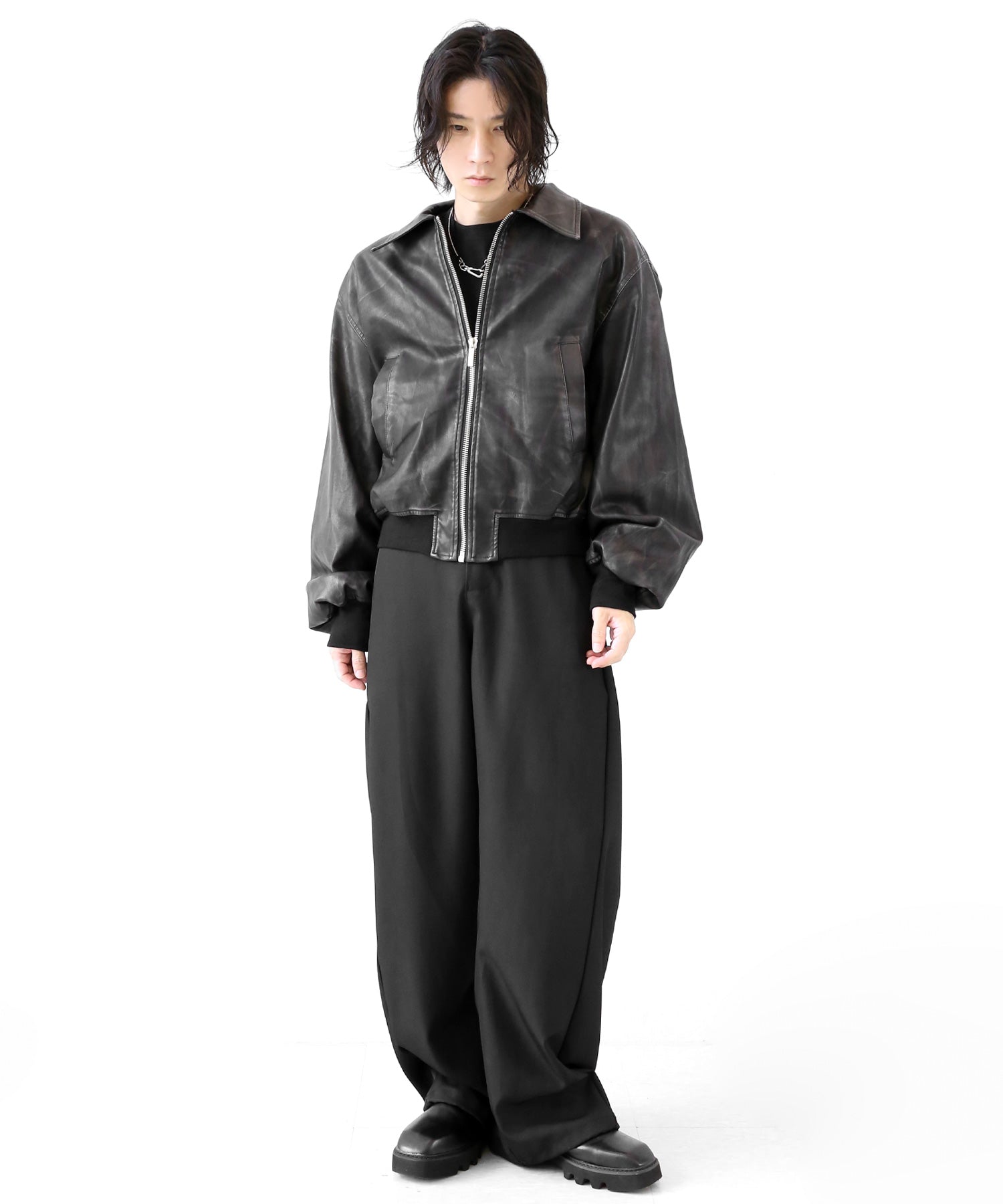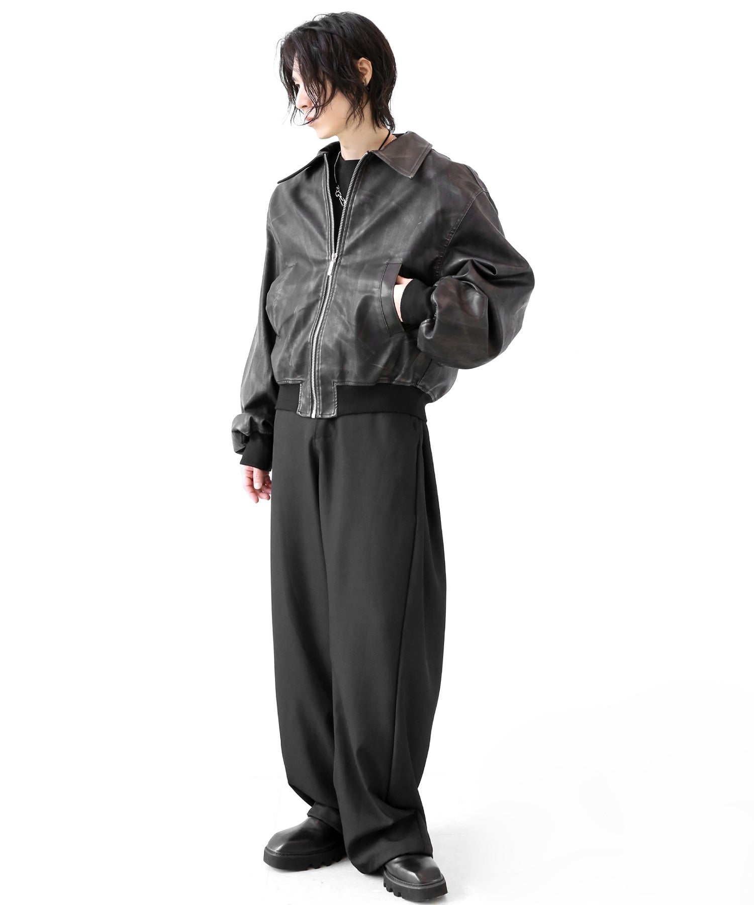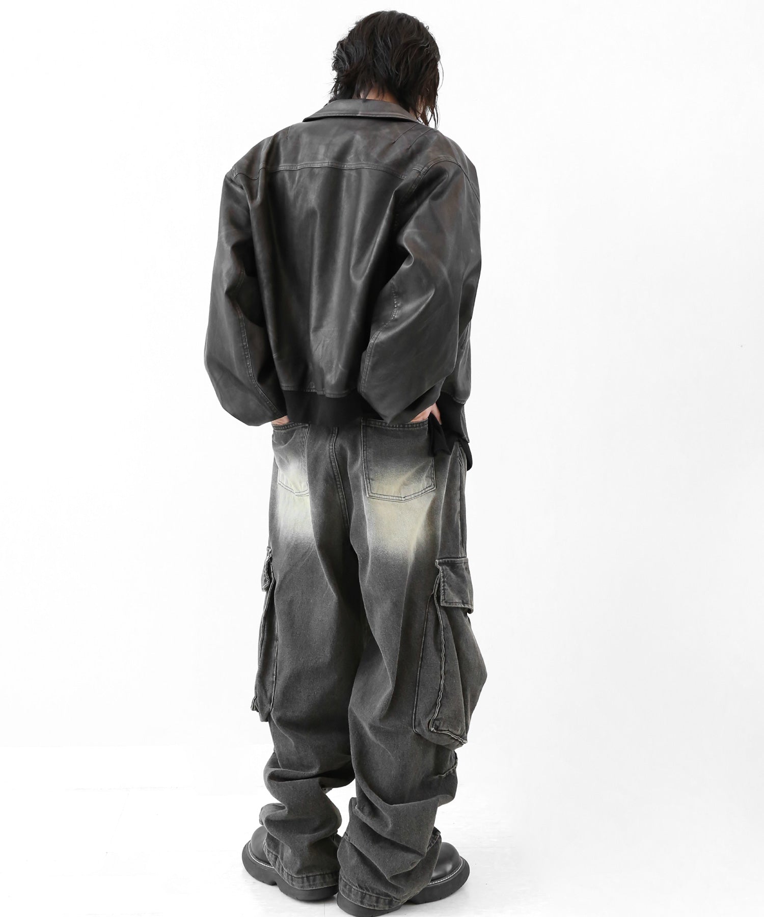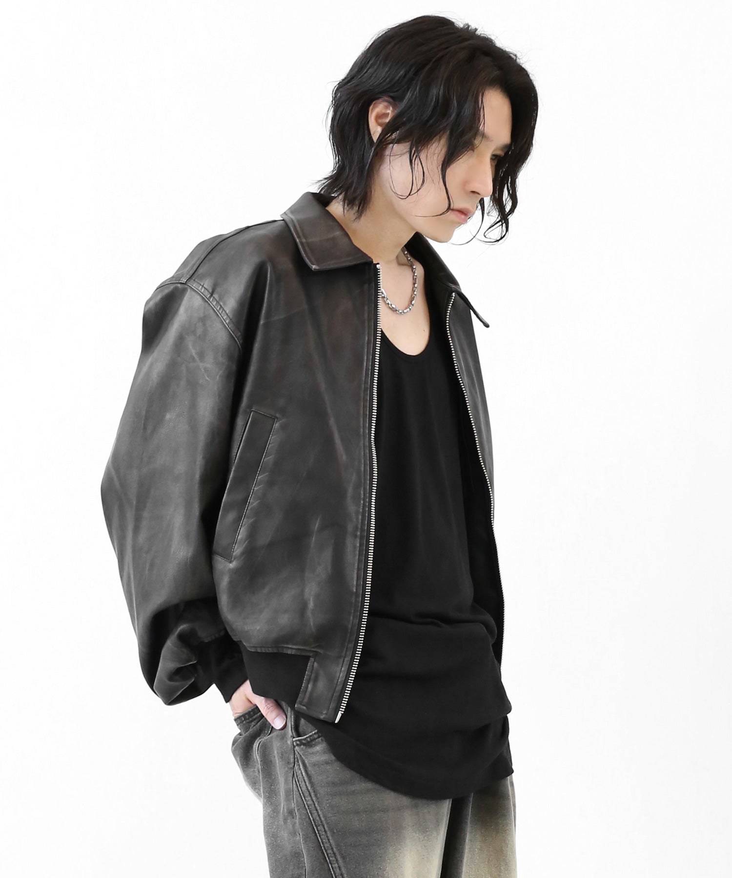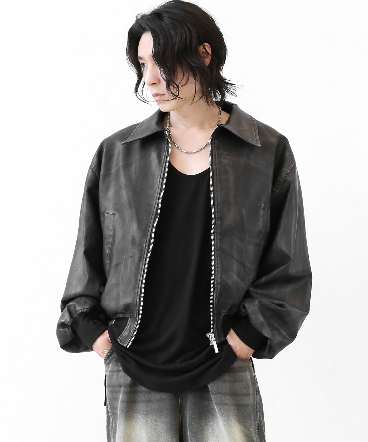 A washed faux leather blouson featuring subtle vintage texture and a compact short length.