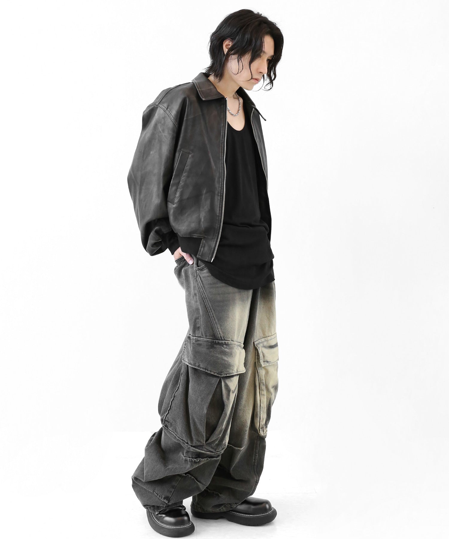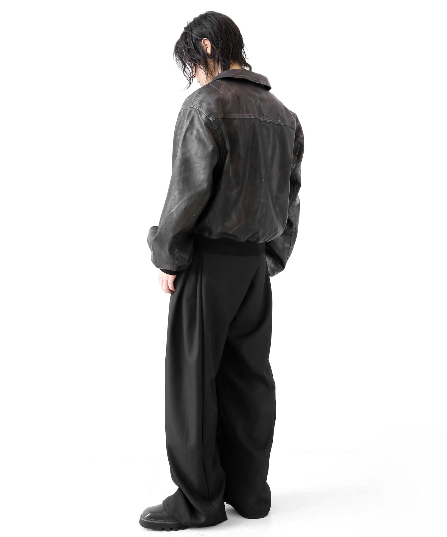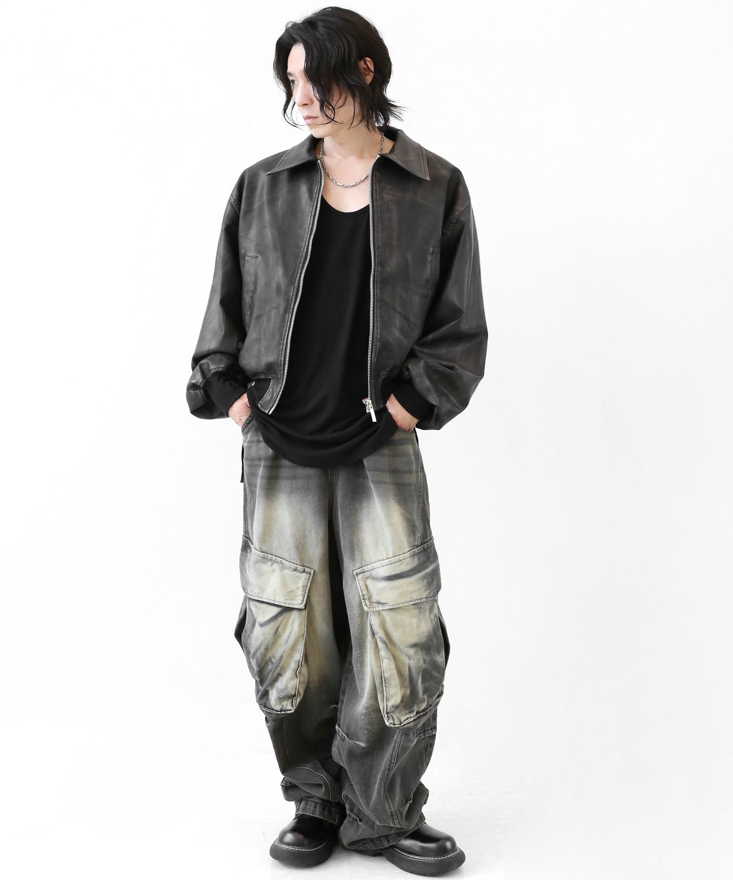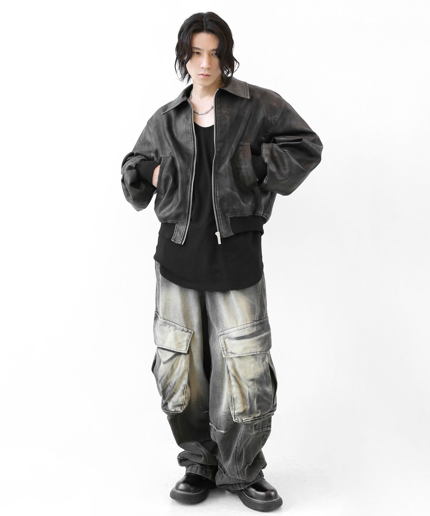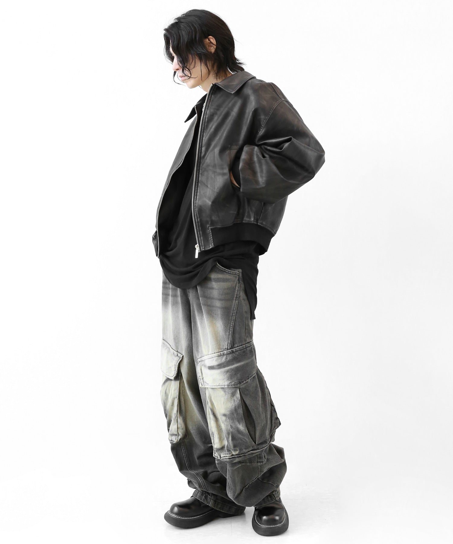 A washed faux leather blouson featuring subtle vintage texture and a compact short length.